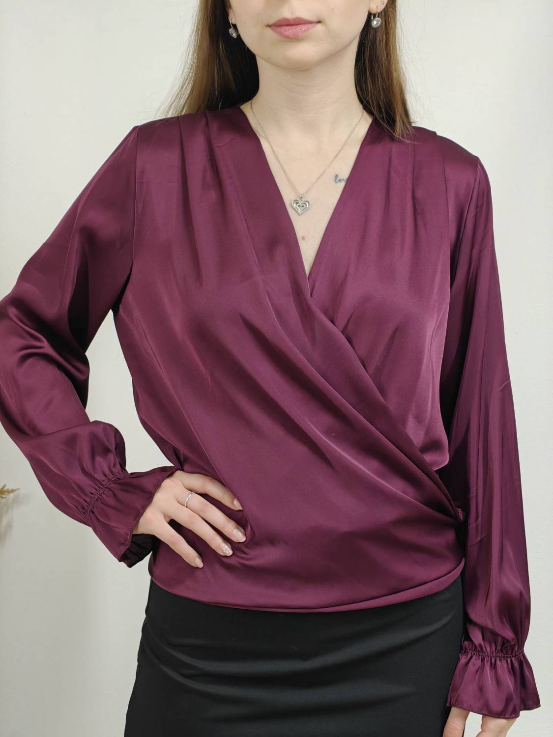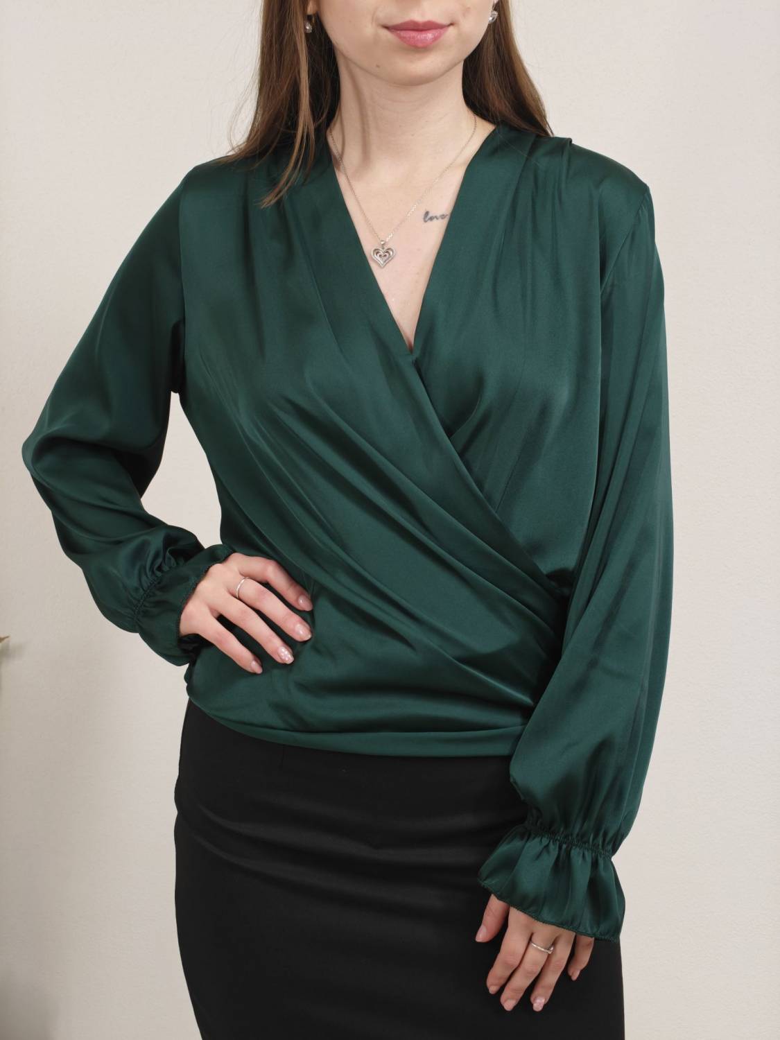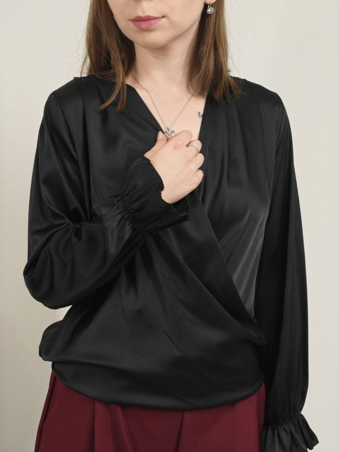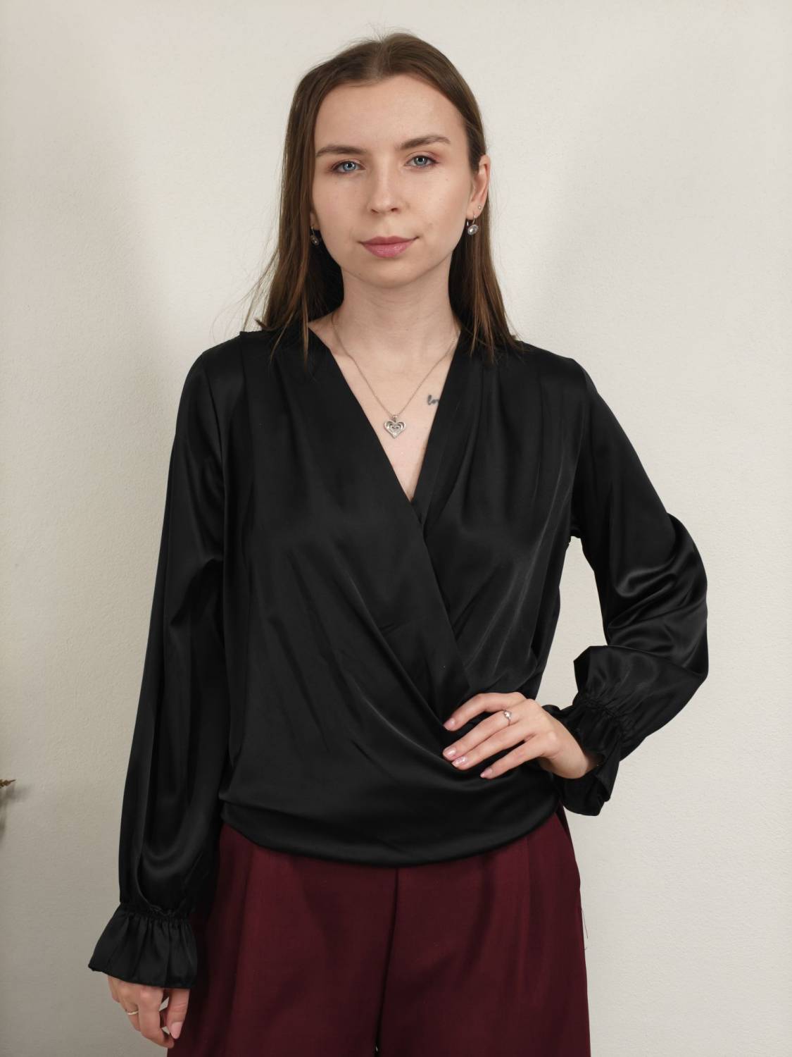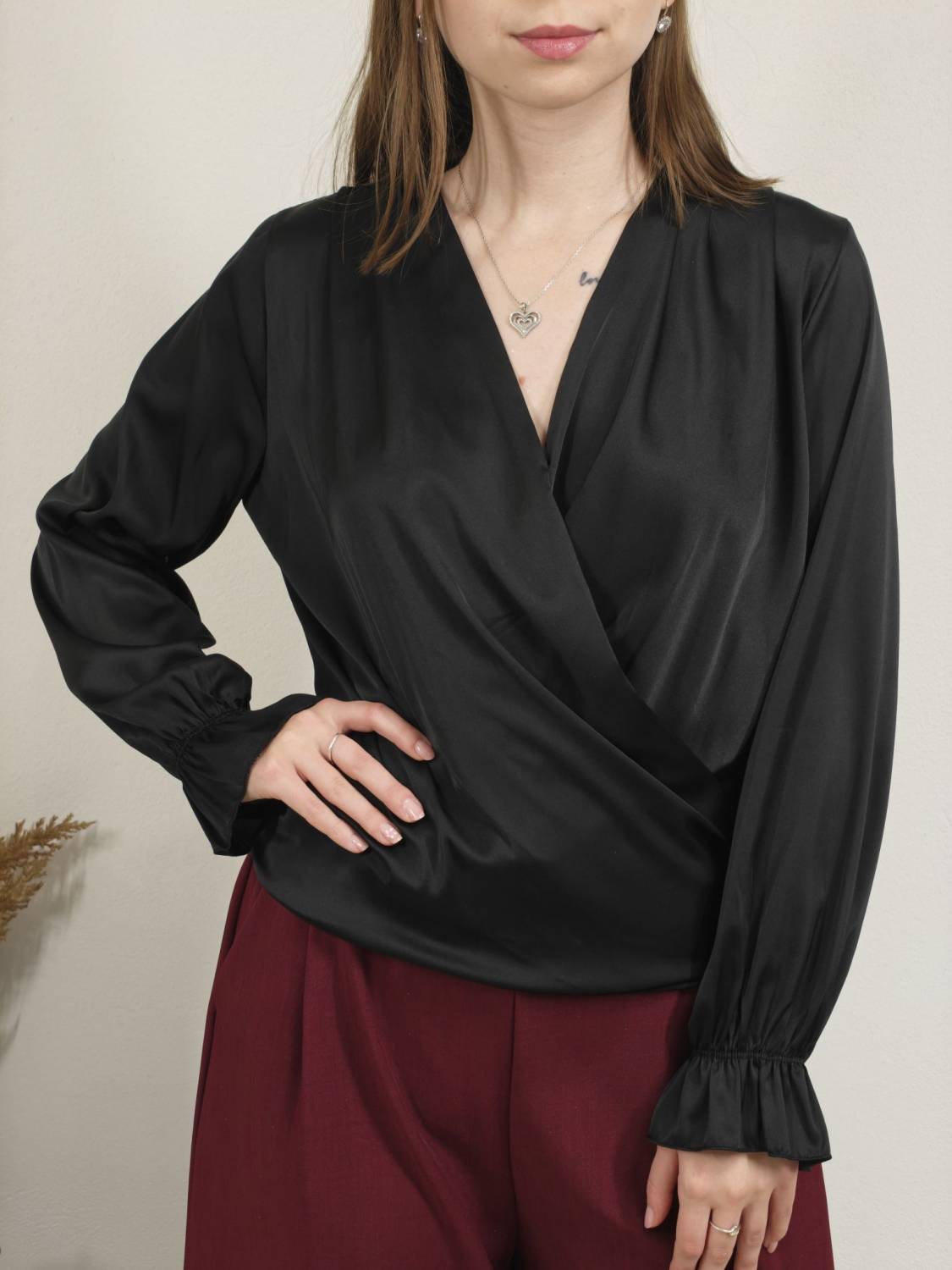 Jednofarebná blúzka s prekladom, v zadnu na spodnej časti je zakončená gumičkou. Blúzka má rukáv s gumičkou.