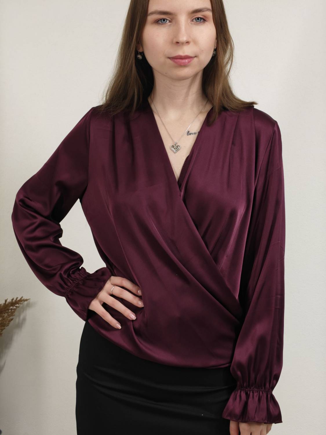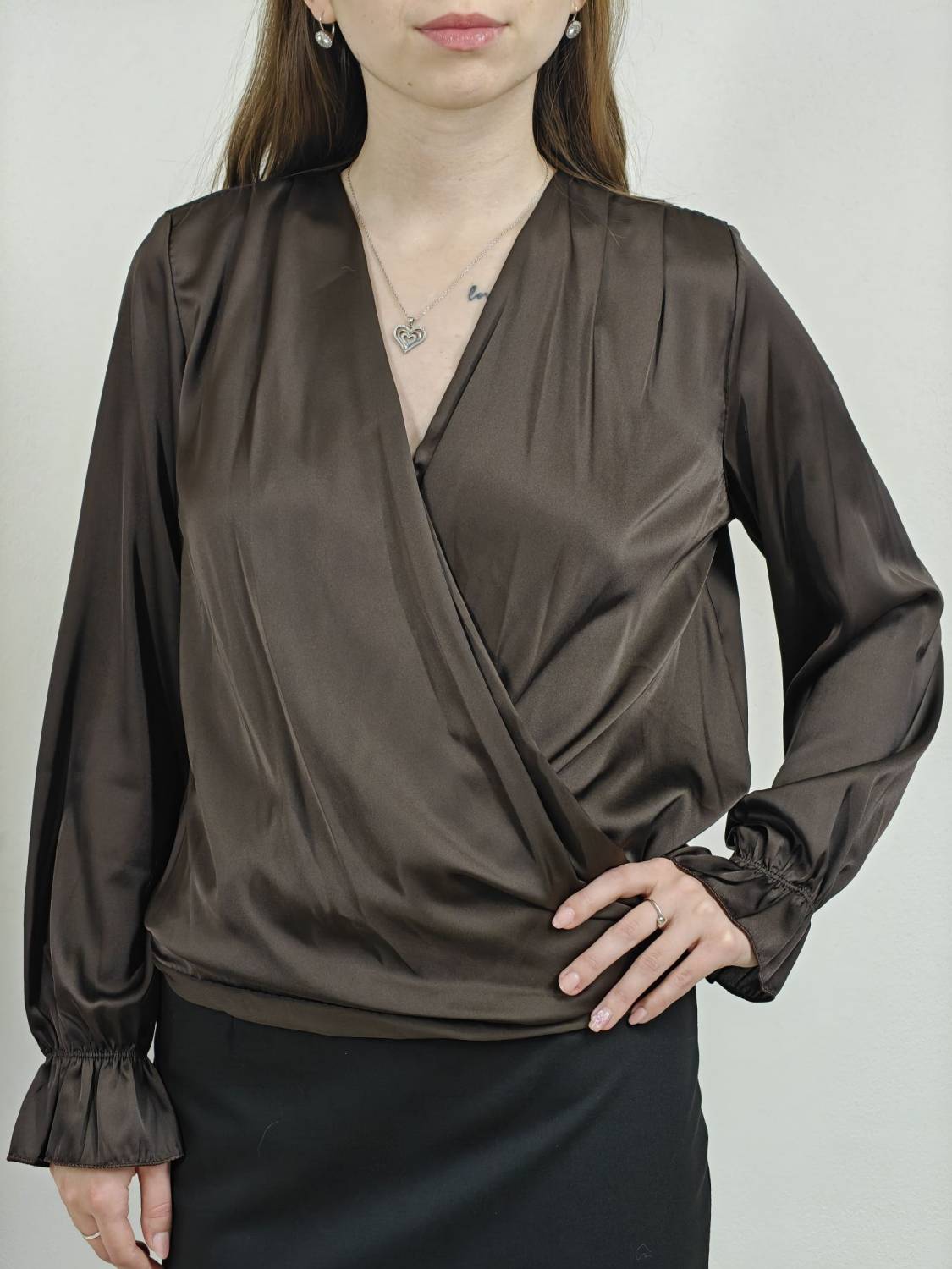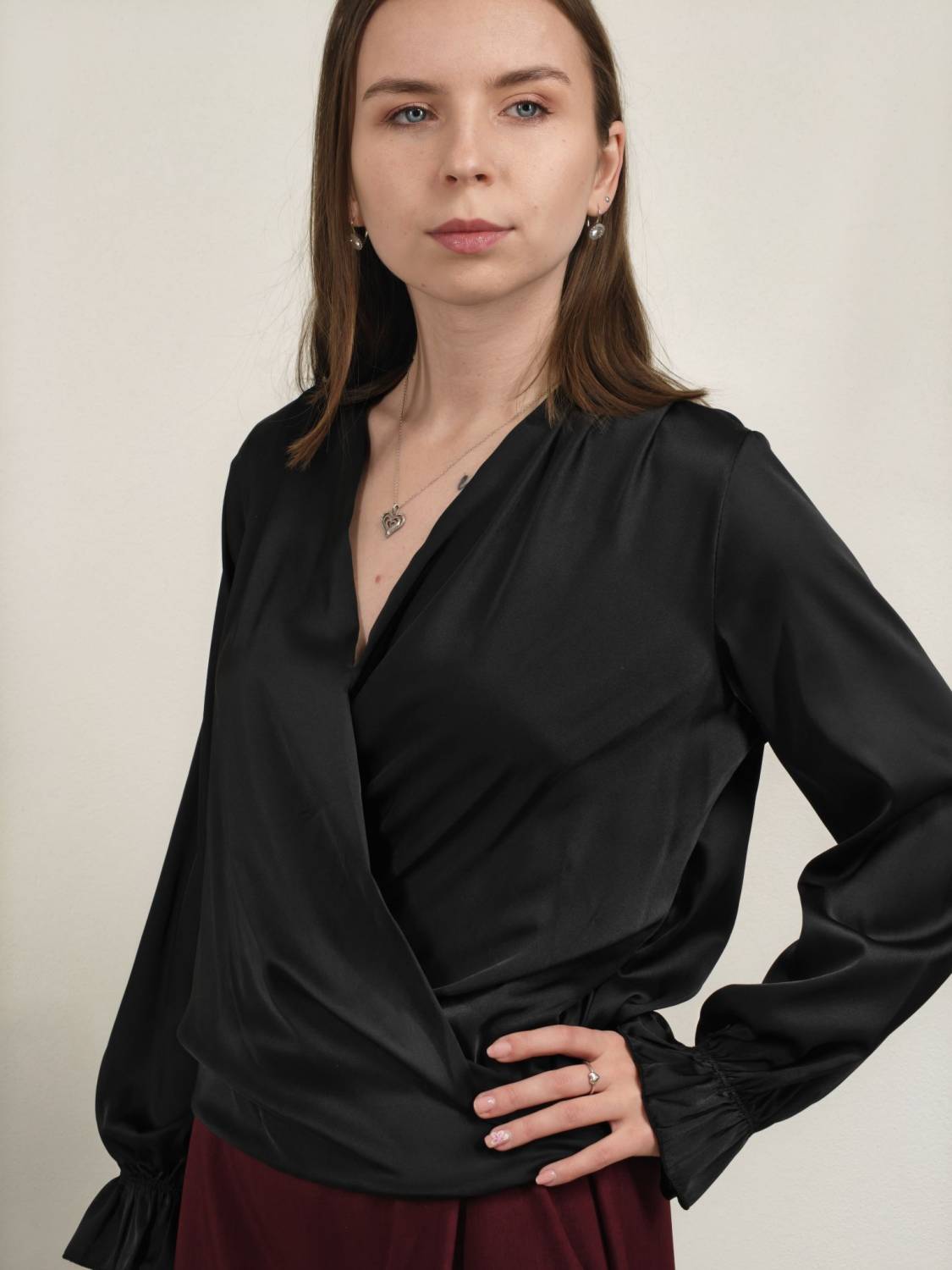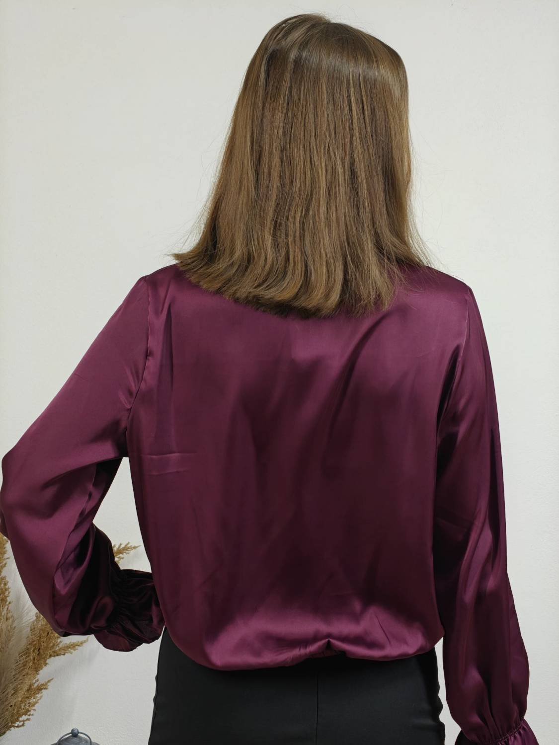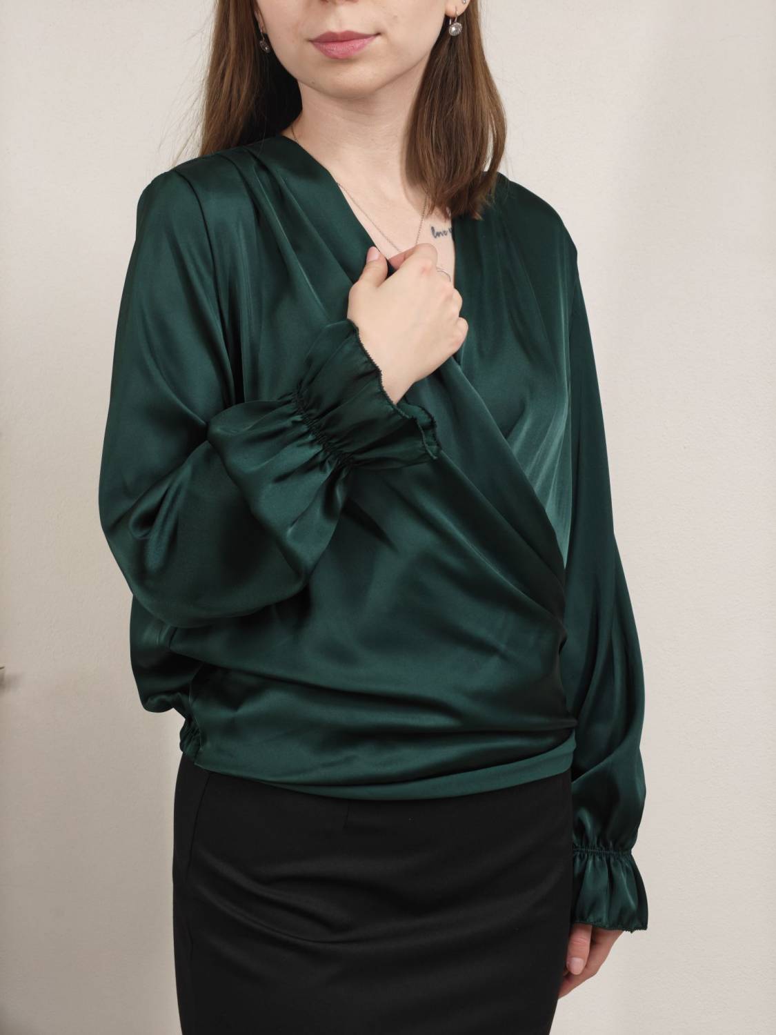 Jednofarebná blúzka s prekladom, v zadnu na spodnej časti je zakončená gumičkou. Blúzka má rukáv s gumičkou.