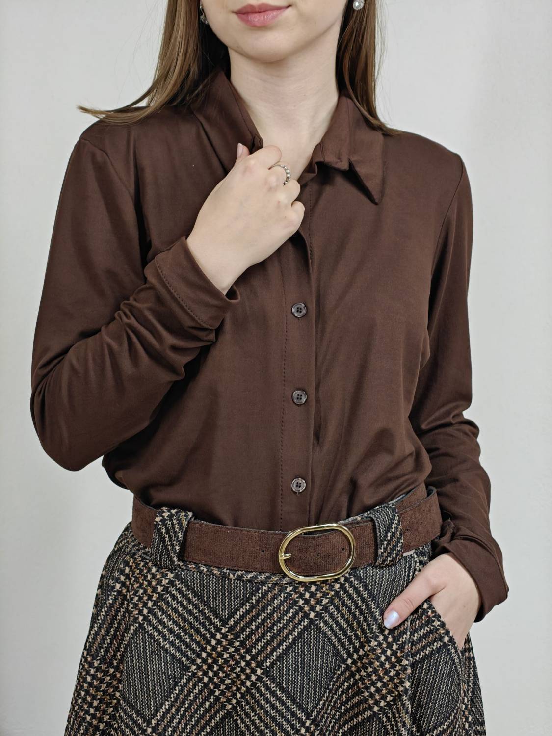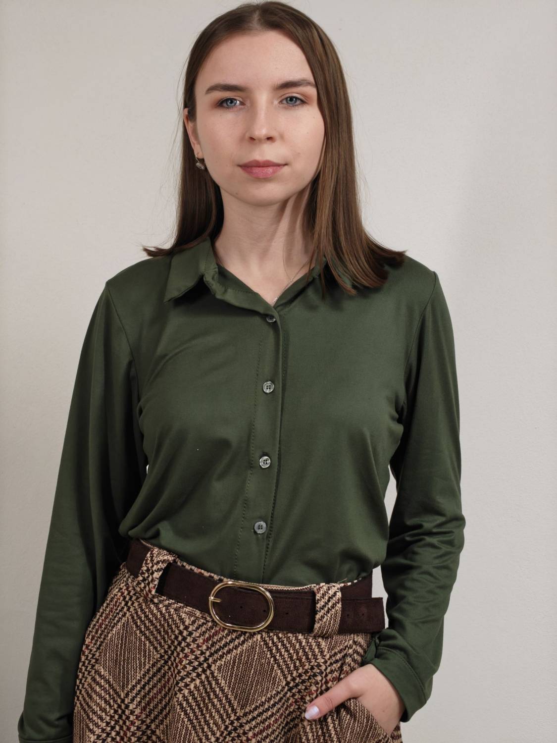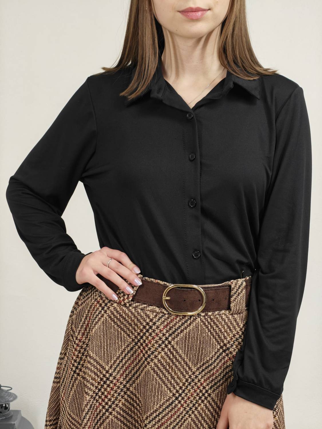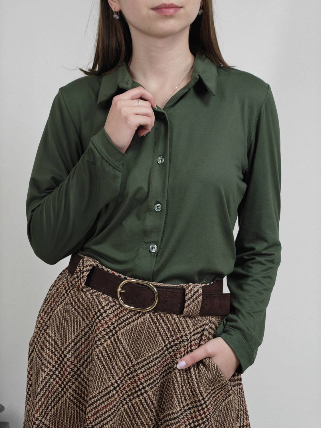 Jednofarebná košeľa na gombíky z veľmi príjemného materiálu.