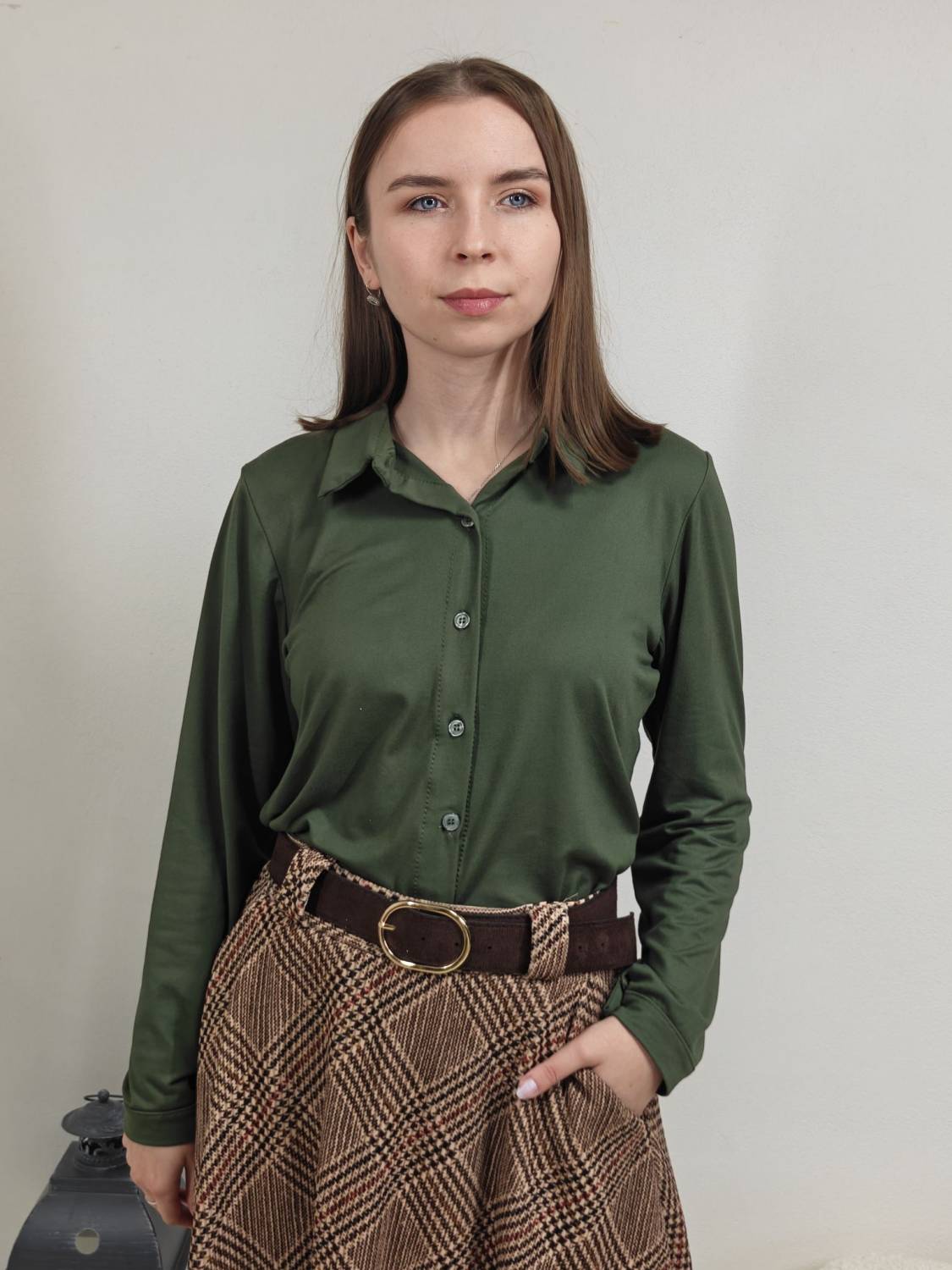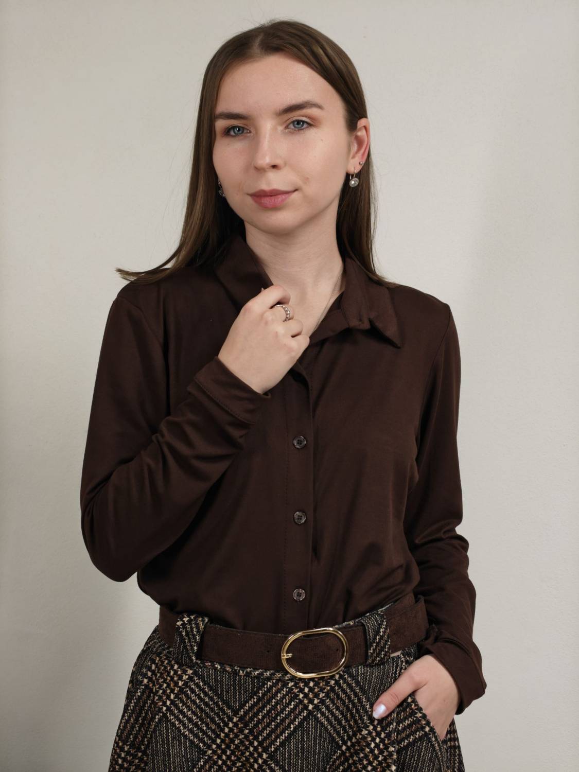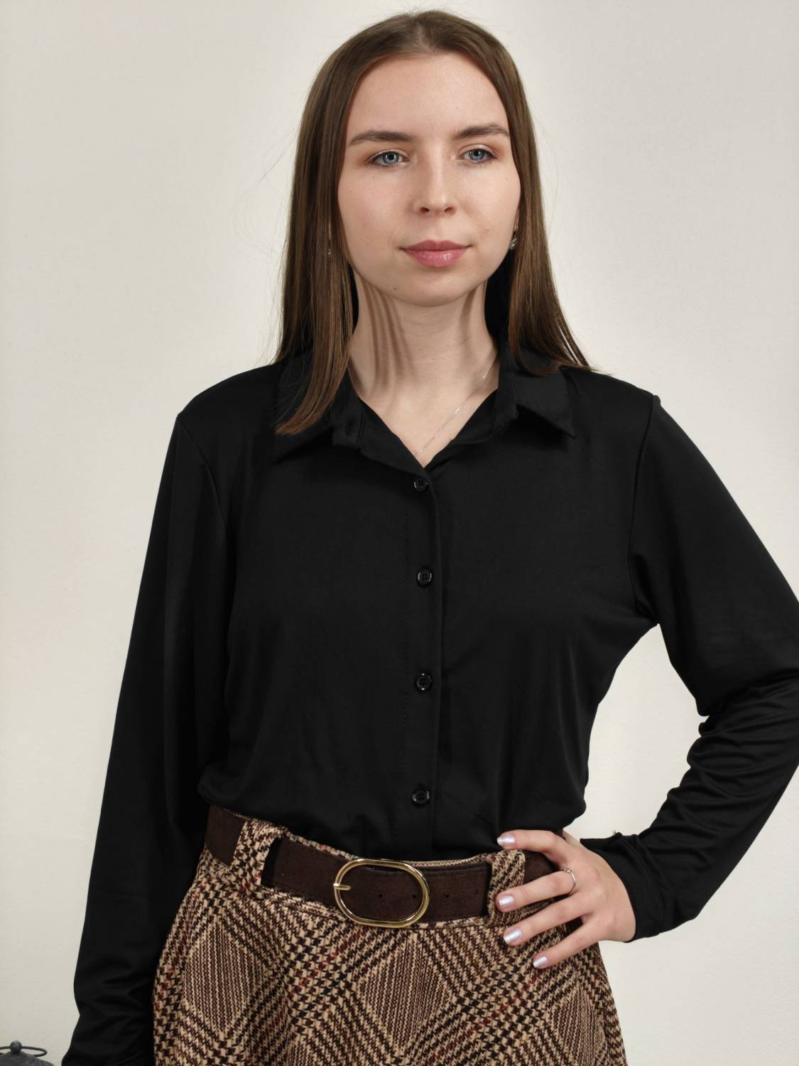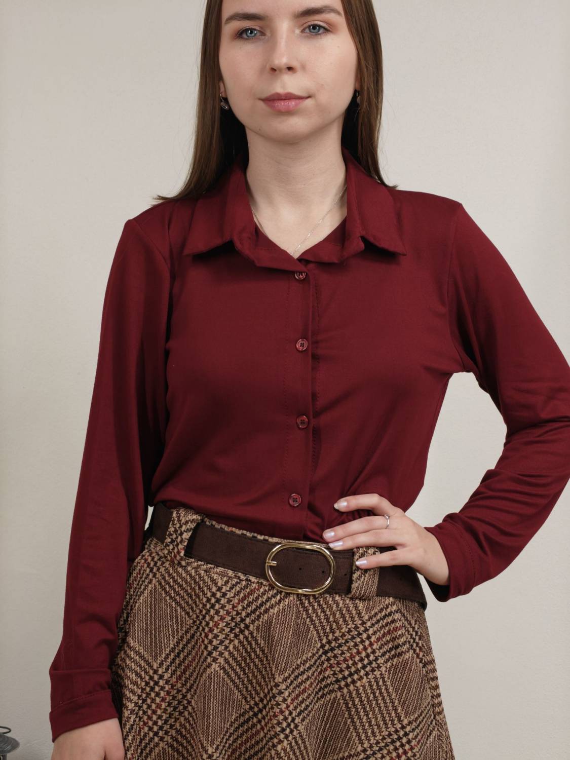 Jednofarebná košeľa na gombíky z veľmi príjemného materiálu.