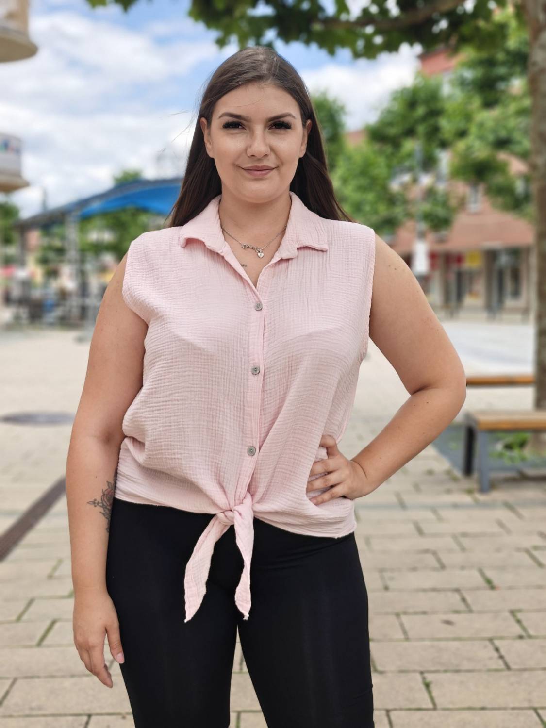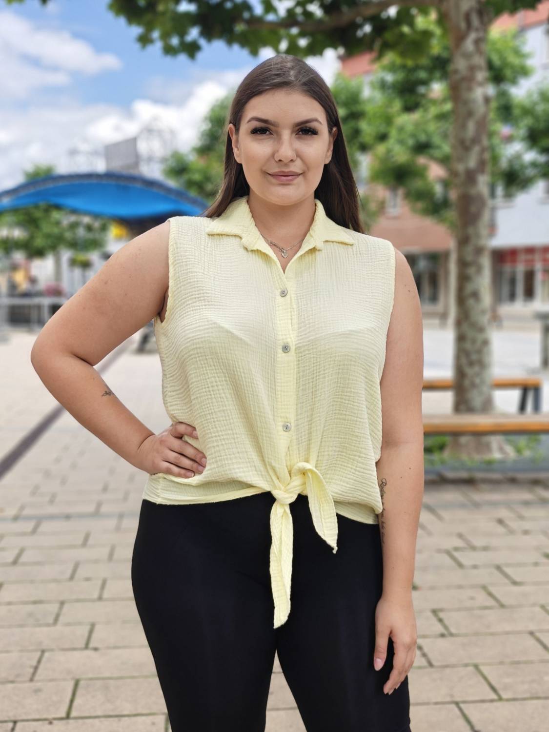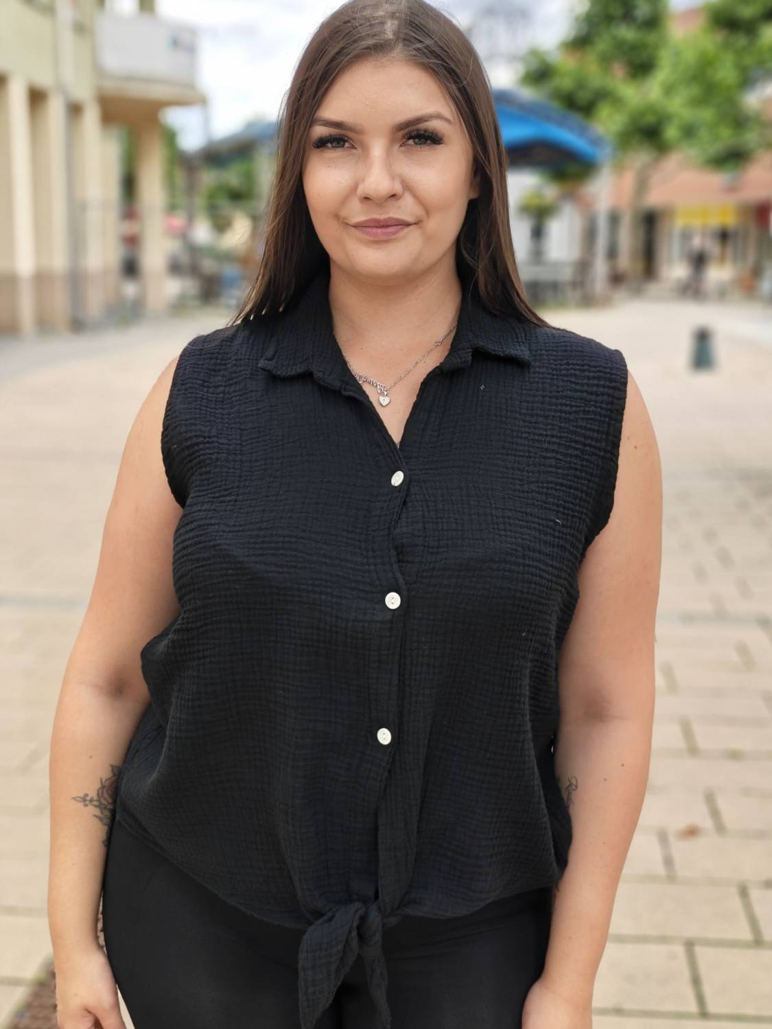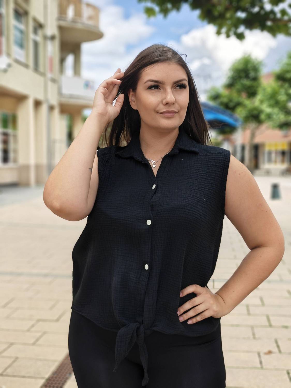 Jednofarebná blúzka na gombíky z ľahkého mušelínu.