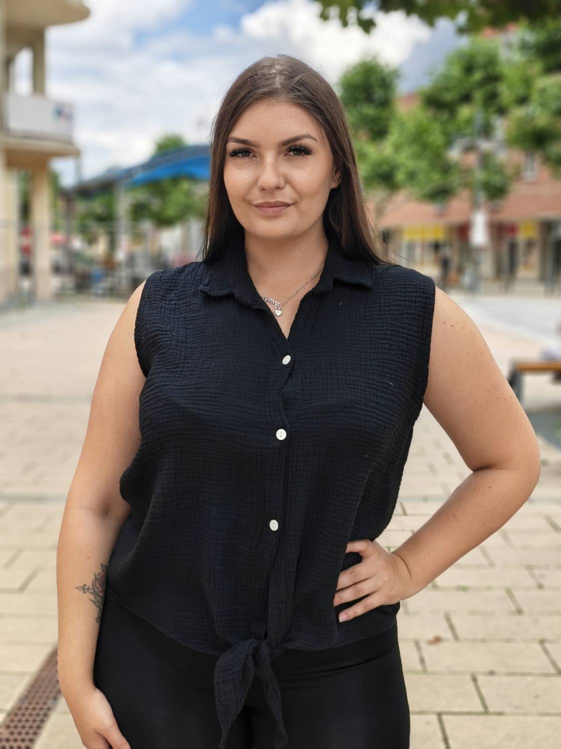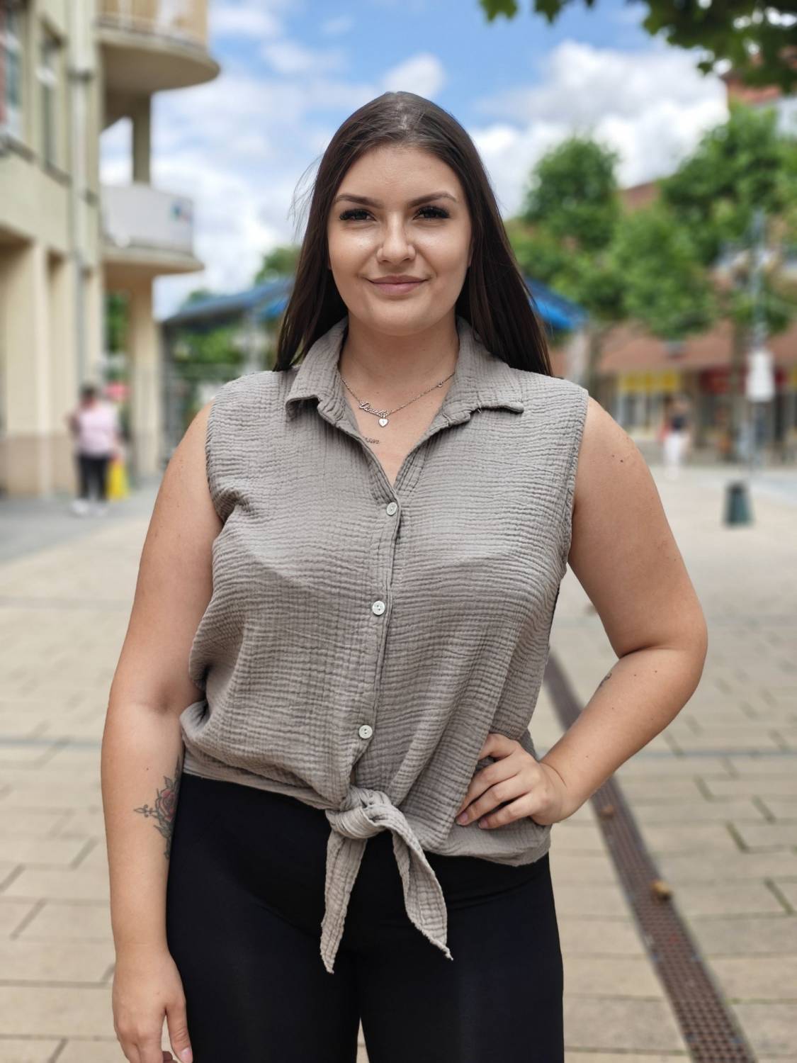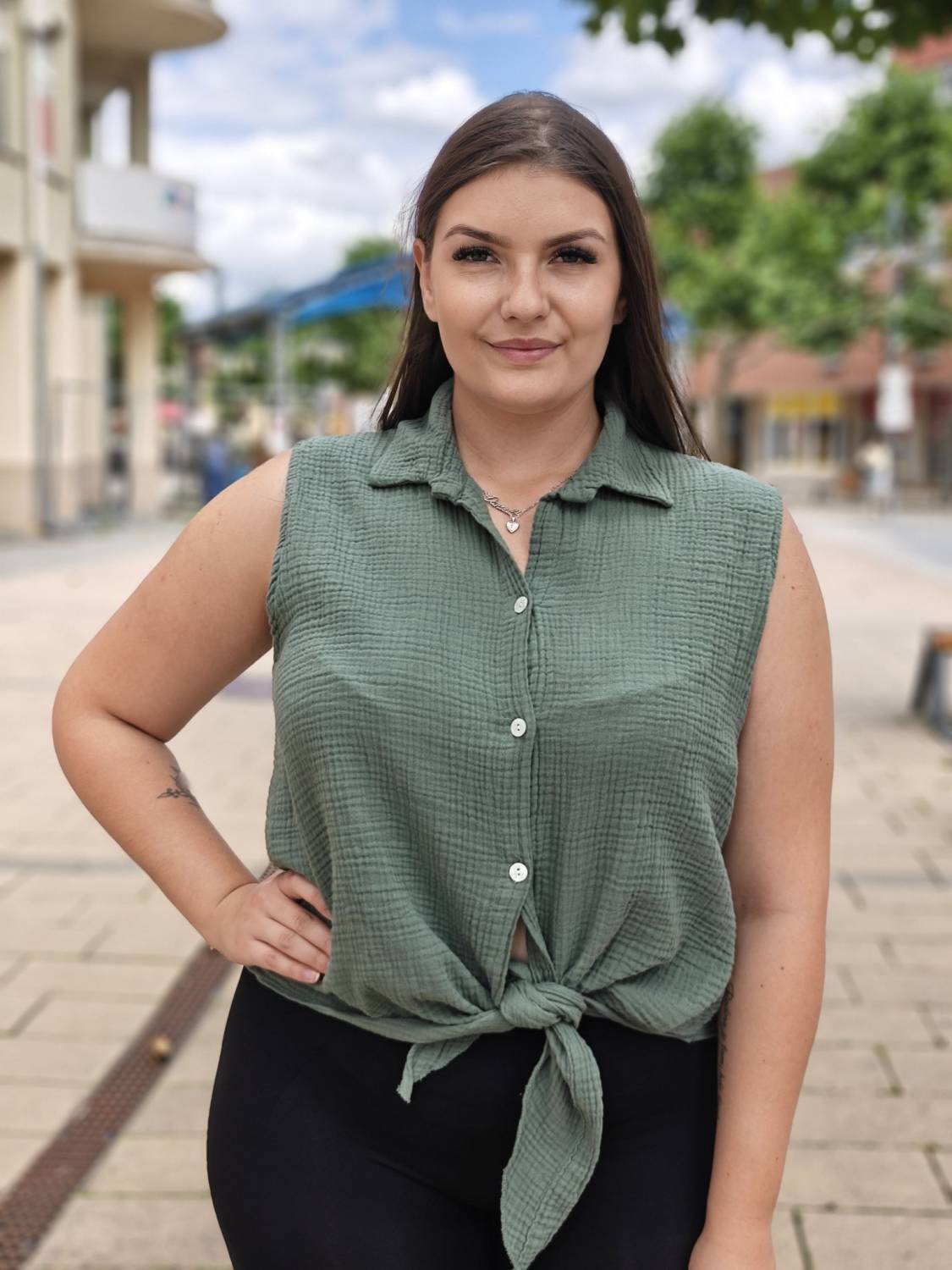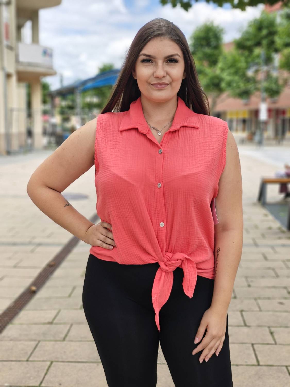 Jednofarebná blúzka na gombíky z ľahkého mušelínu.