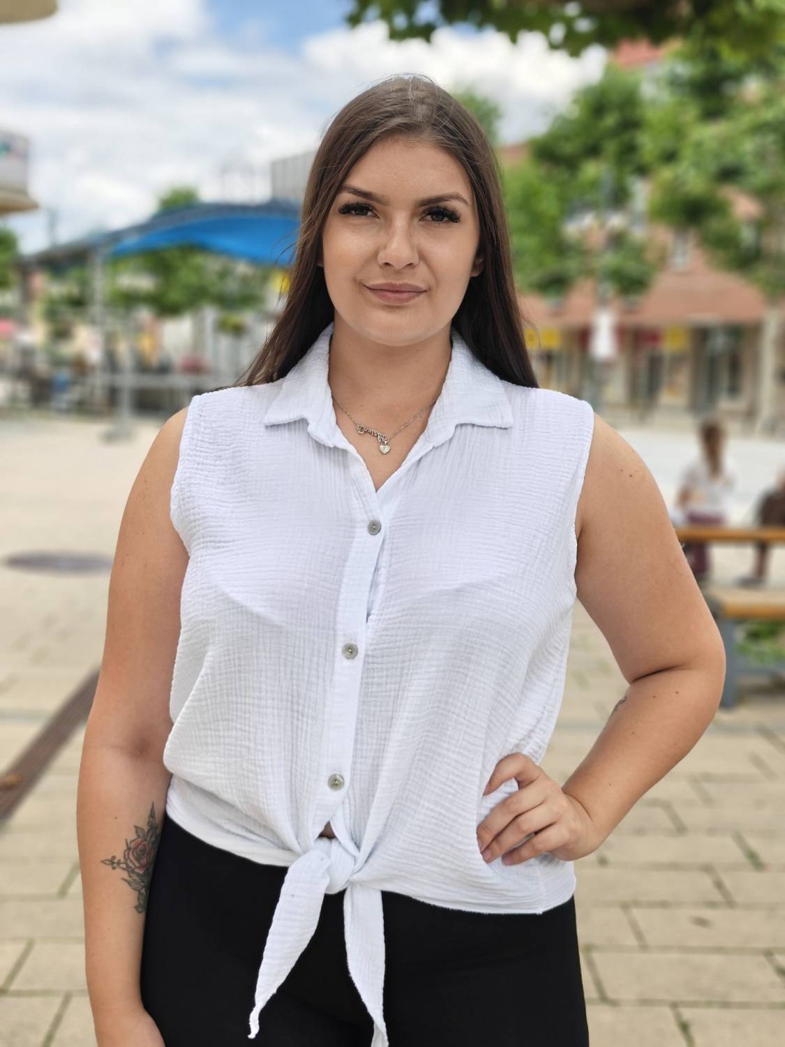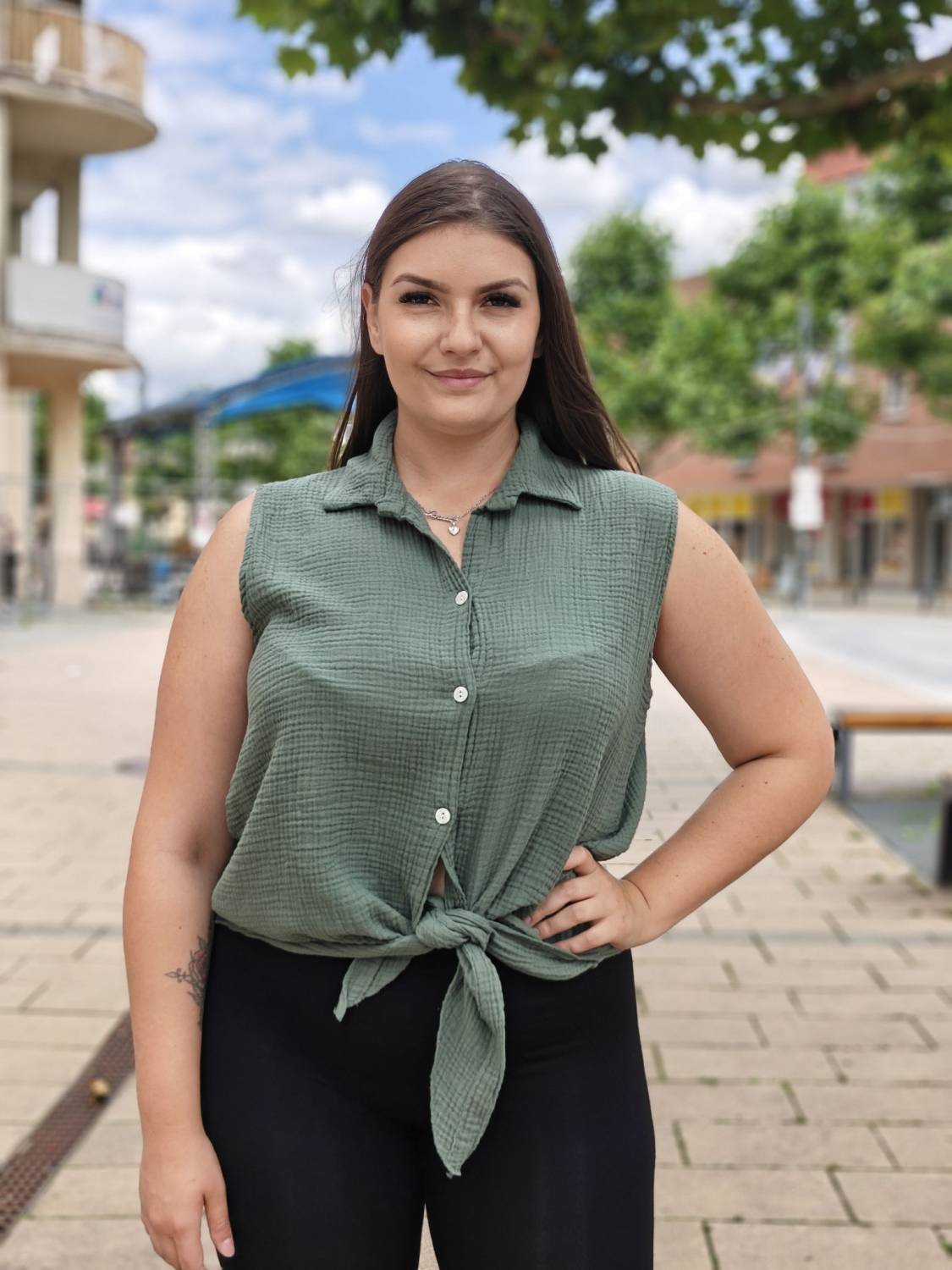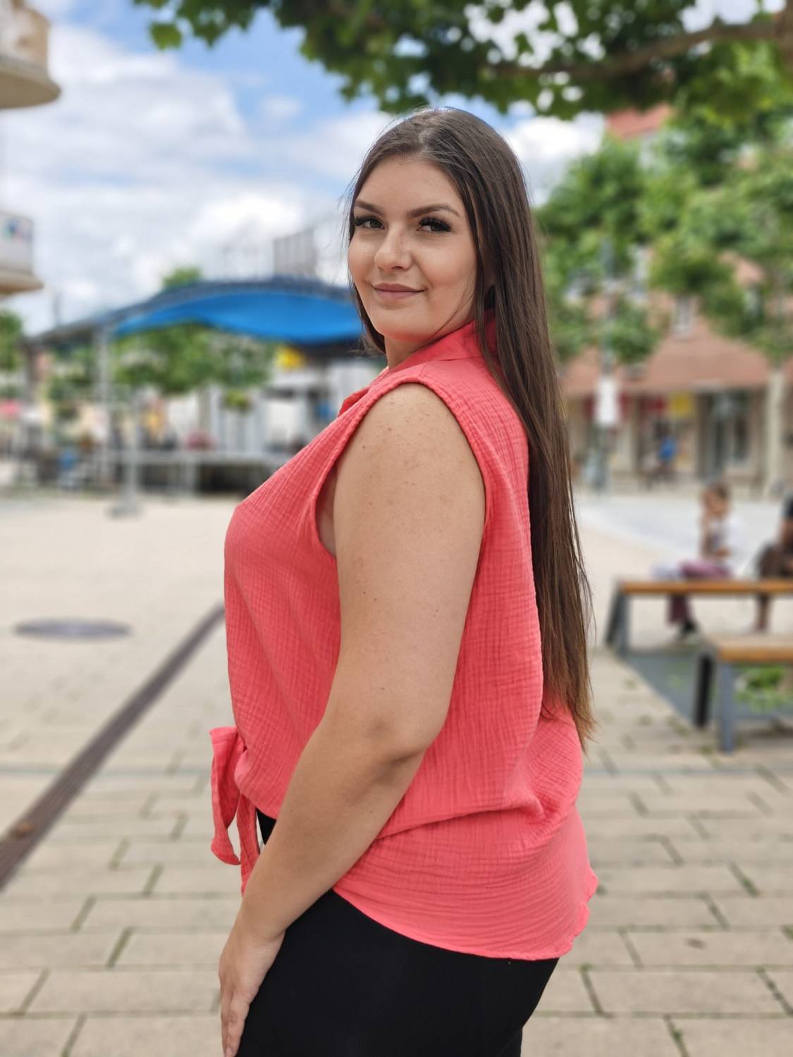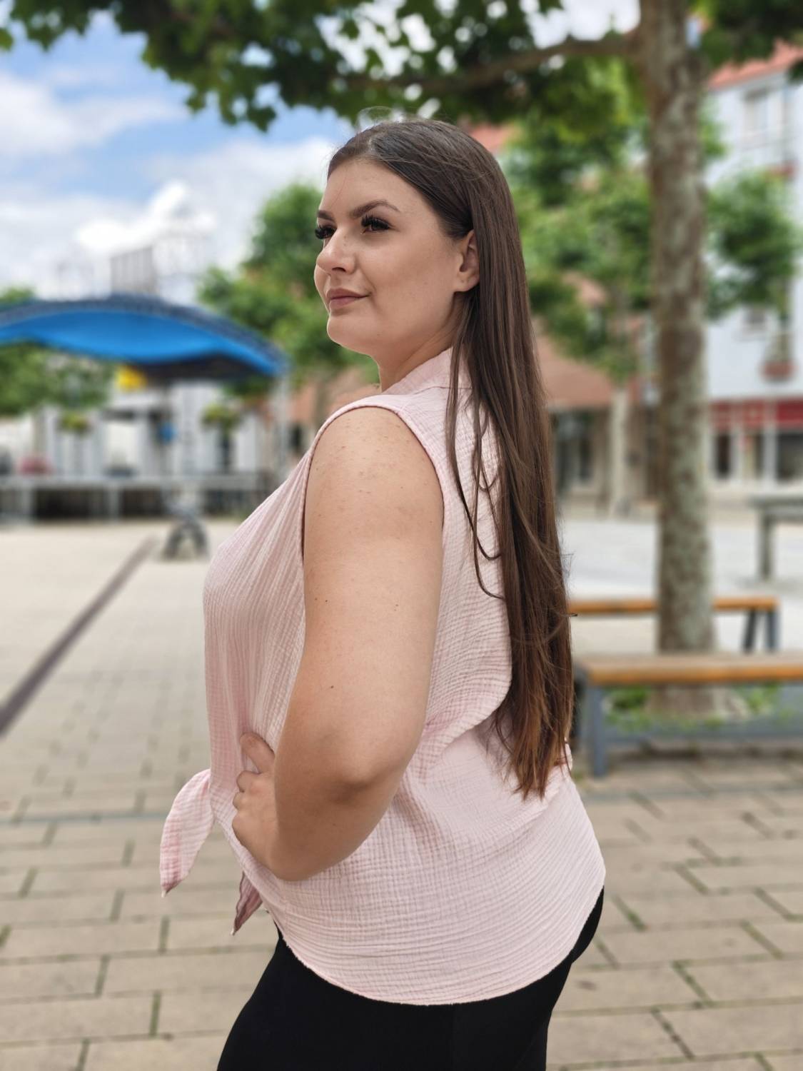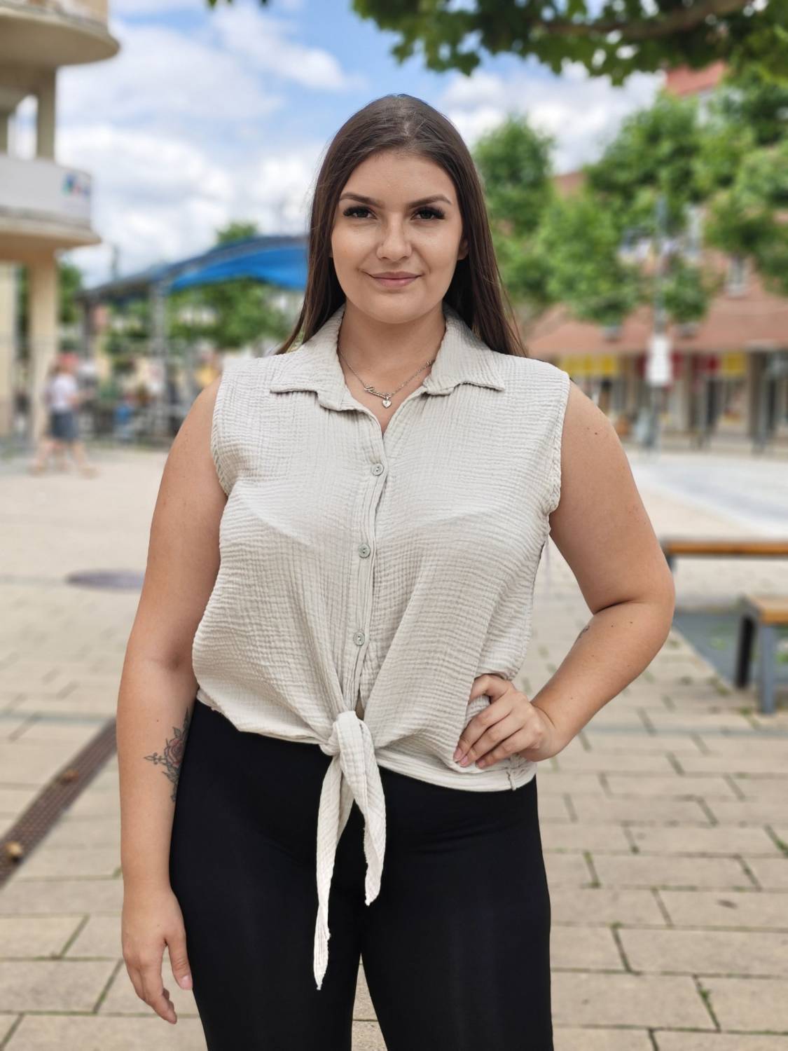 Jednofarebná blúzka na gombíky z ľahkého mušelínu.
