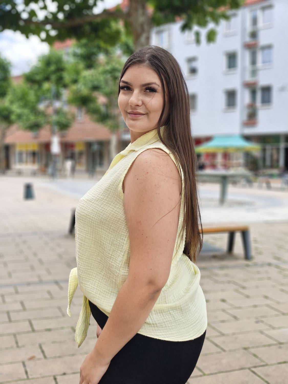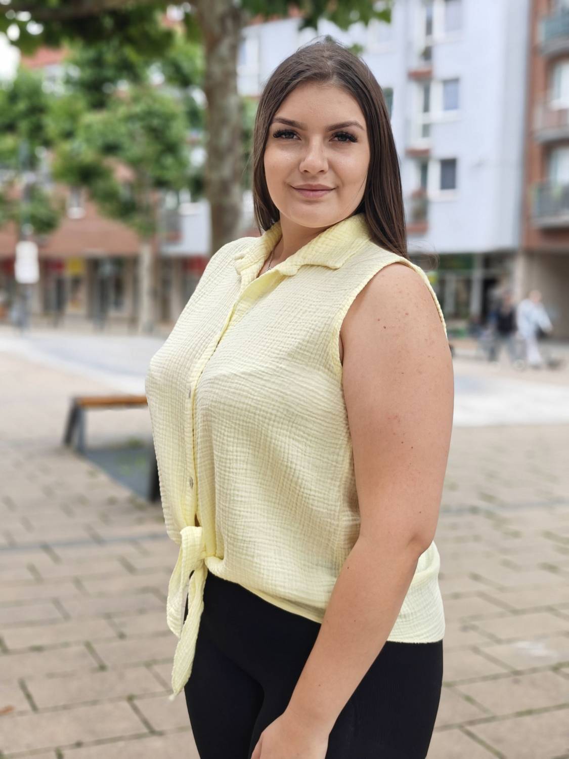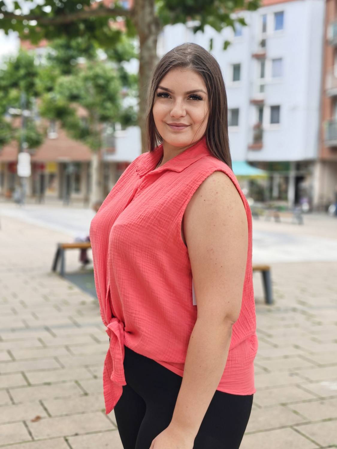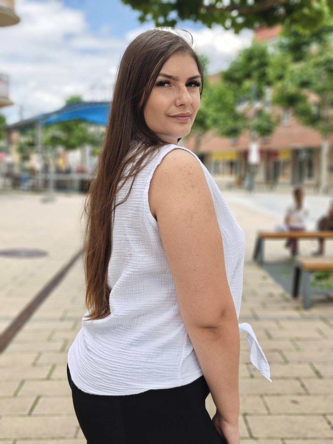 Jednofarebná blúzka na gombíky z ľahkého mušelínu.