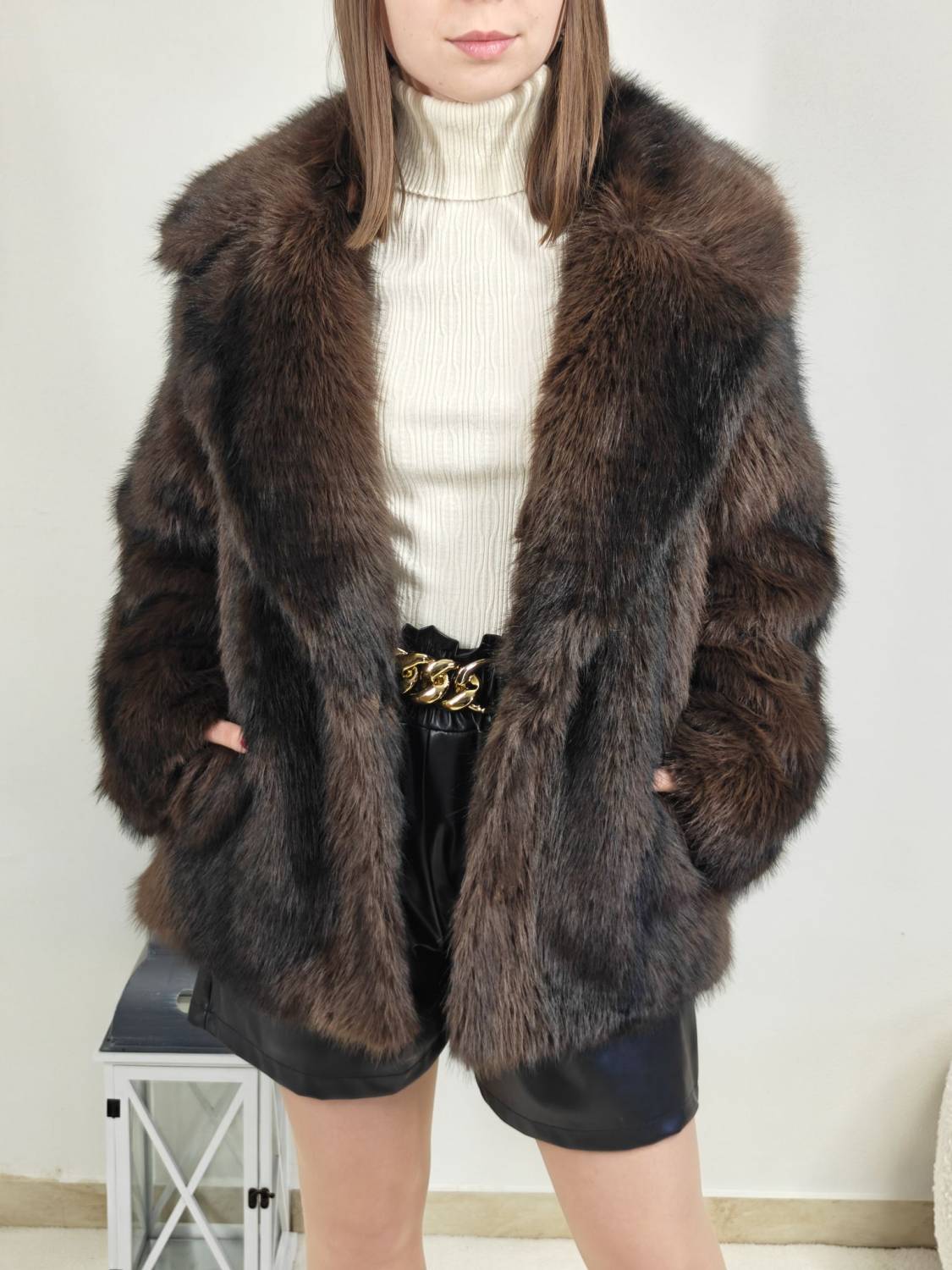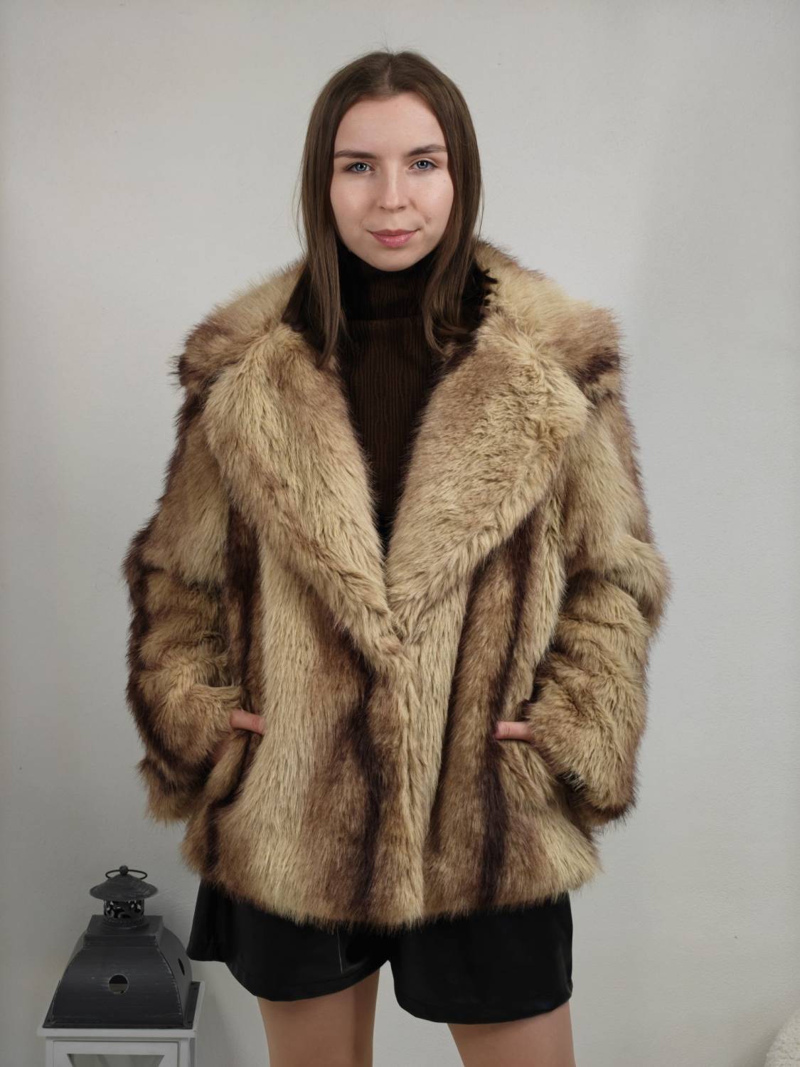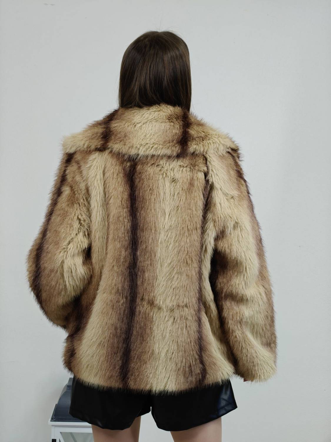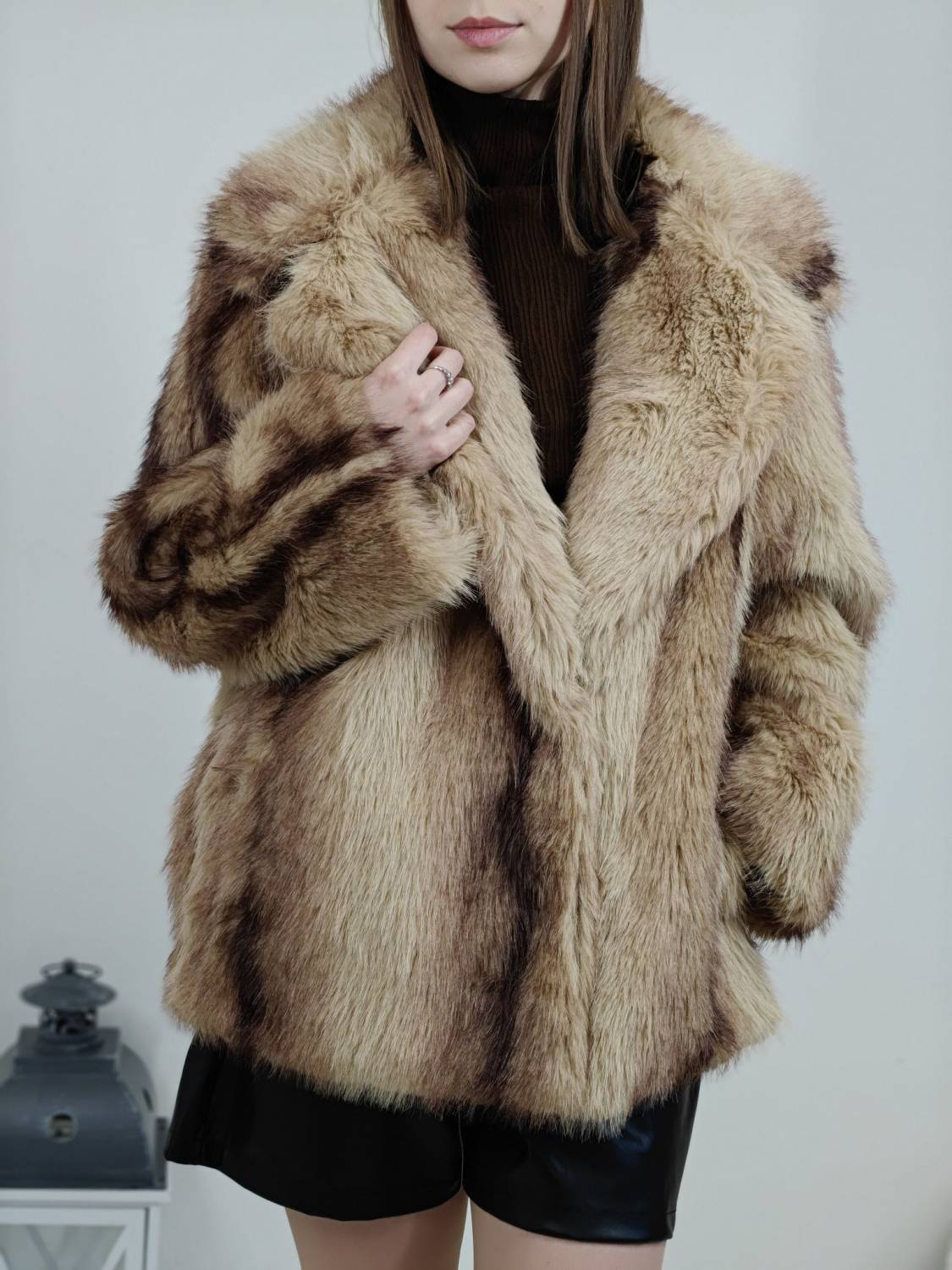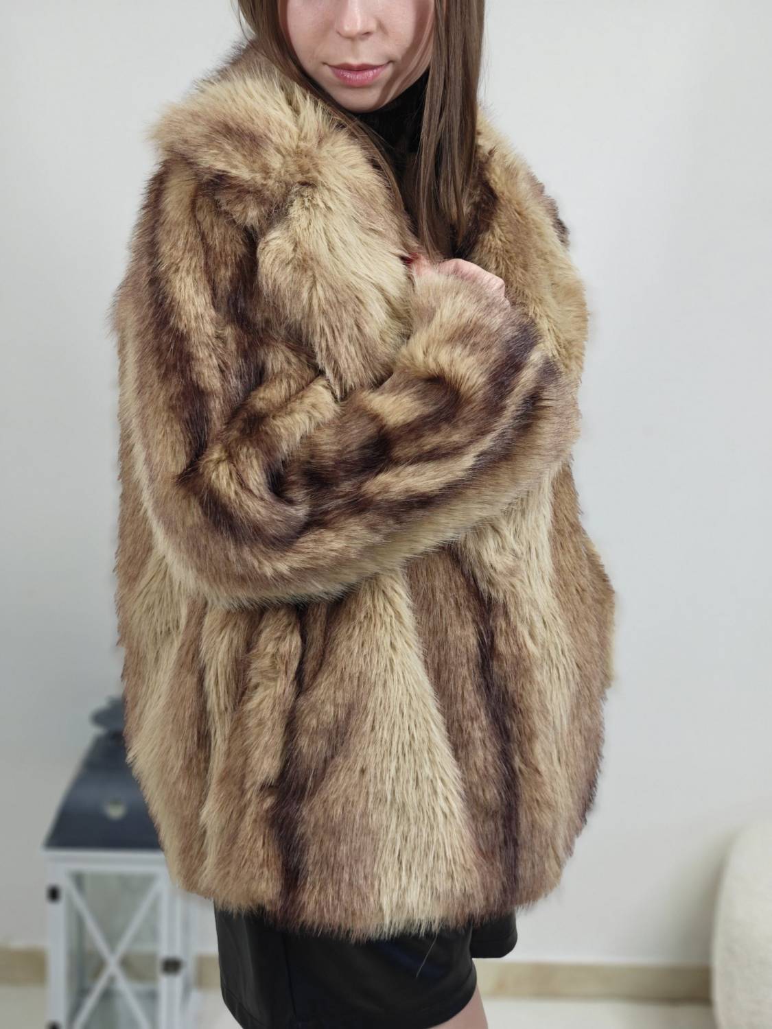 Melírovaný krátky kožúšok so zapínaním na cvoky.