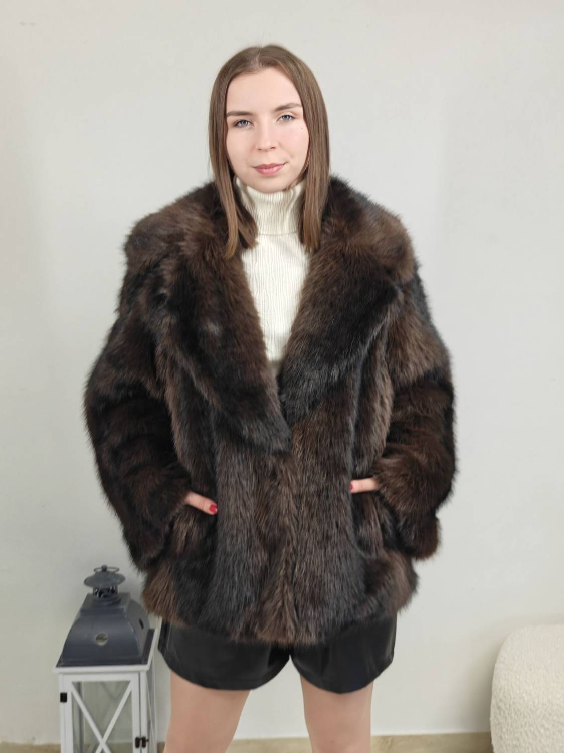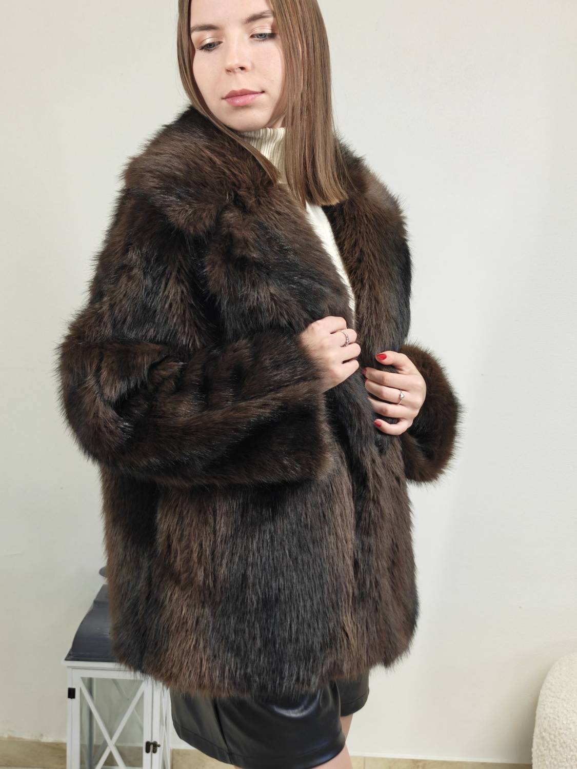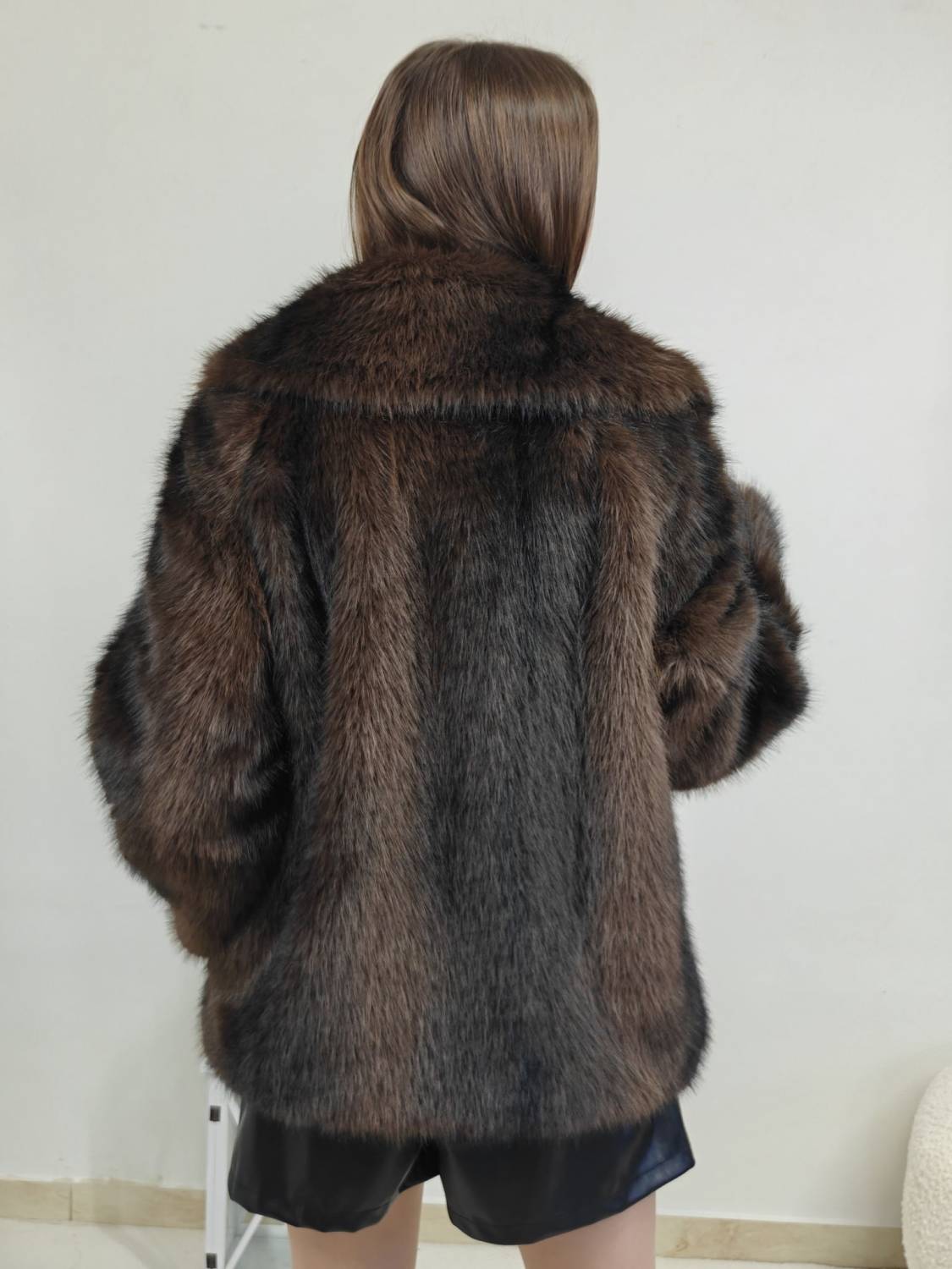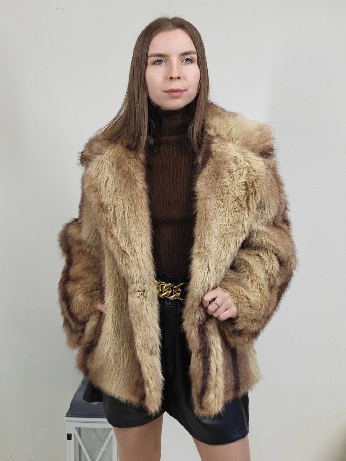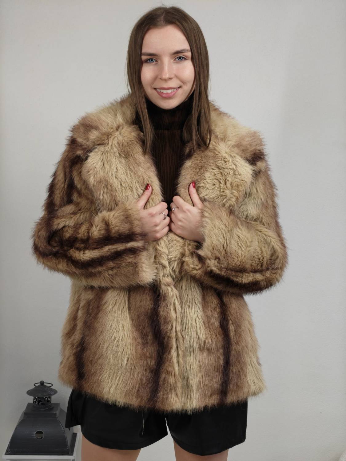 Melírovaný krátky kožúšok so zapínaním na cvoky.