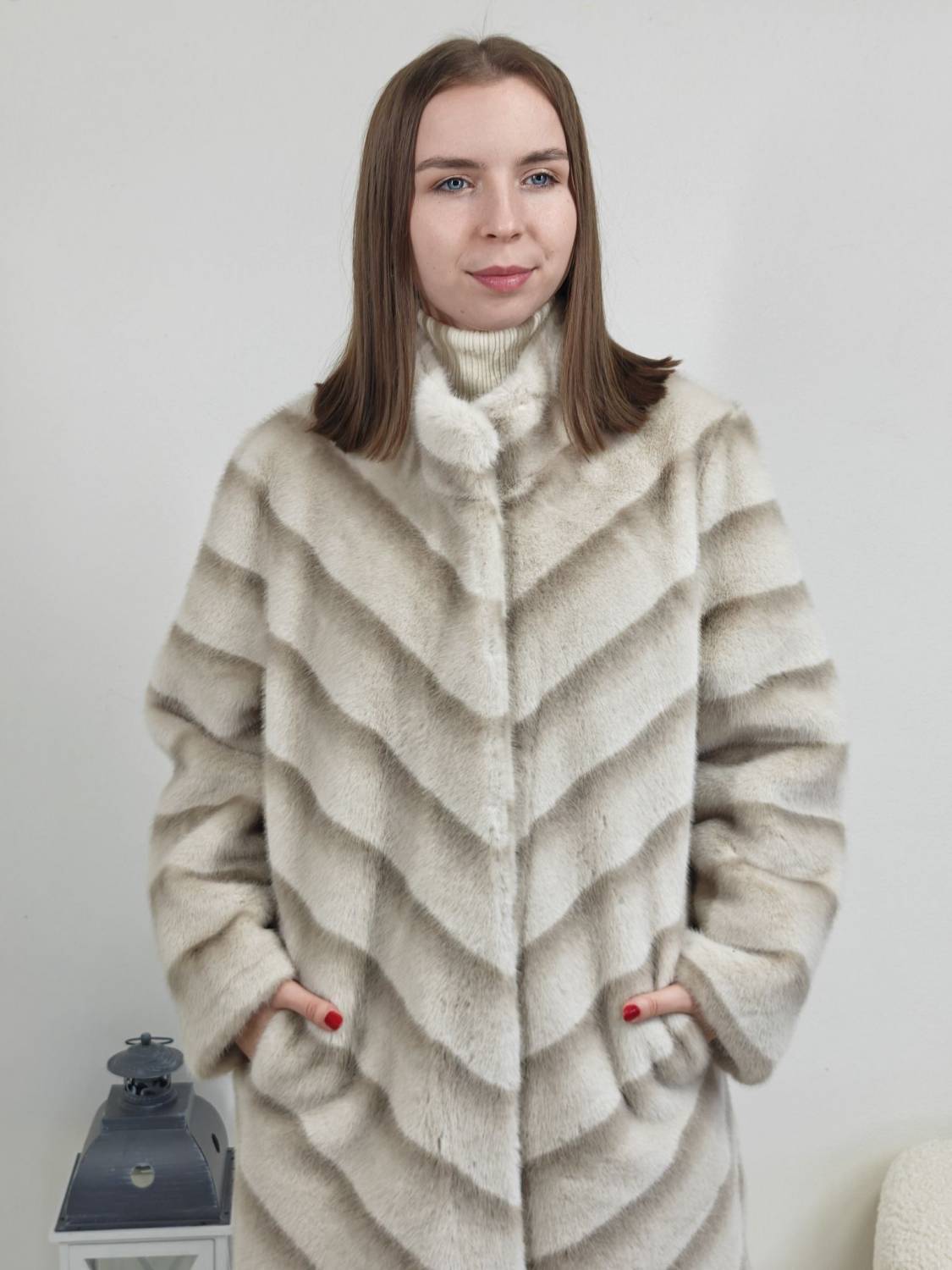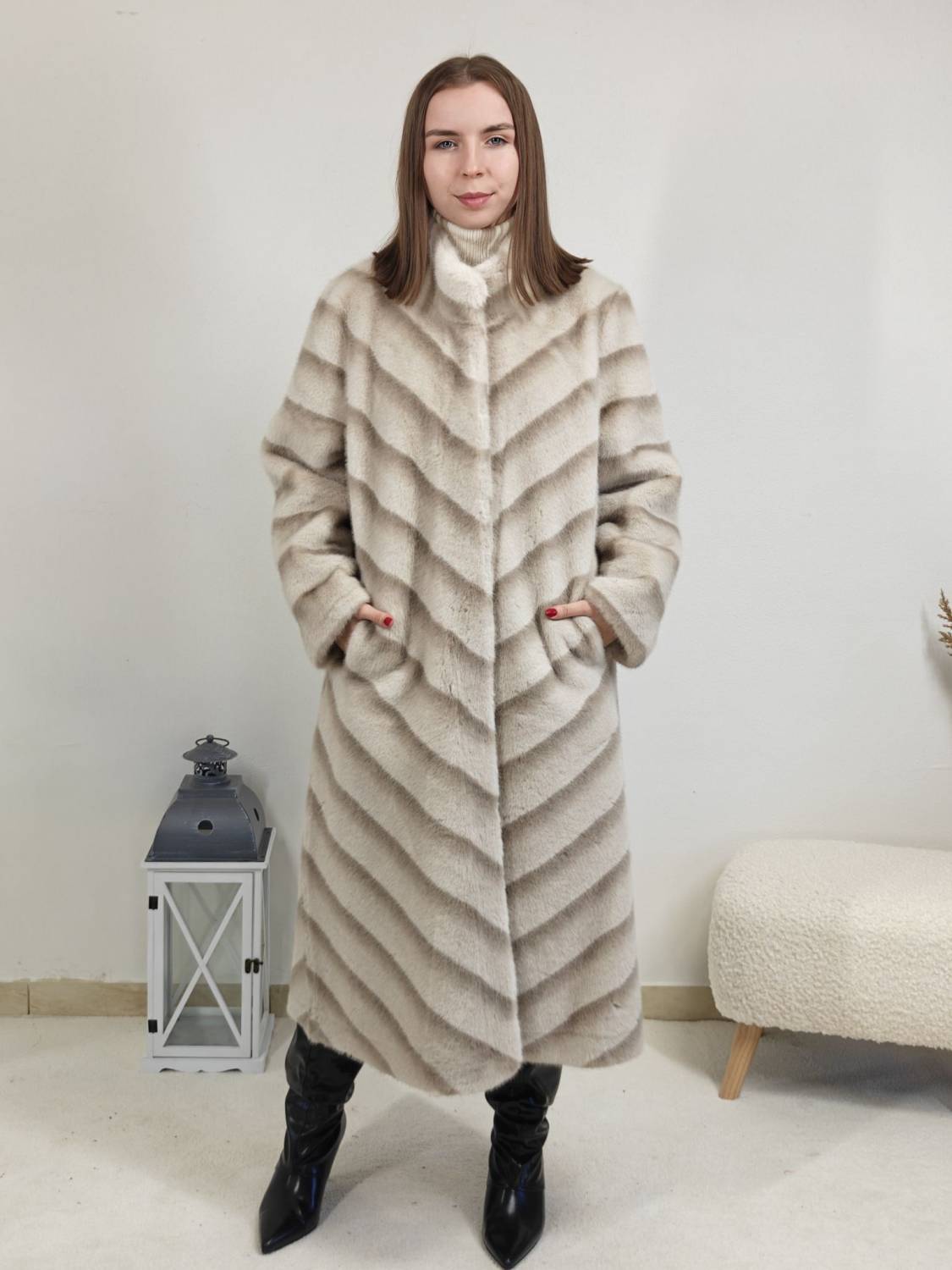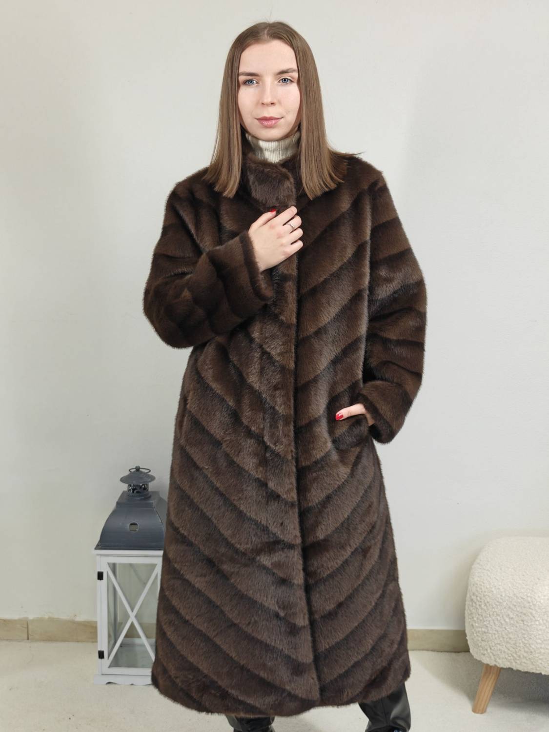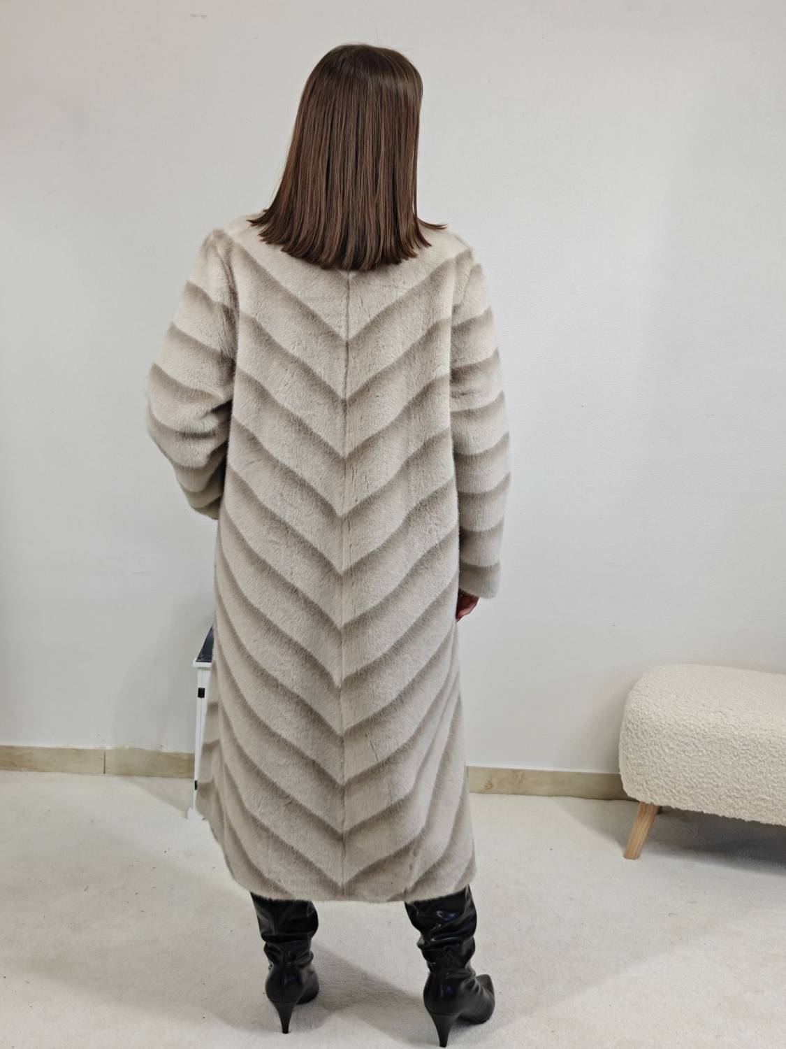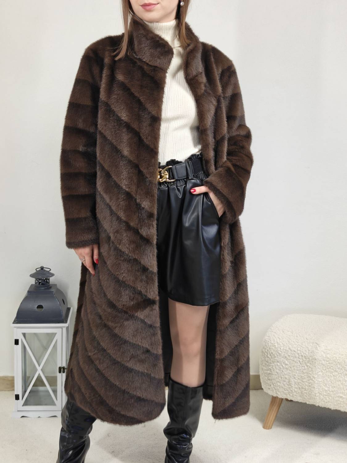 Dlhý hrubší kožúšok z veľmi jemného a príjemného materiálu. Má vrecká a zapína sa na zacvakávacie háčiky.