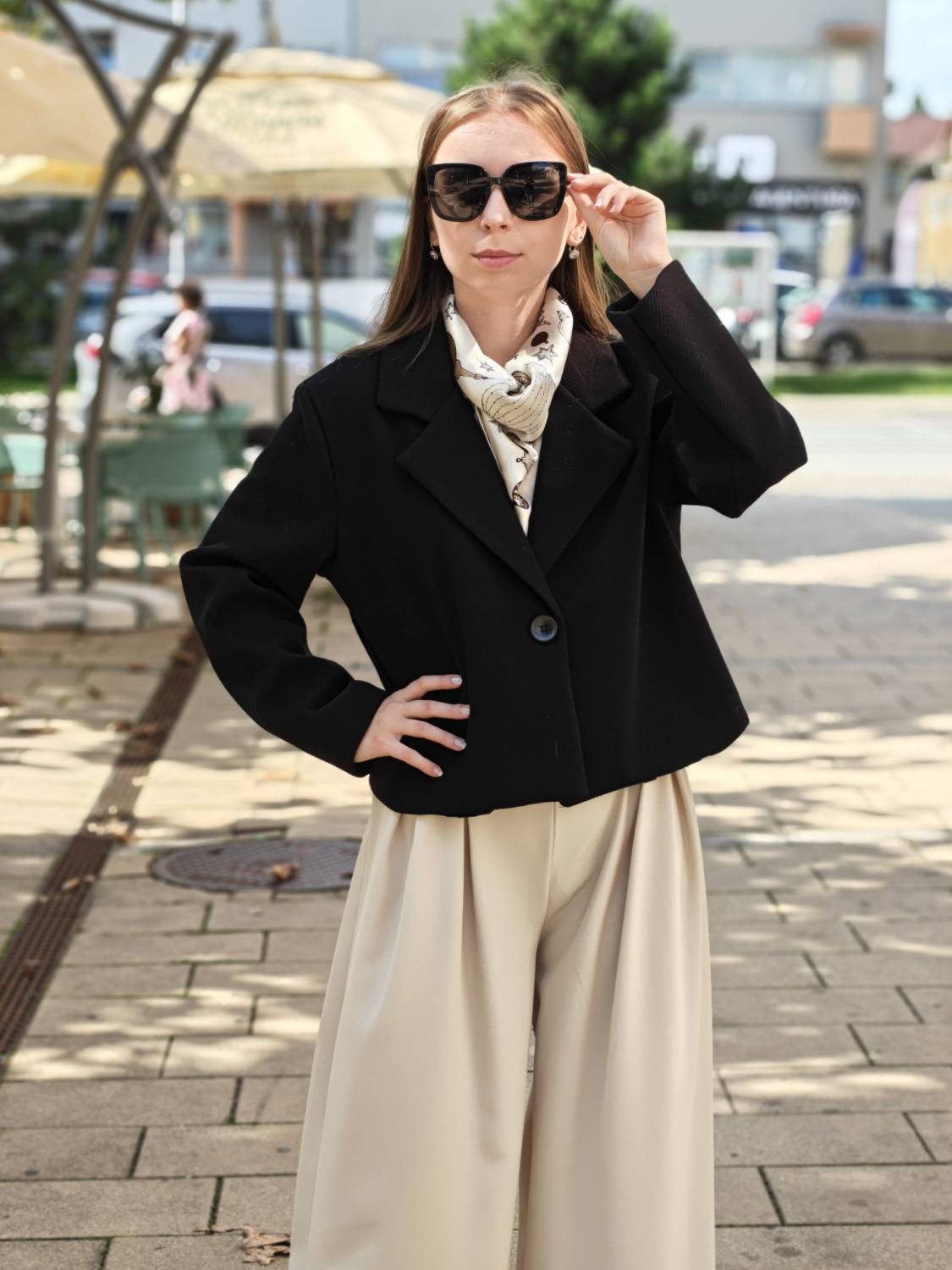 Krátky kabátik na jeden gombík.