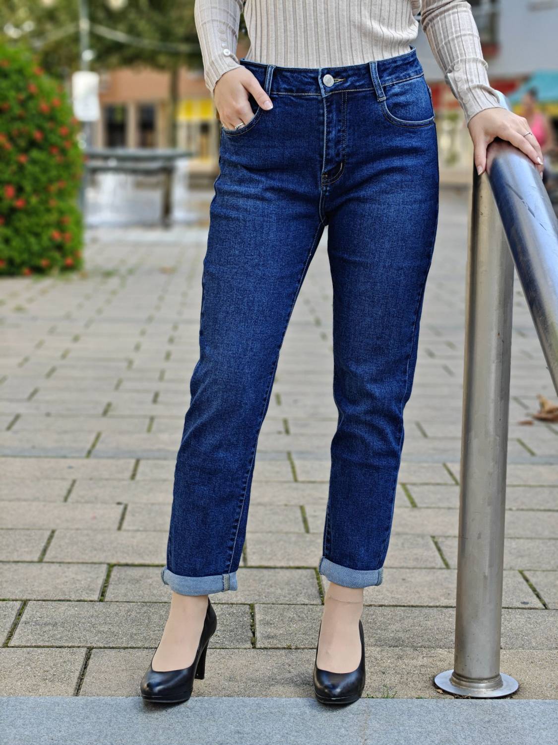 Džínsy Mom Fit s vyšším sedom.