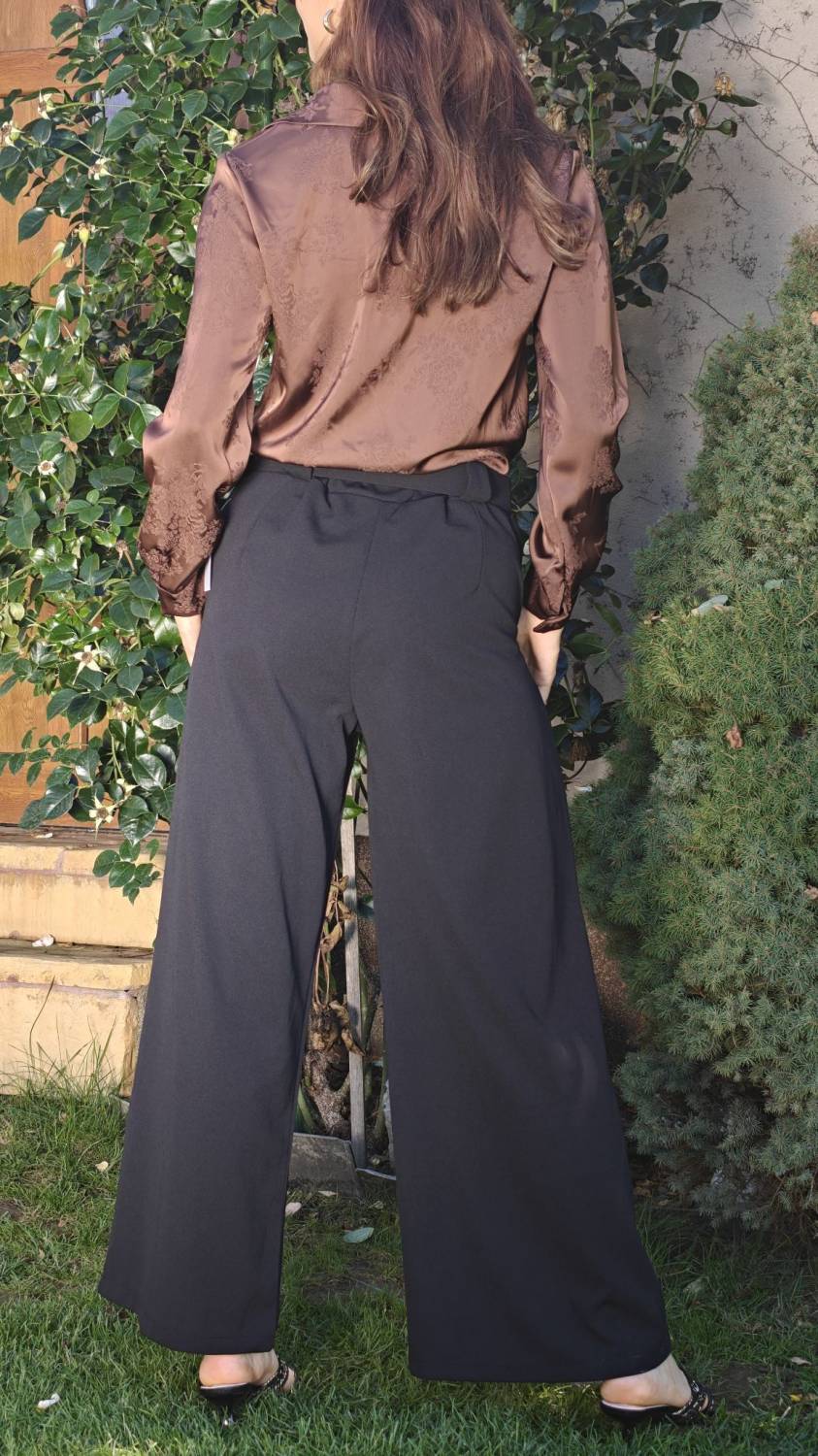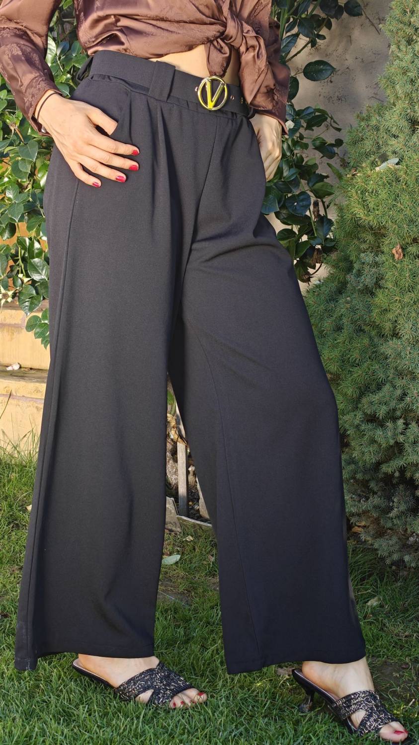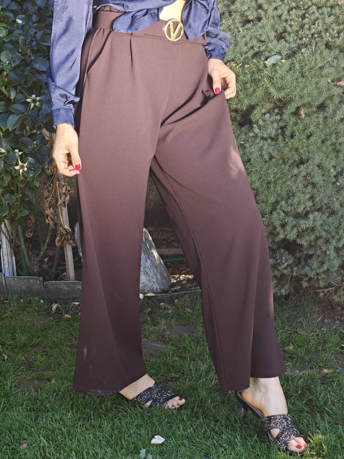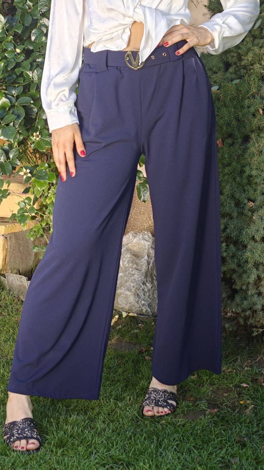 Široké nohavice s opaskom a ozdobnou sponou v zlatej farbe.