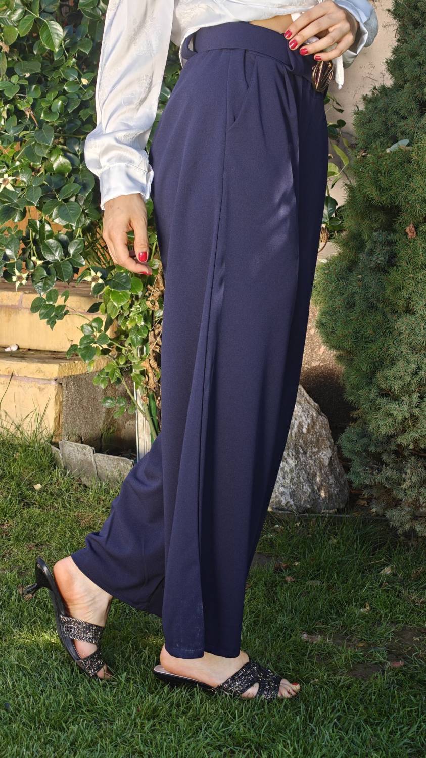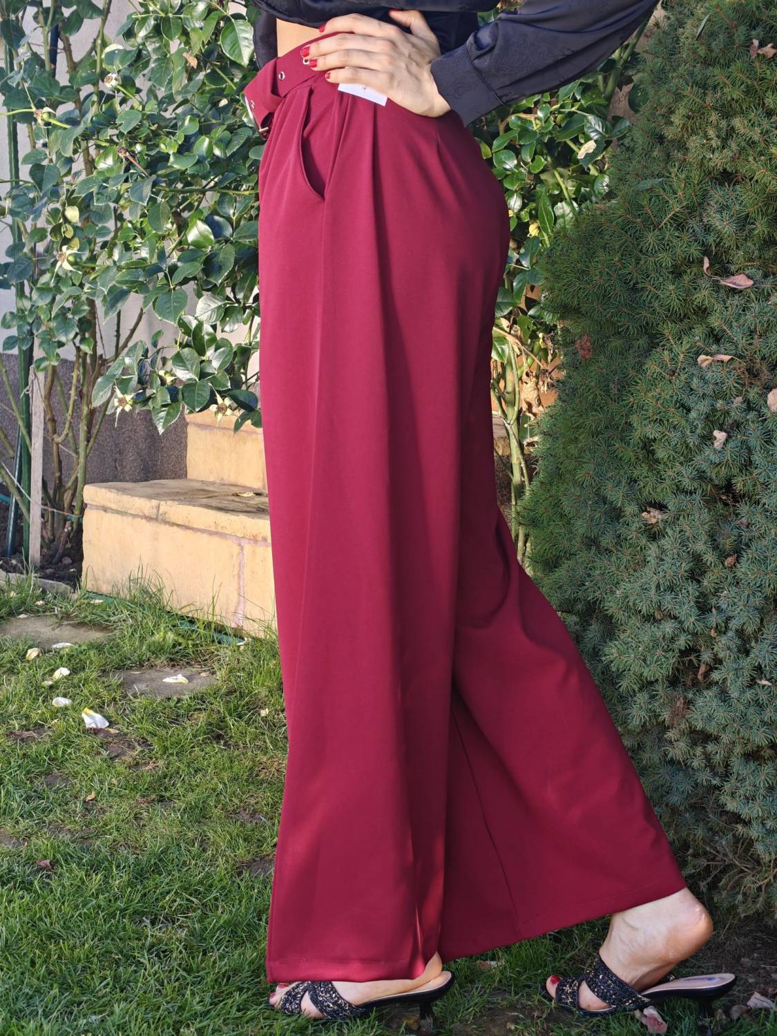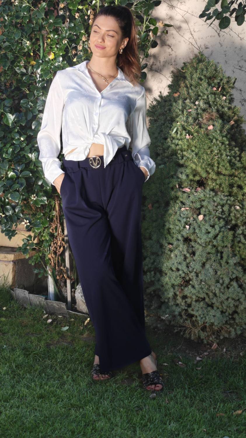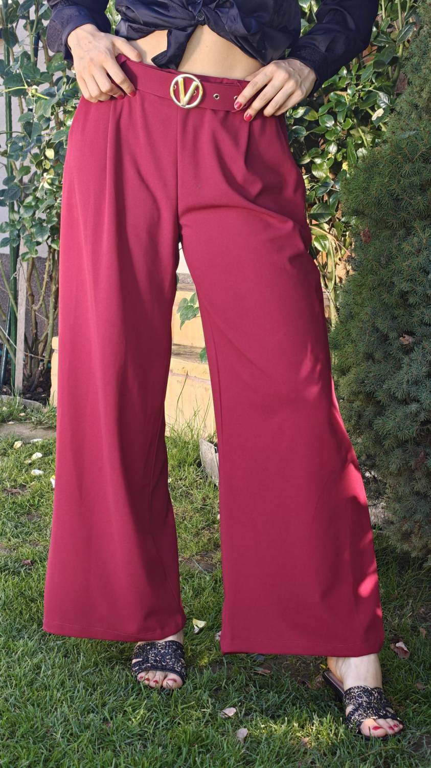 Široké nohavice s opaskom a ozdobnou sponou v zlatej farbe.