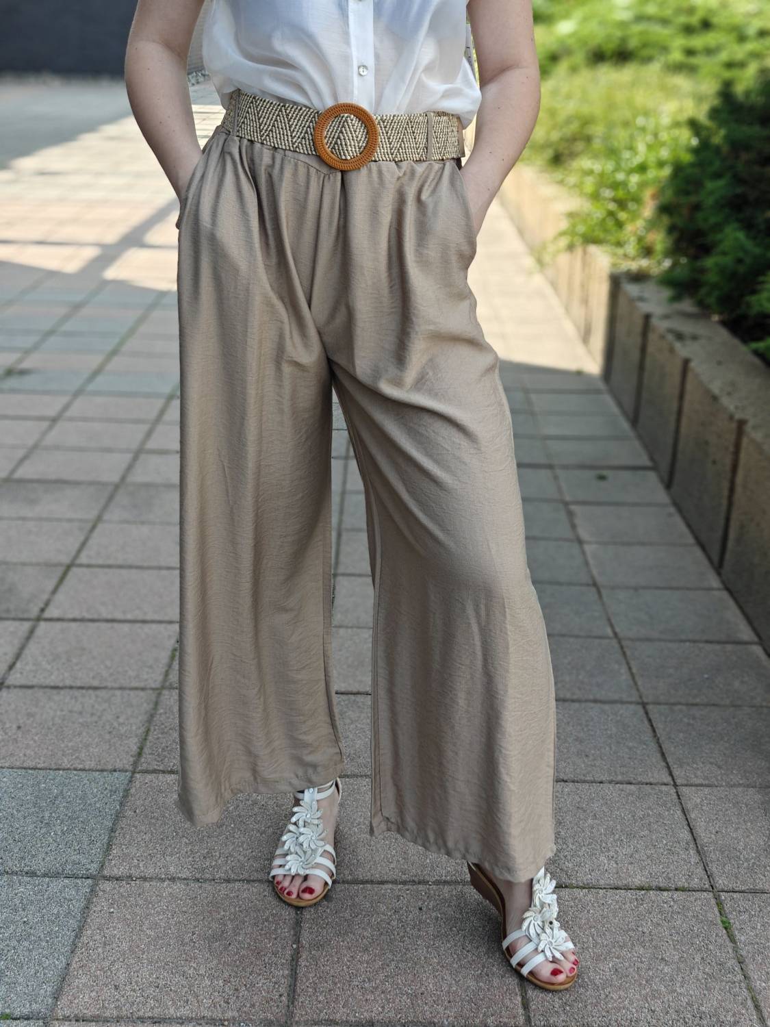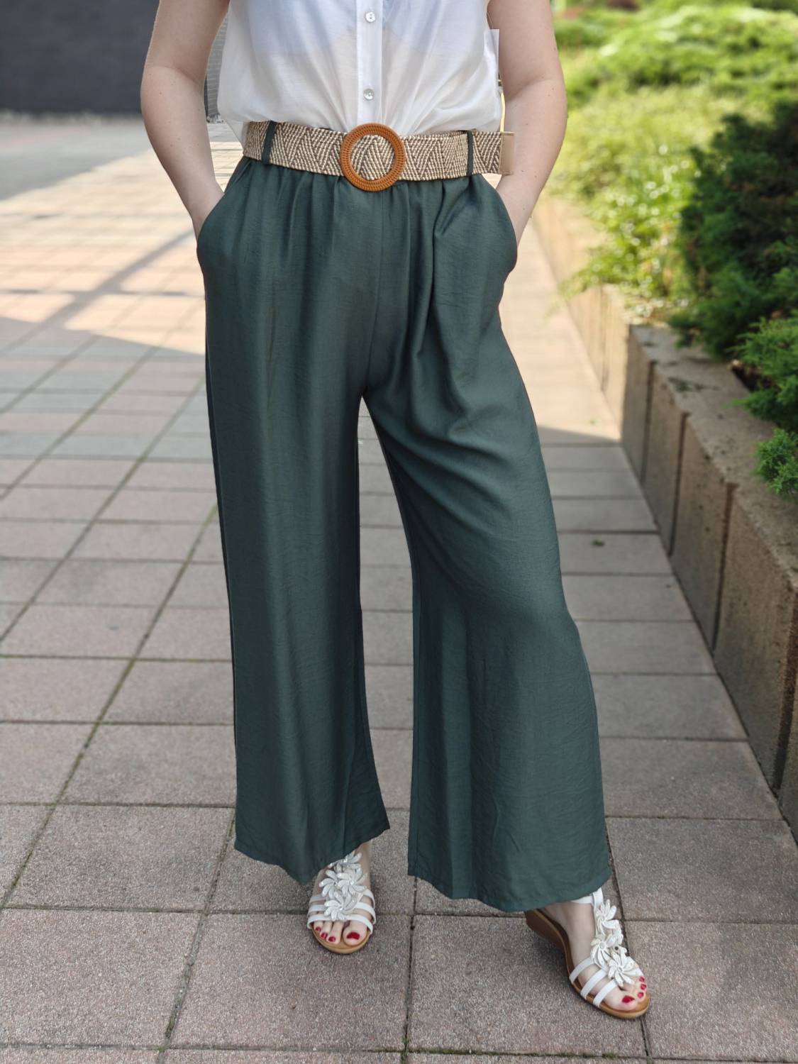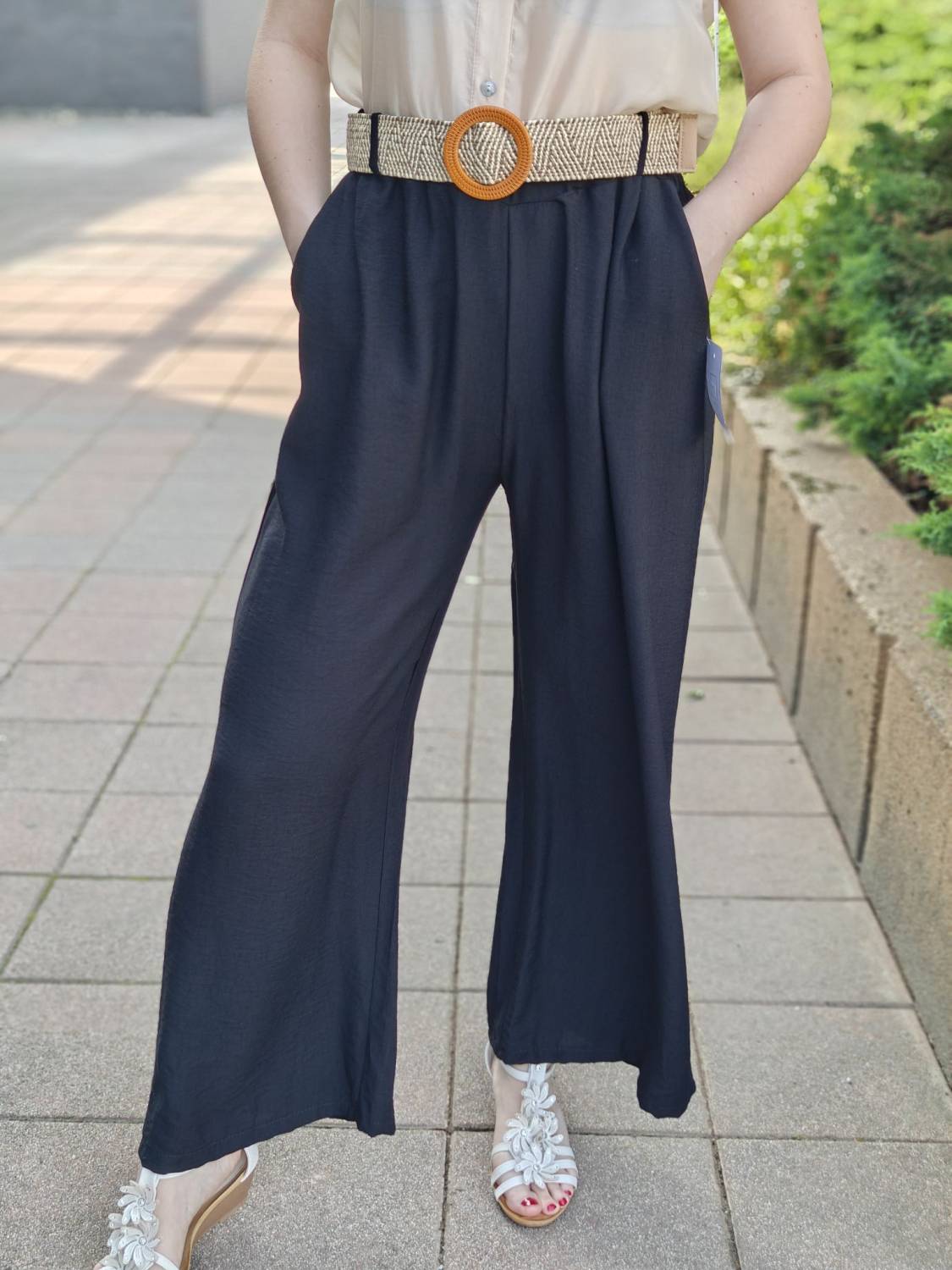 Letné široké nohavice. V páse do gumičky, takže sa pekne prispôsobia. Príjemný a pohodlný materiál.