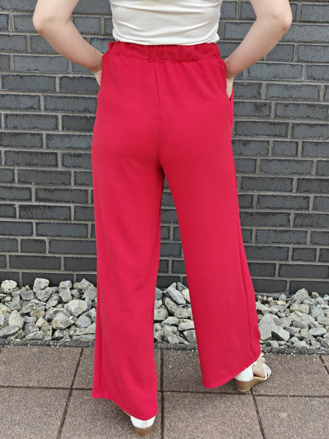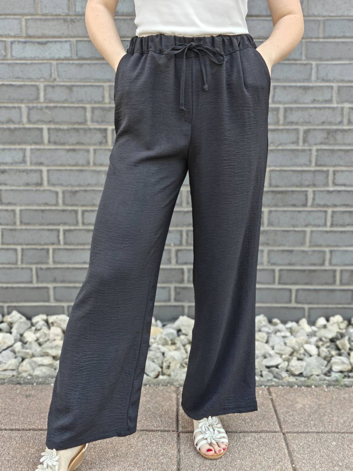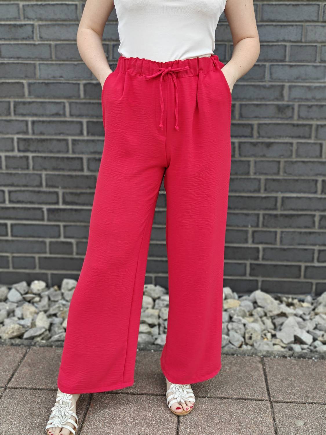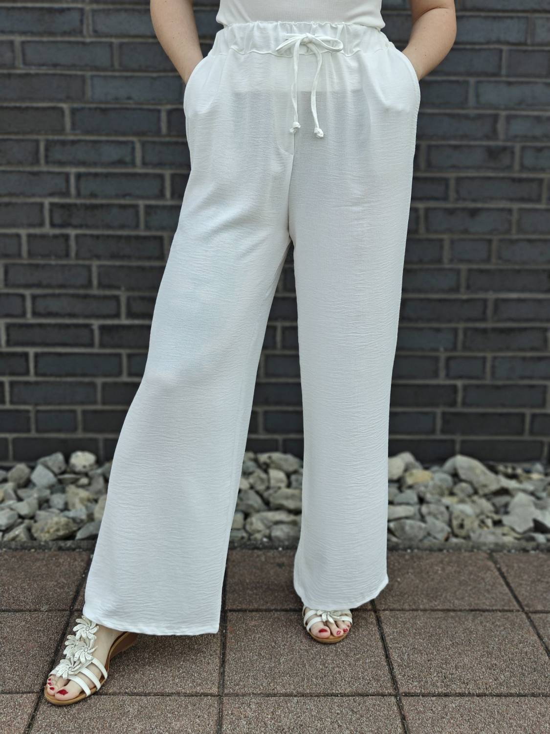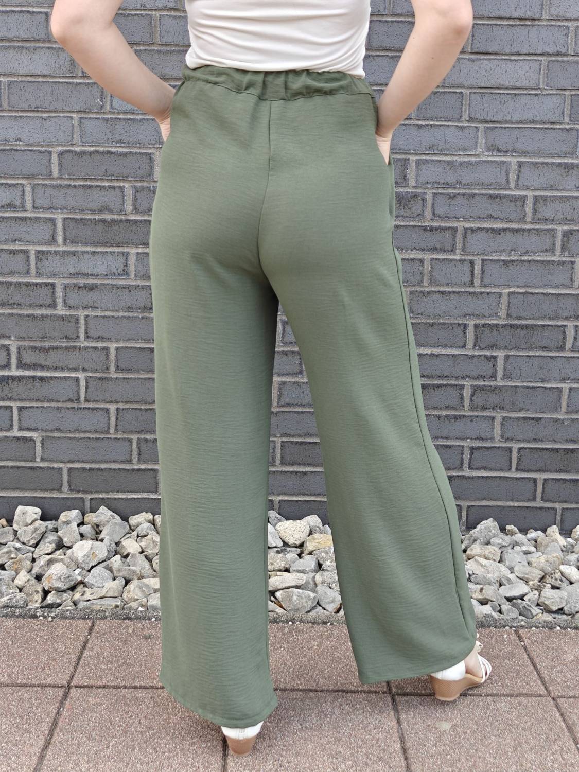 Letné široké nohavice. V páse do gumičky a šnúrkou na stiahnutie, takže sa pekne prispôsobia. Príjemný a pohodlný materiál.