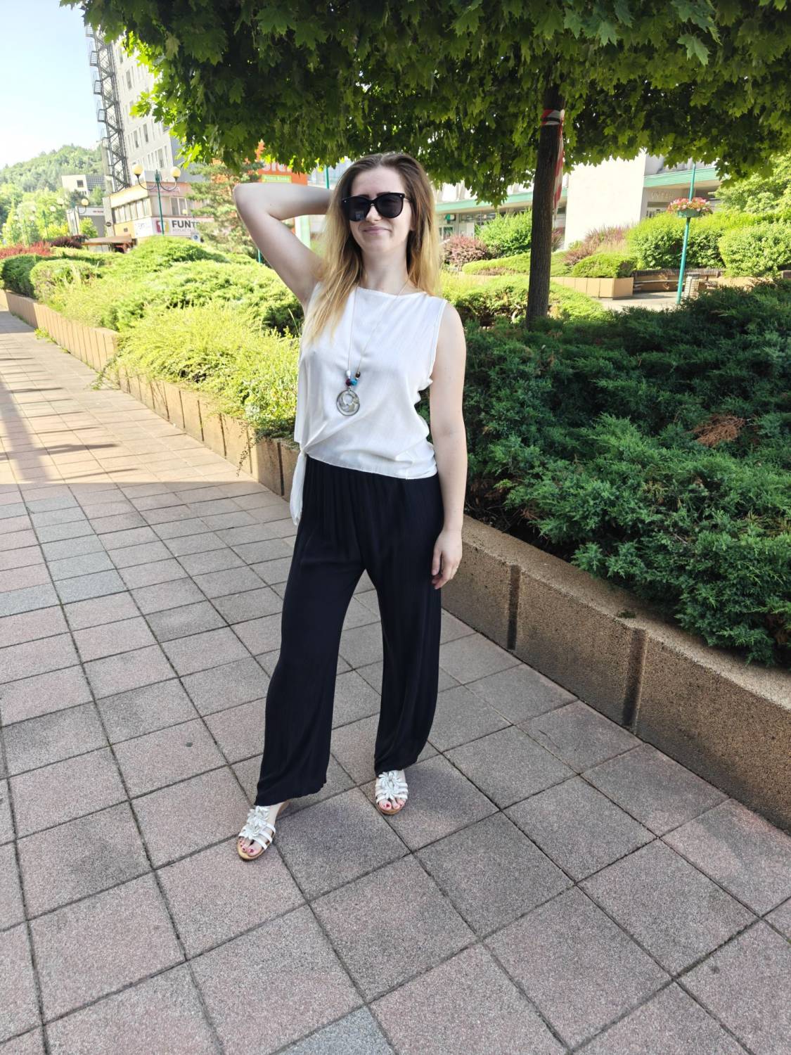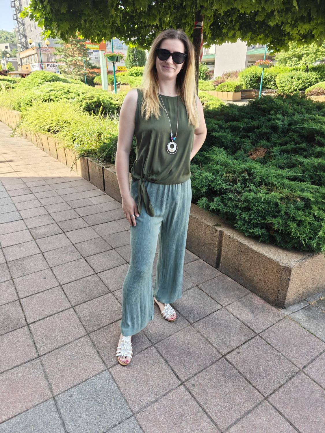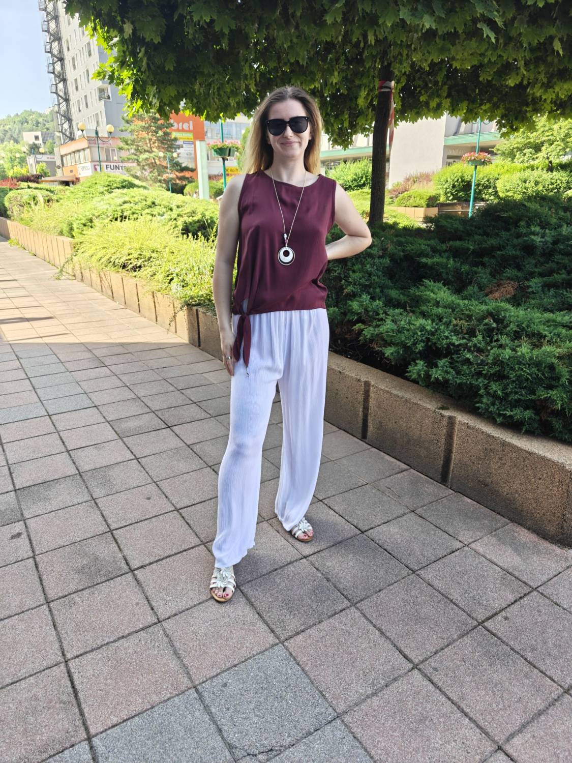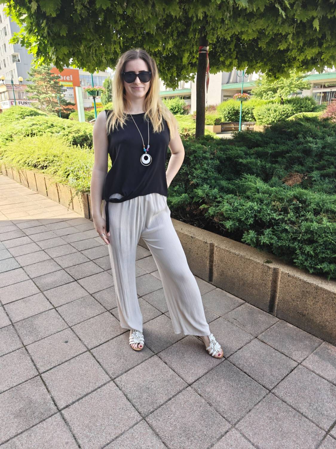 Letné široké nohavice s jemnou štruktúrou a vysokým sedom. V páse do gumičky, takže sa pekne prispôsobia. Príjemný a pohodlný materiál.