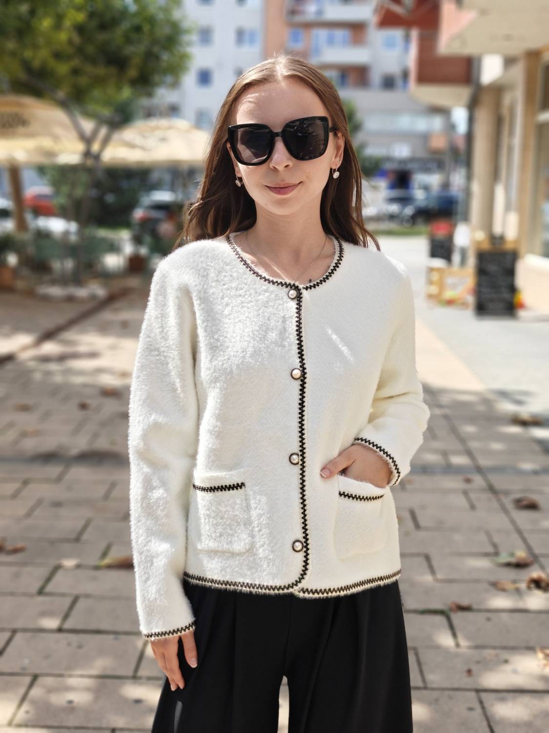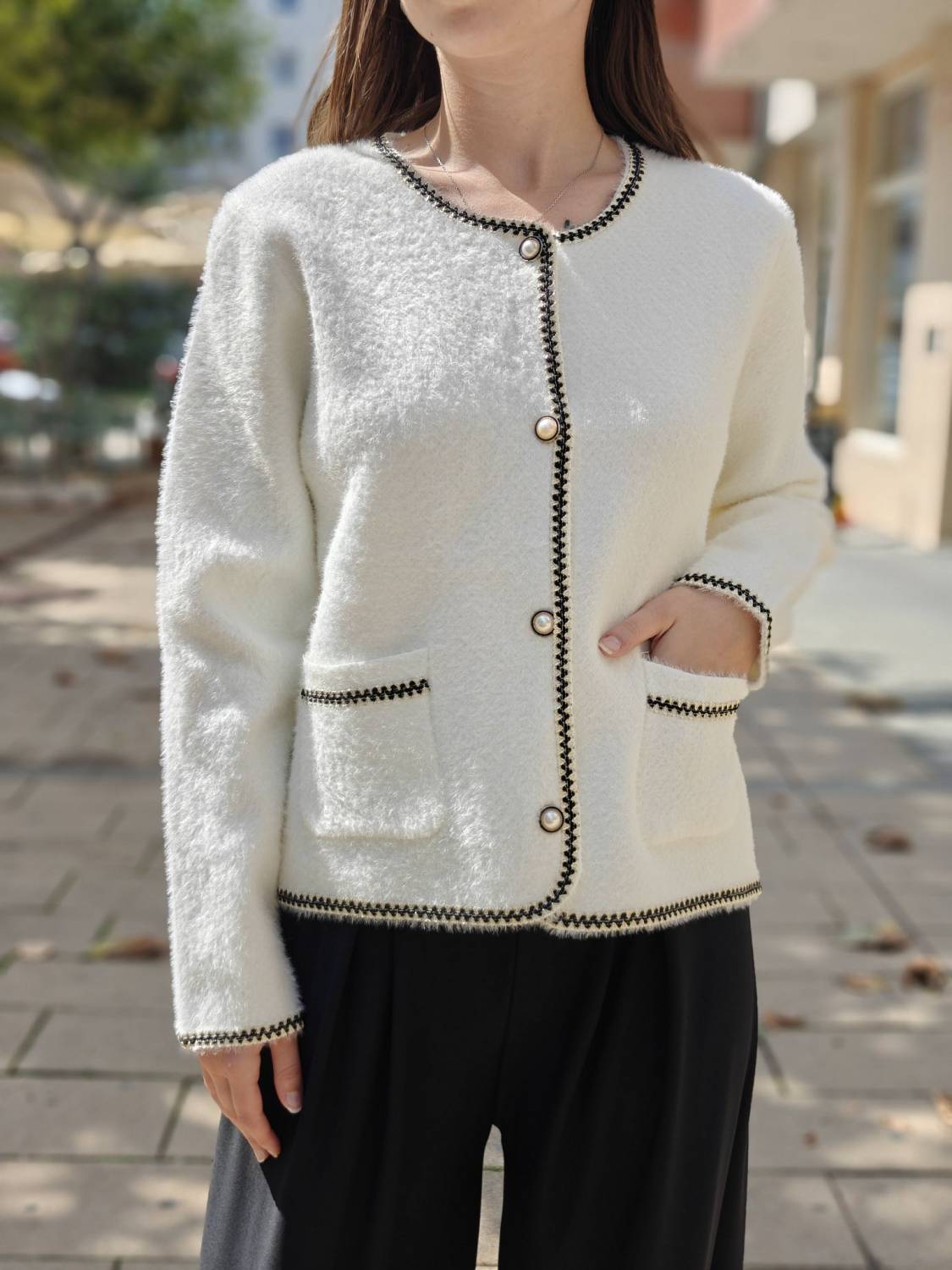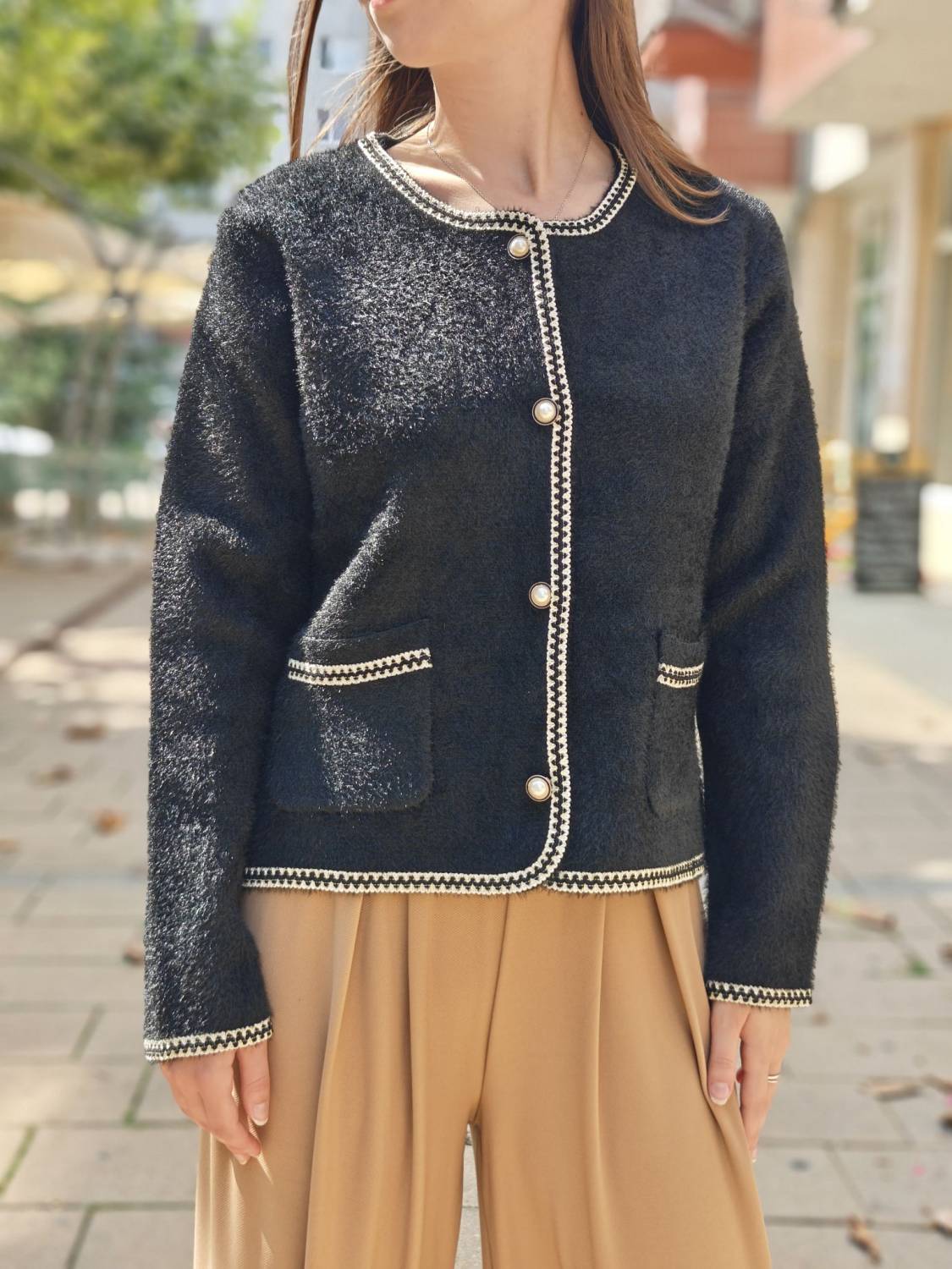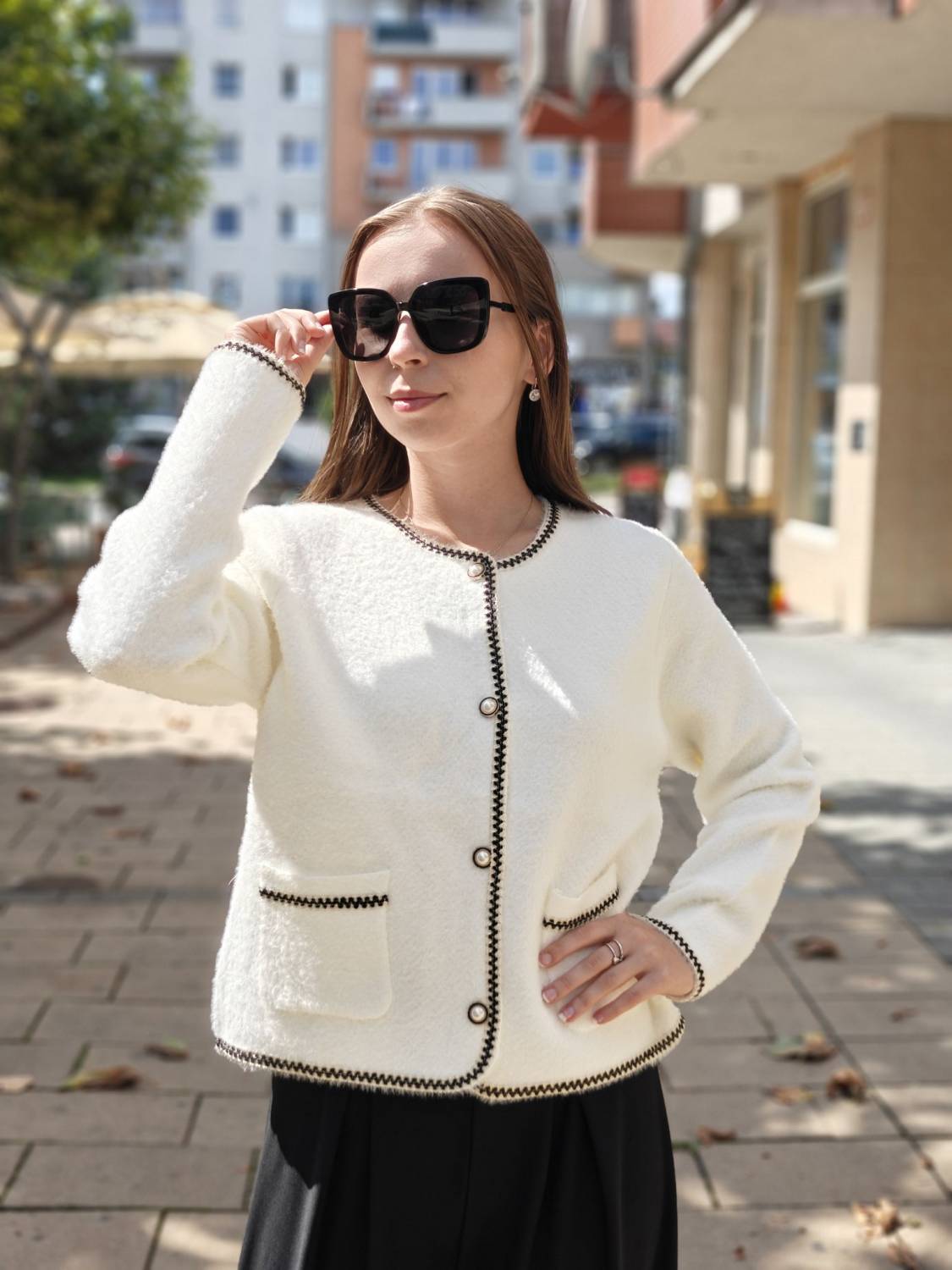 Krátke alpakové sako na gombíky .