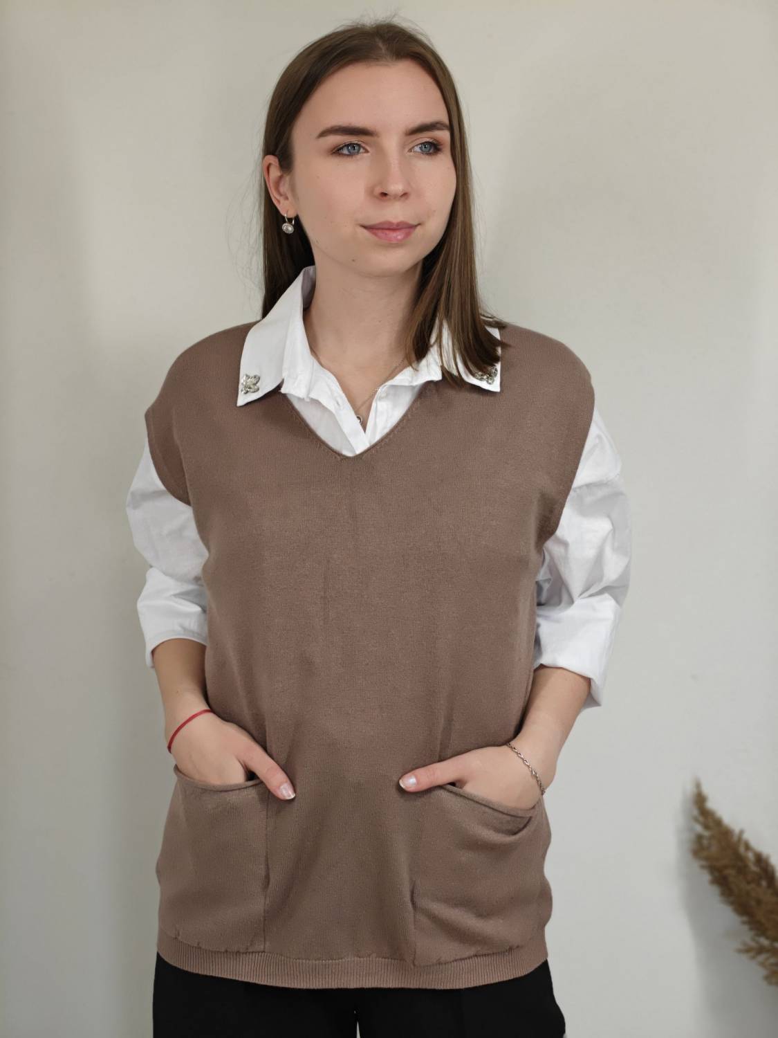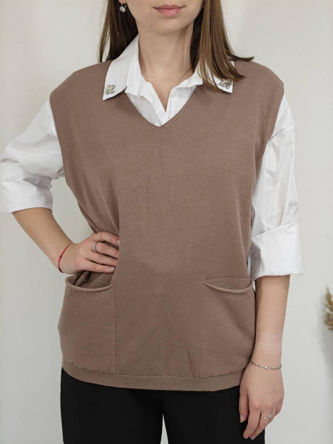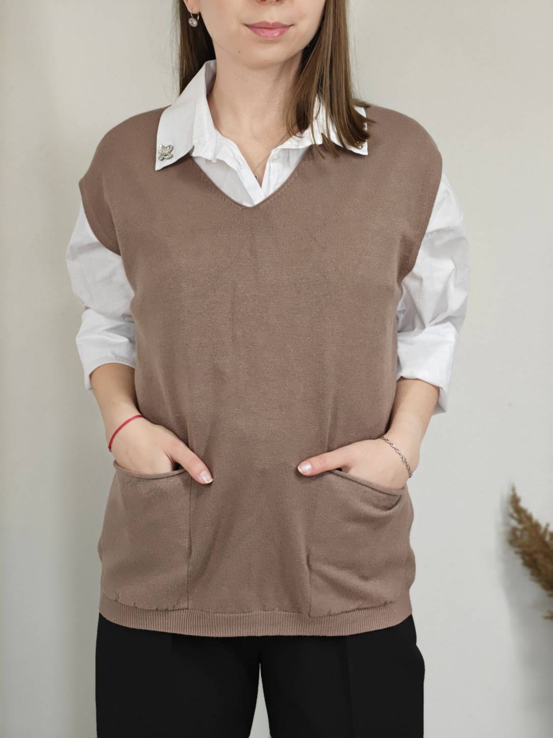 Úpletová vesta z veľmi príjemného materiálu, má funkčné vrecká.