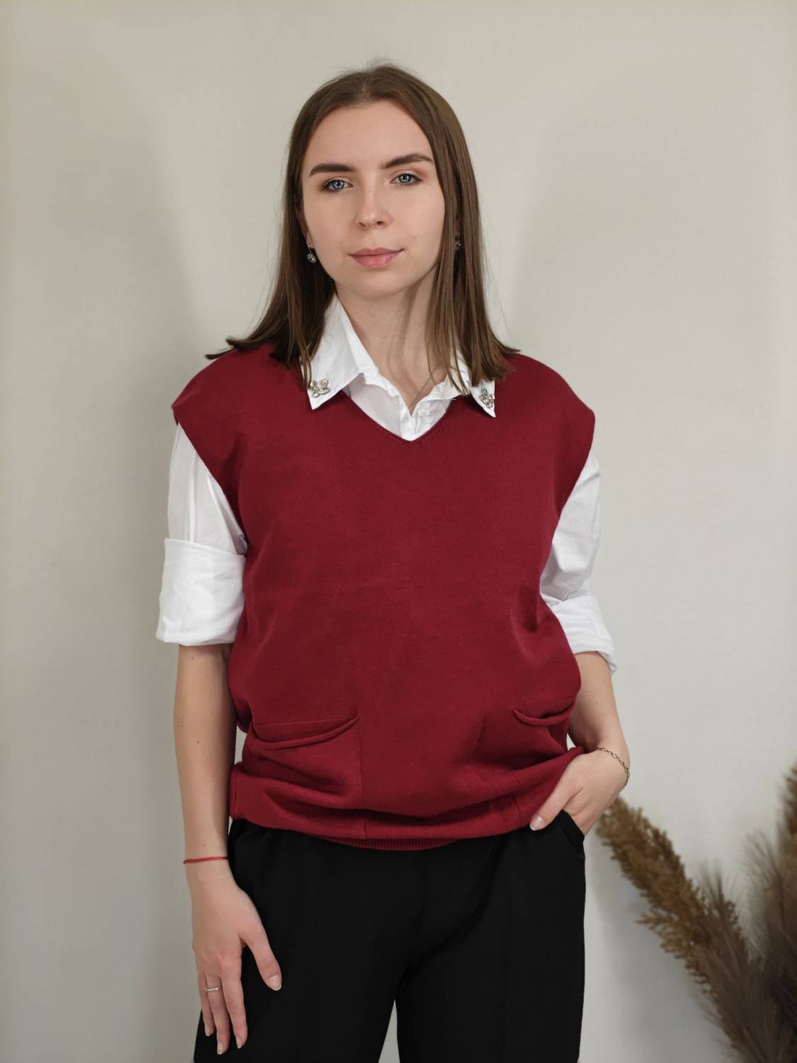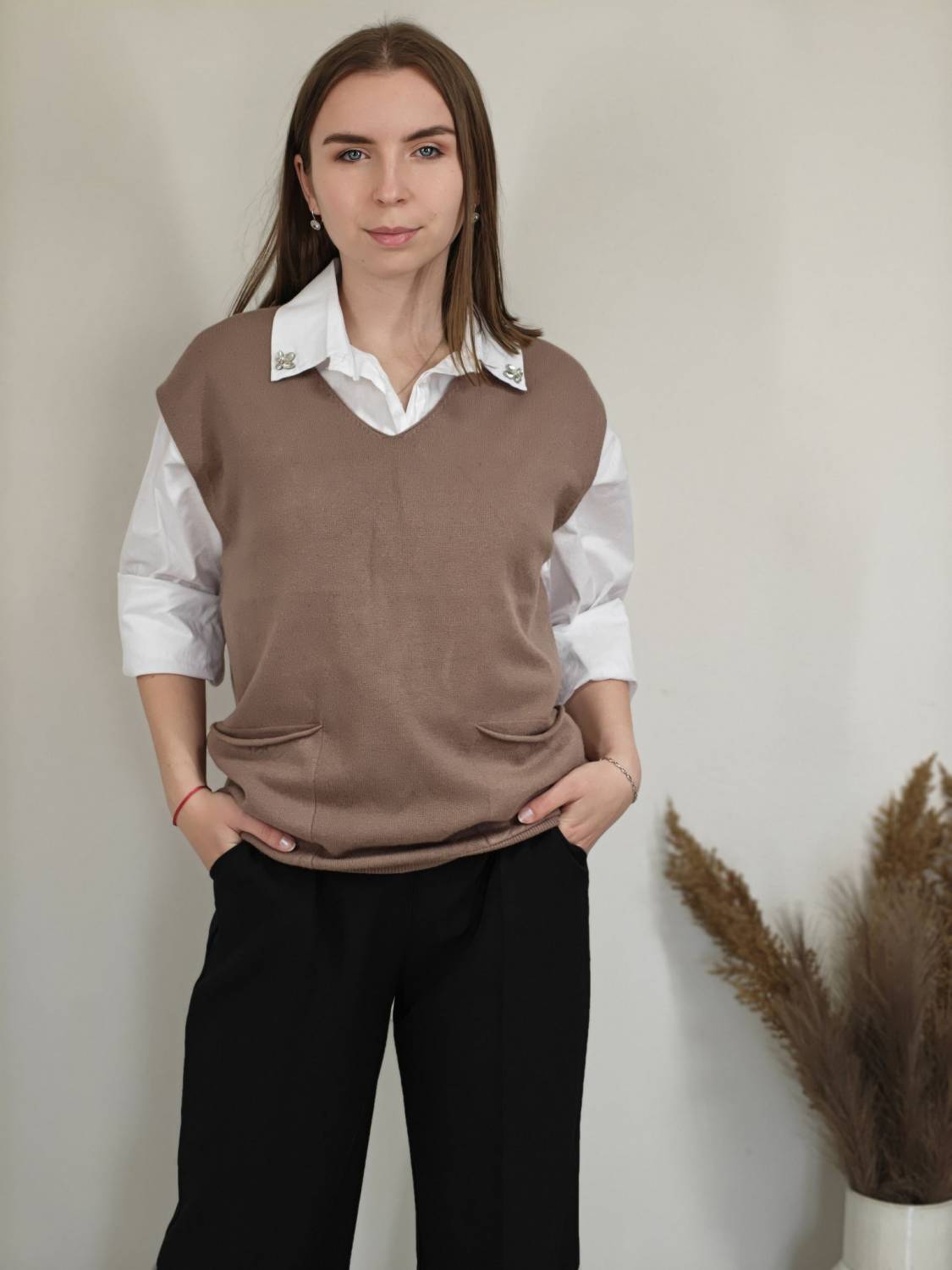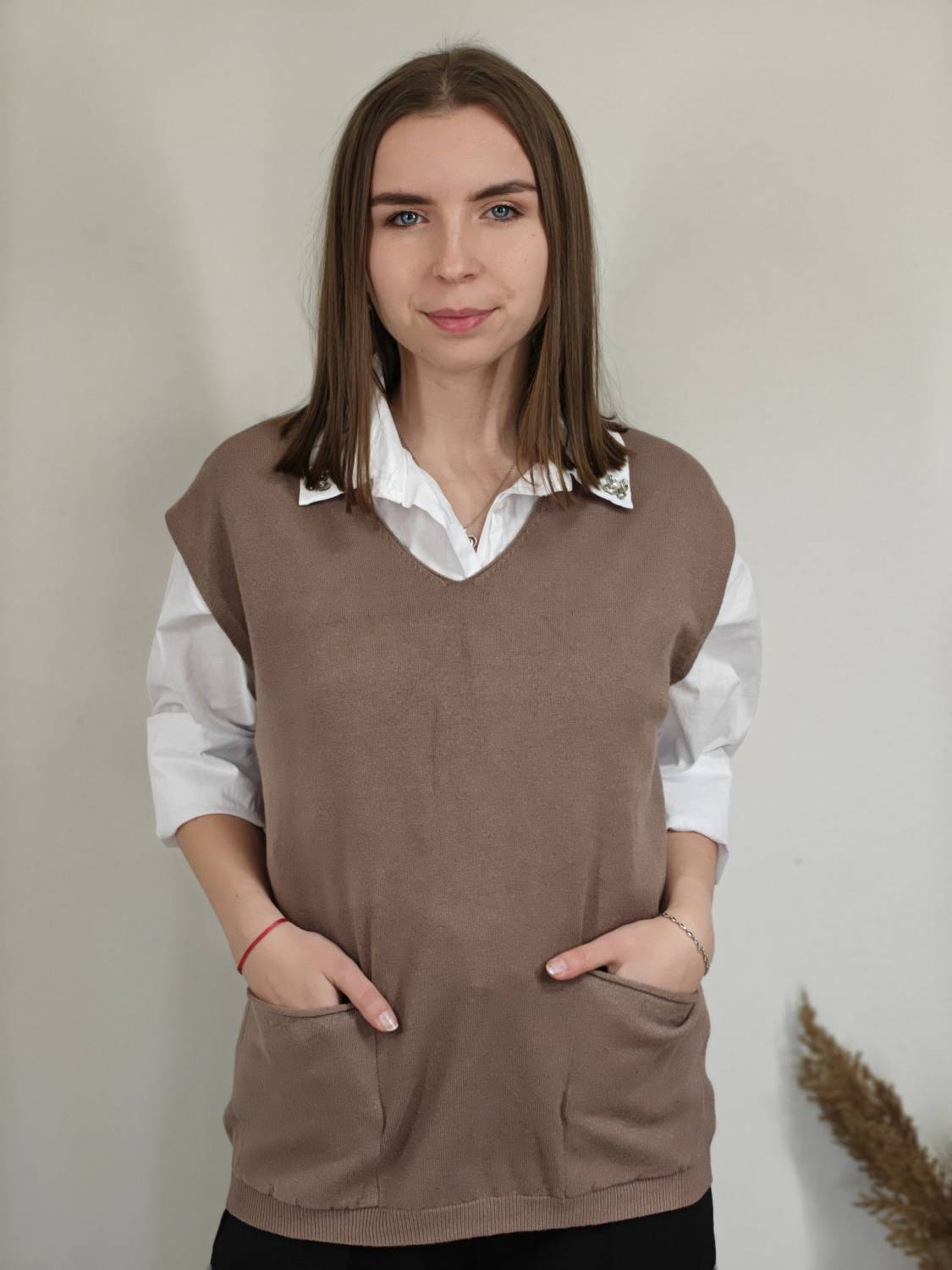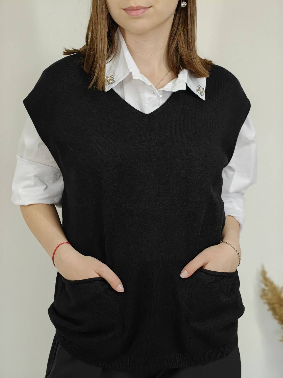 Úpletová vesta z veľmi príjemného materiálu, má funkčné vrecká.