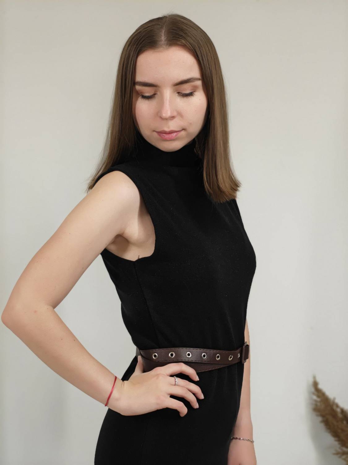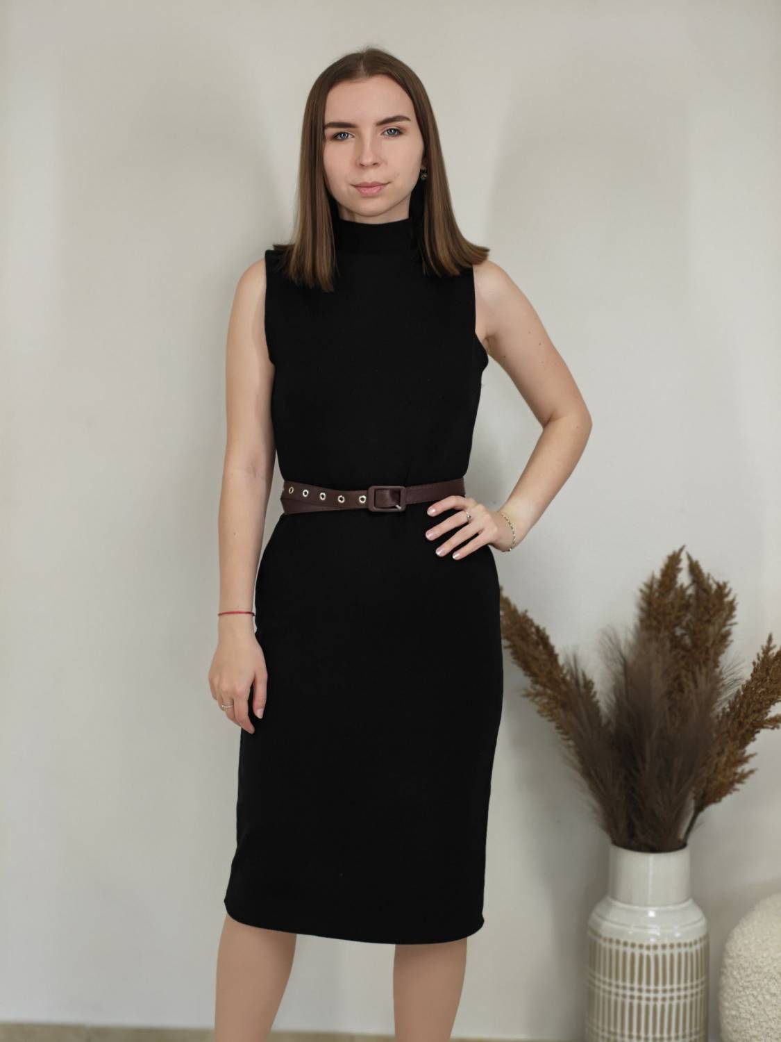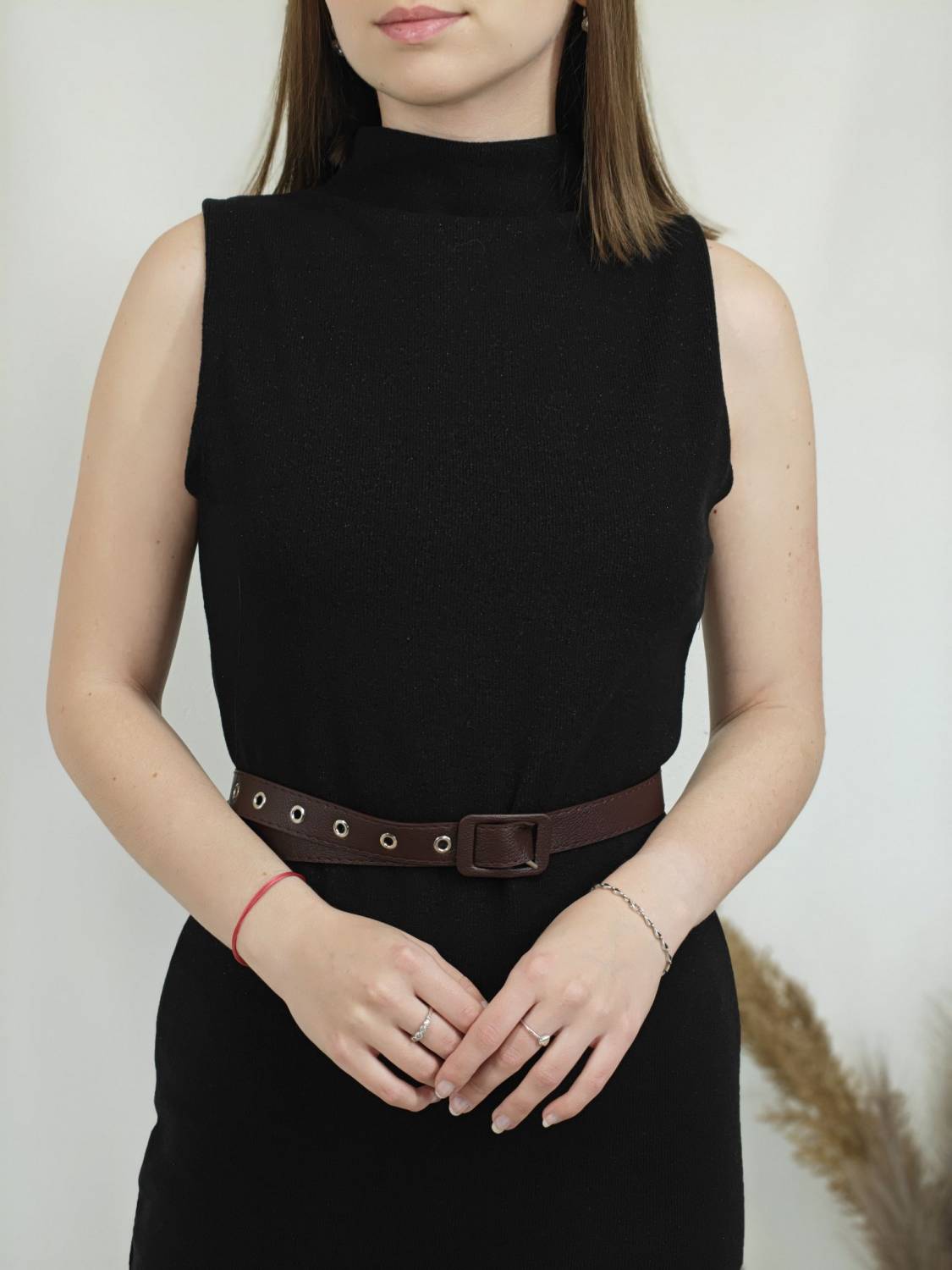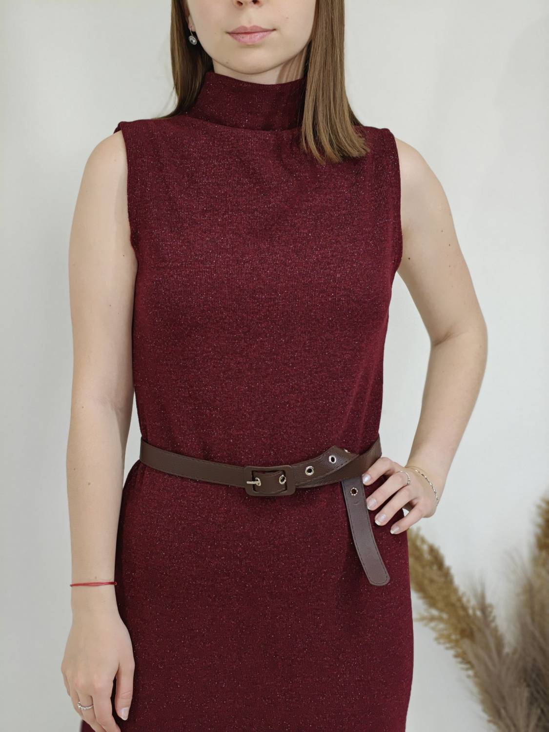 Úpletové šaty bez rukávov s jemnou lurexovou nitkou a opasokom.
