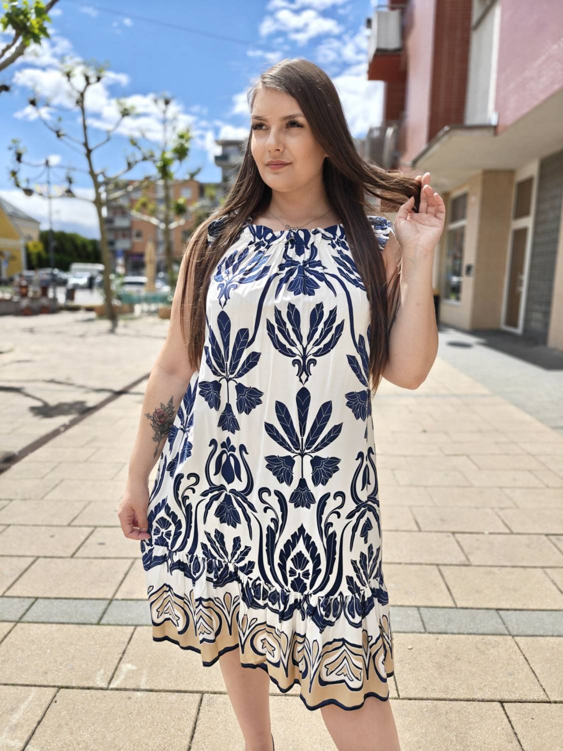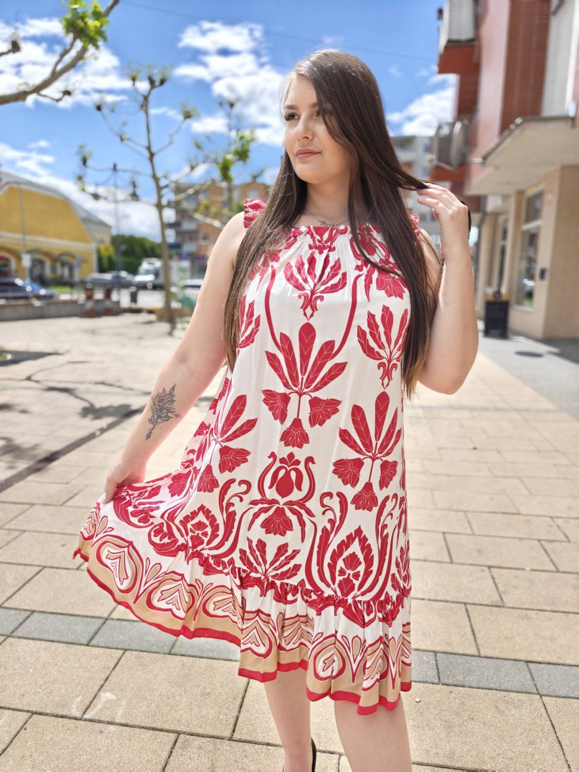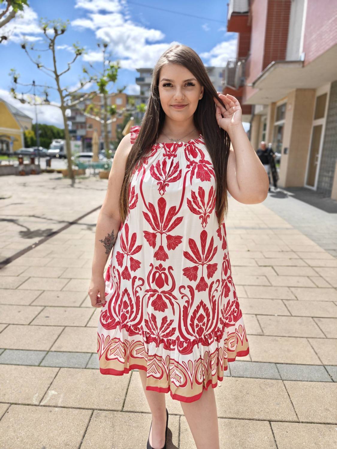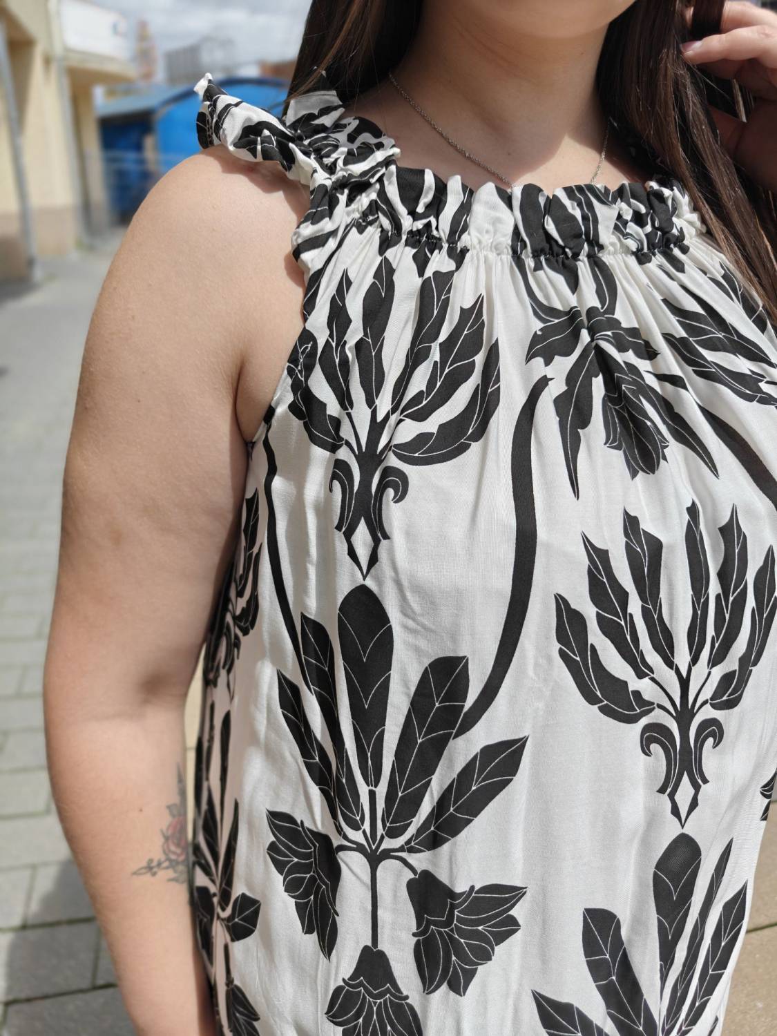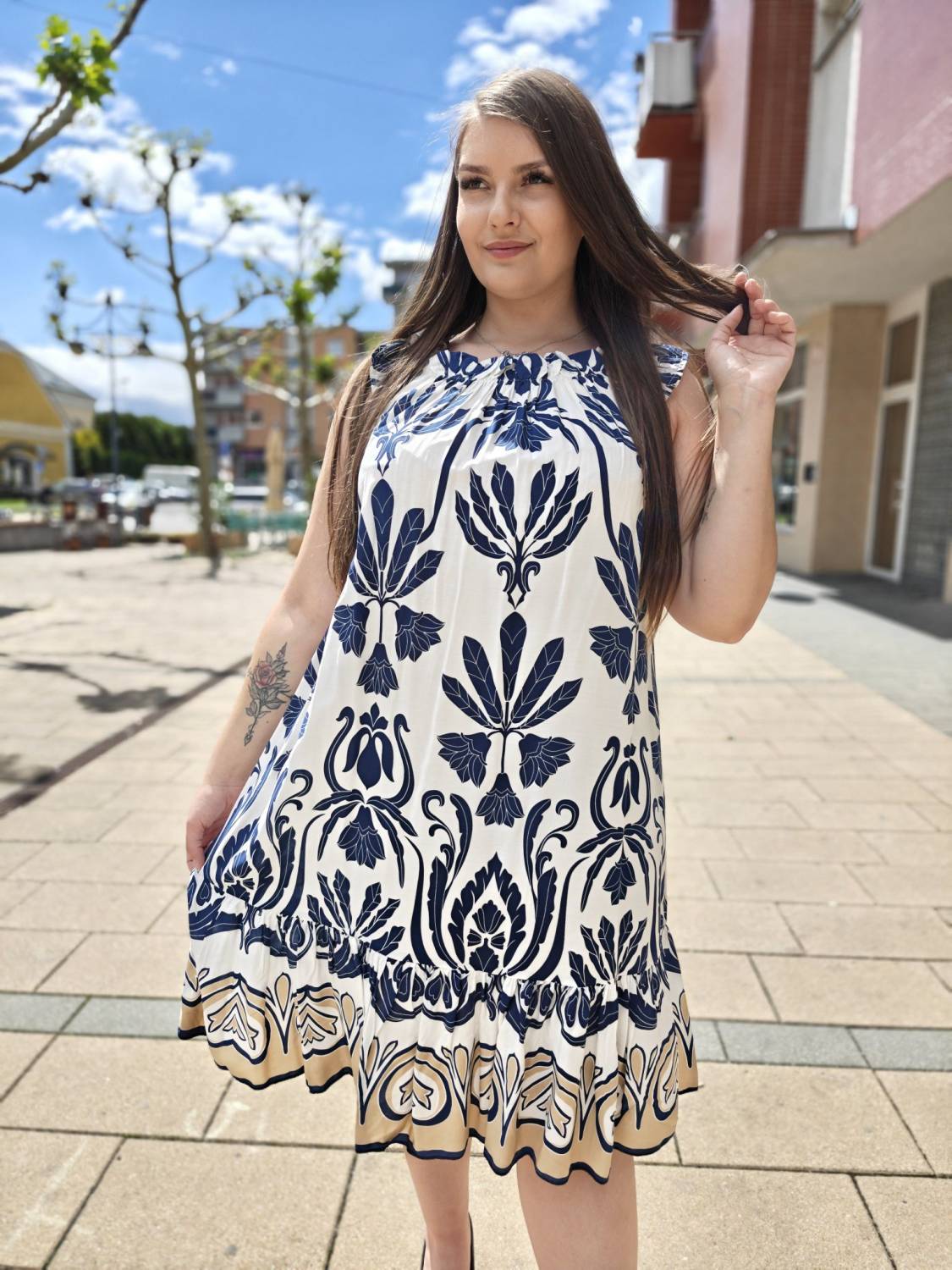 Vzorované šaty z viskózového materiálu na ramienka.