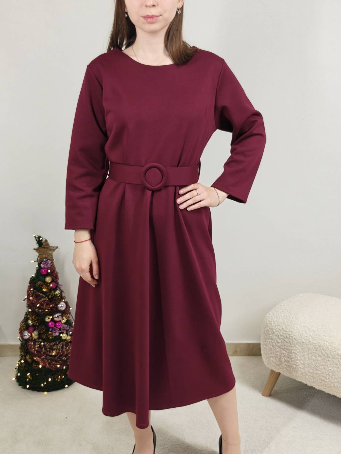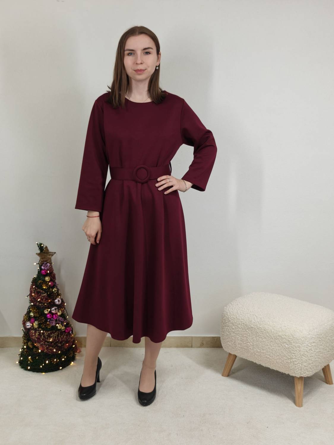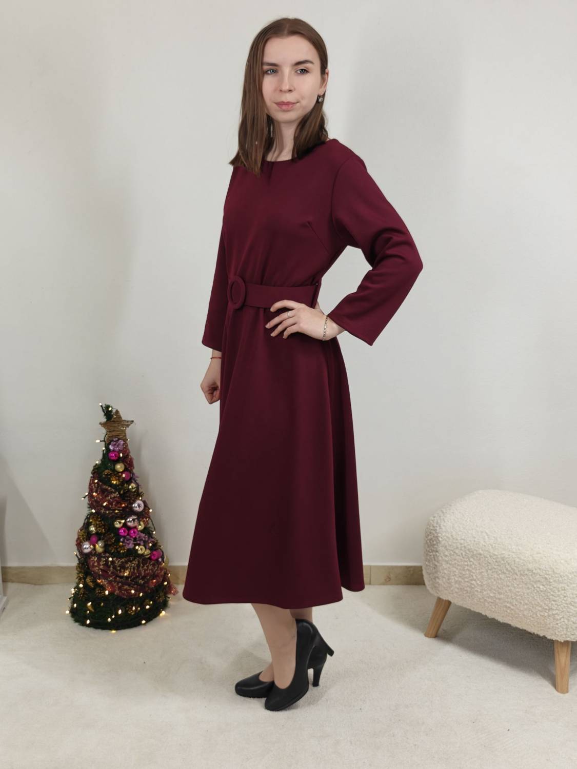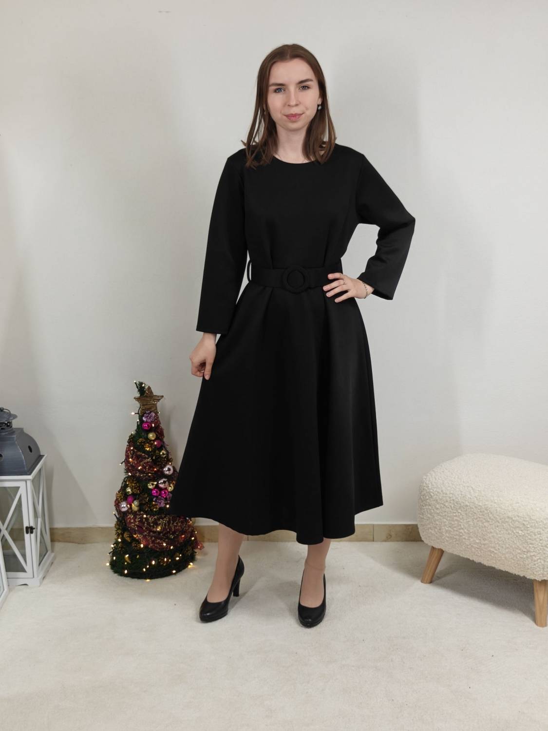 Úpletové šaty s opaskom. Šaty sú prestrihnuté v páse aj na prsiach. Suknička je A- čkového strihu.