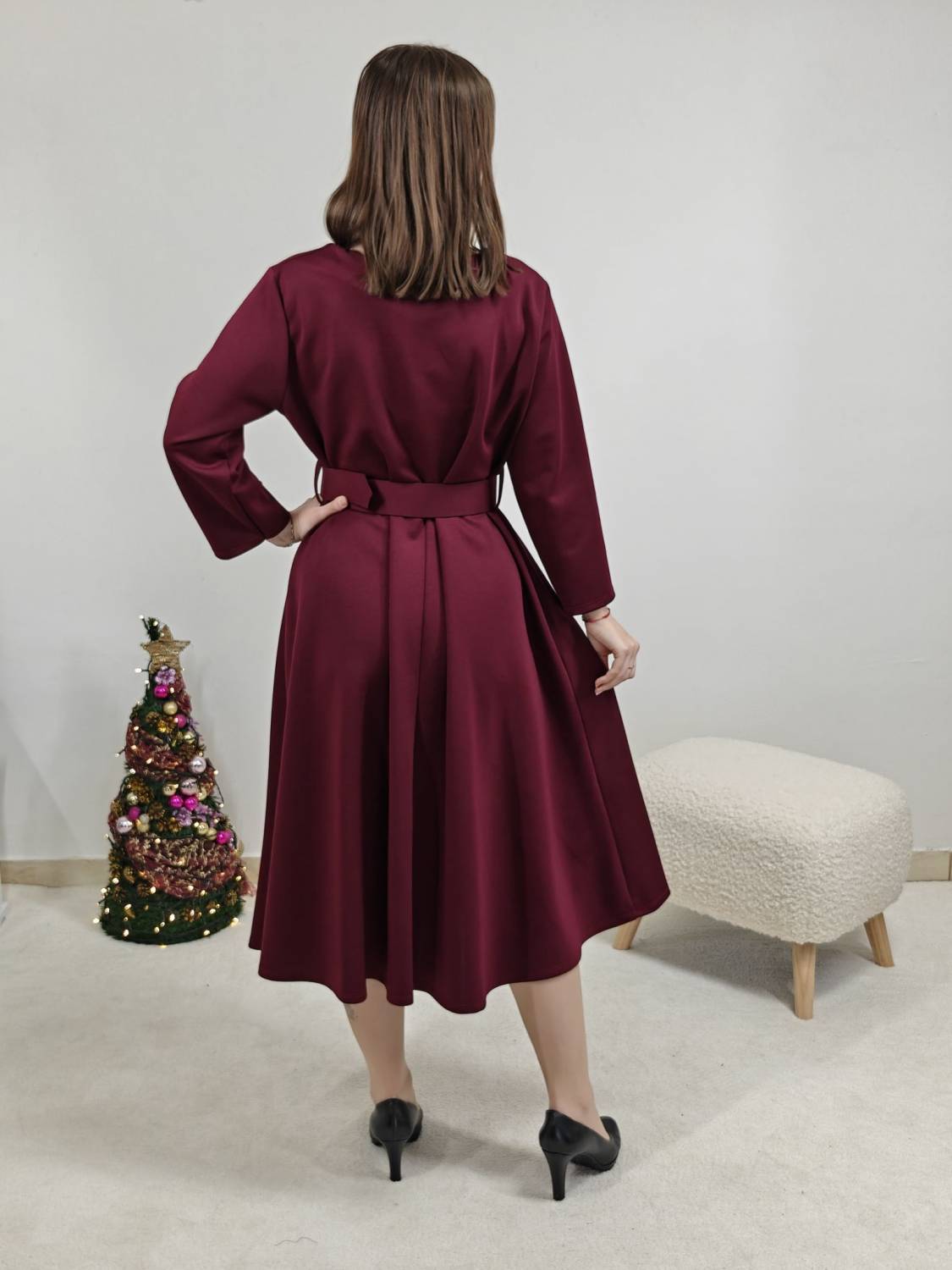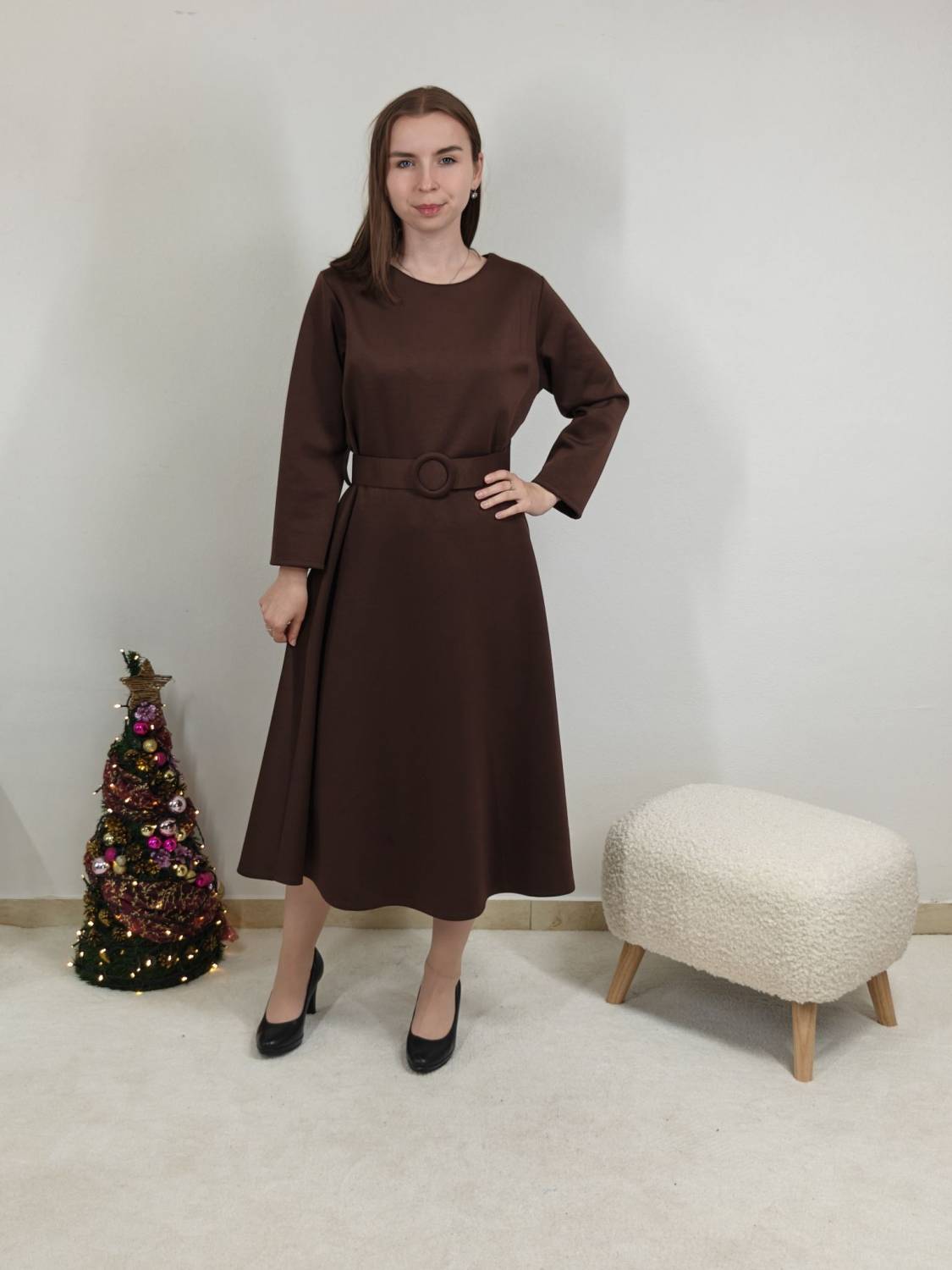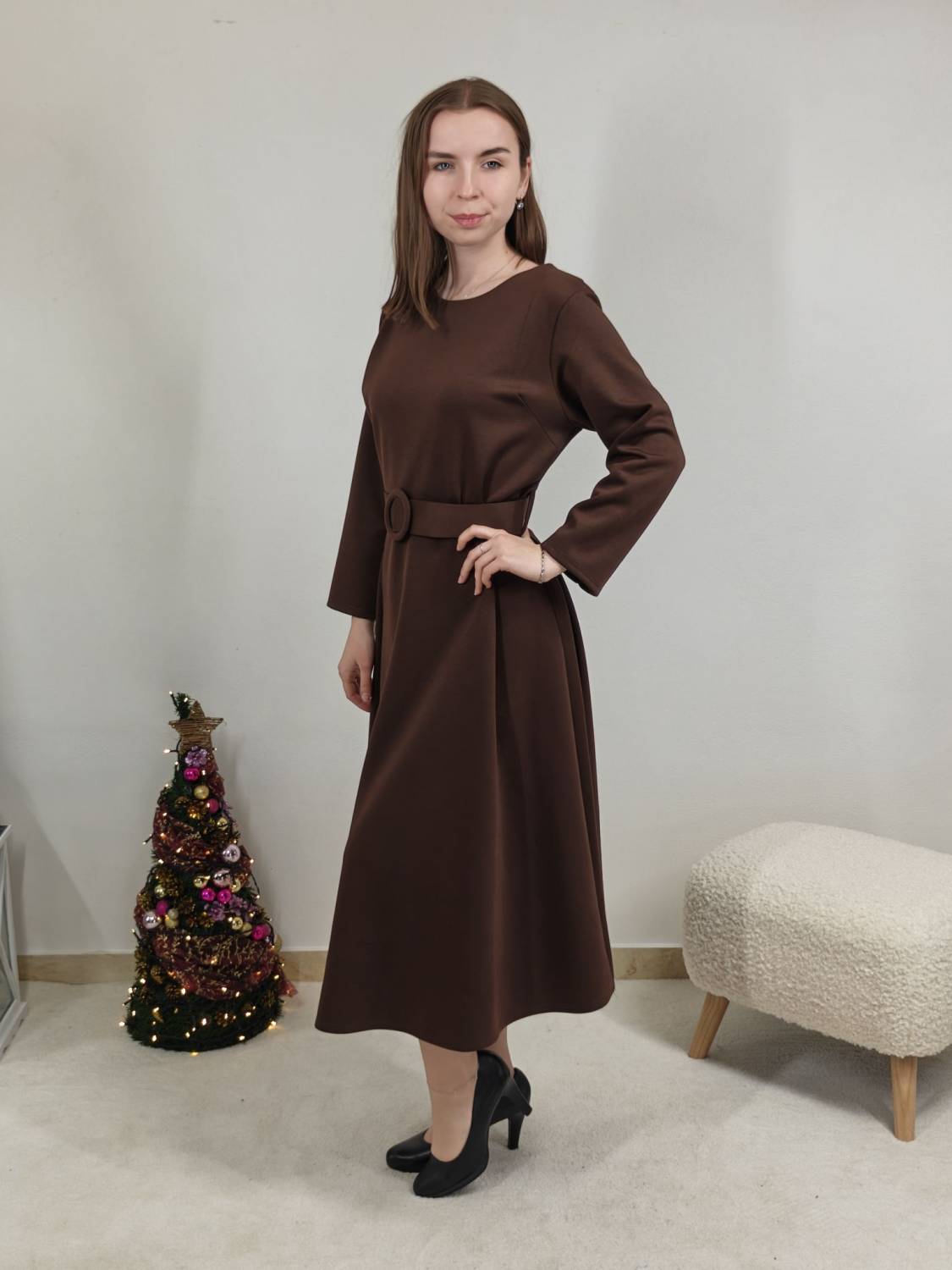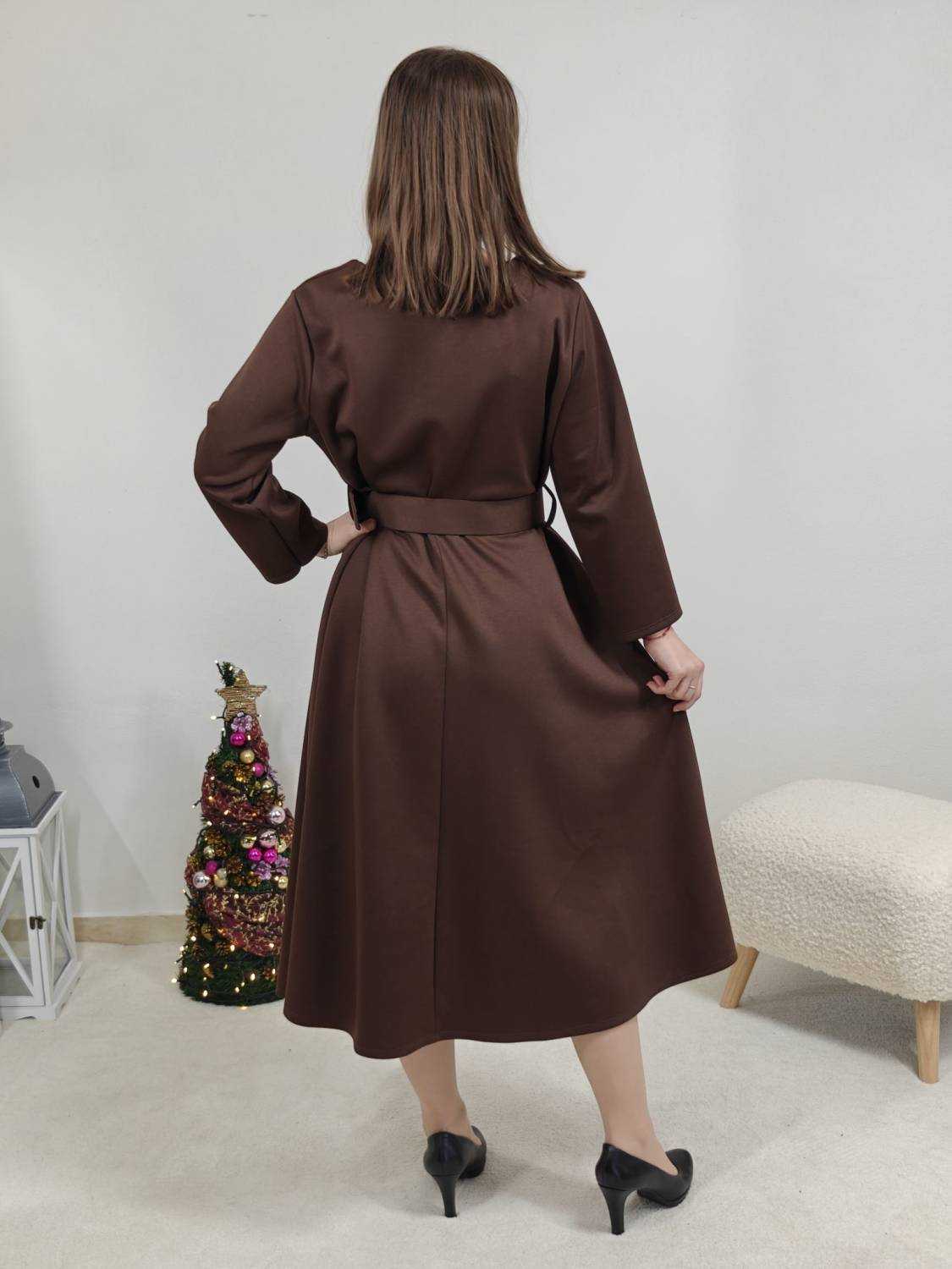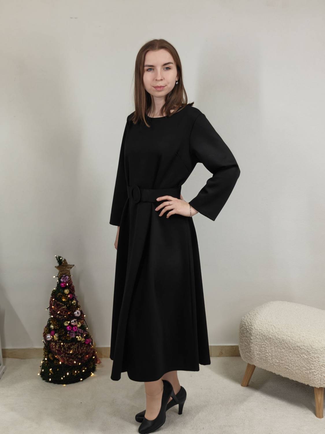 Úpletové šaty s opaskom. Šaty sú prestrihnuté v páse aj na prsiach. Suknička je A- čkového strihu.