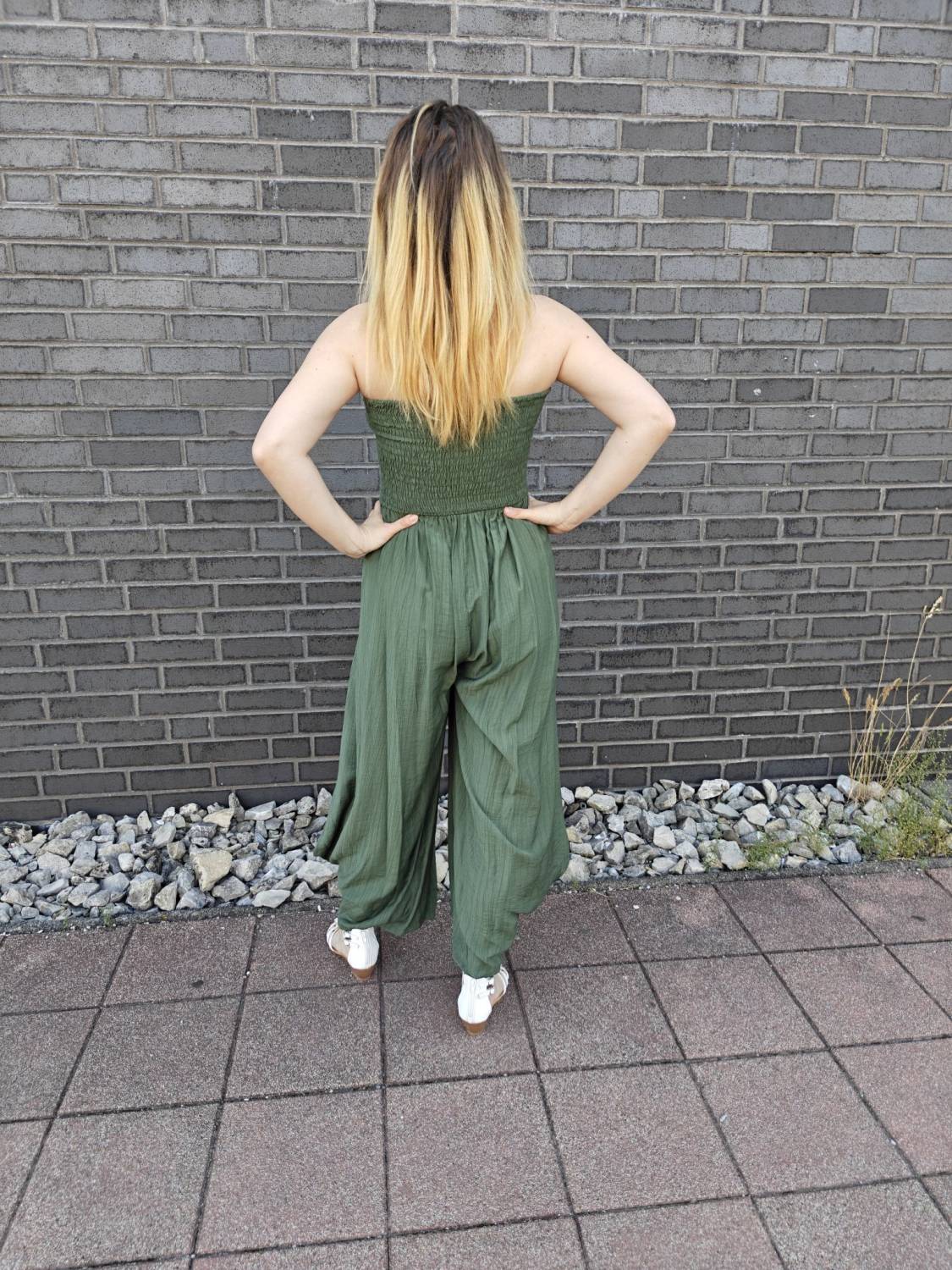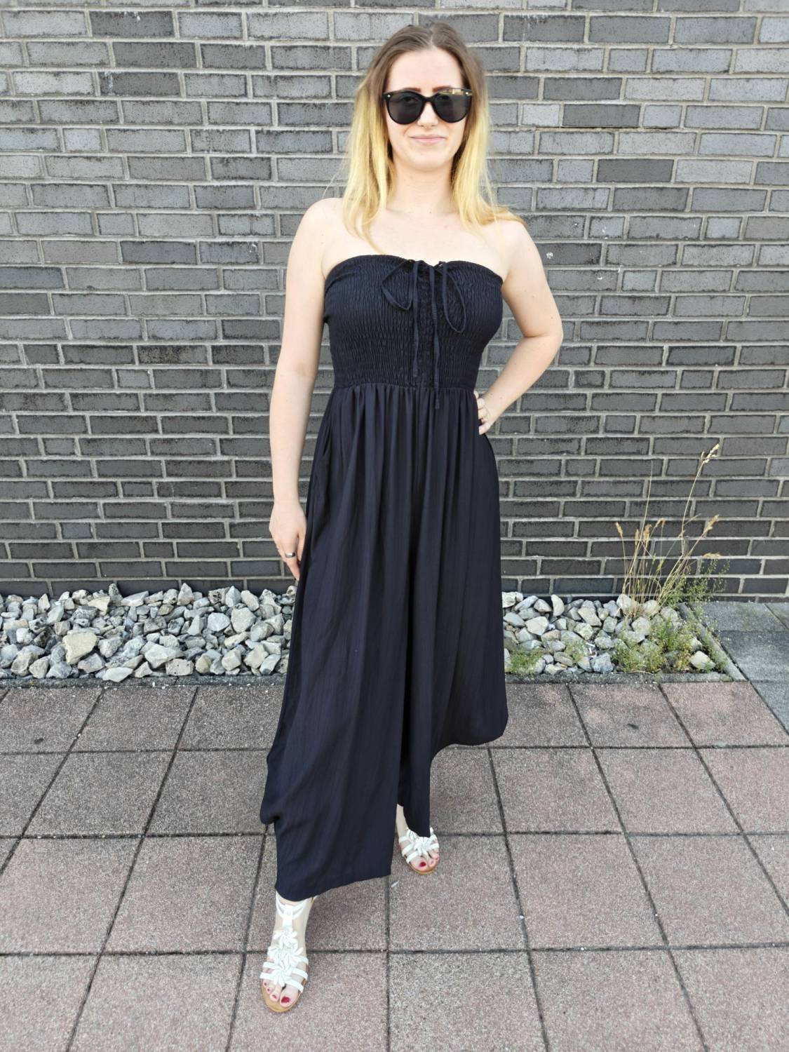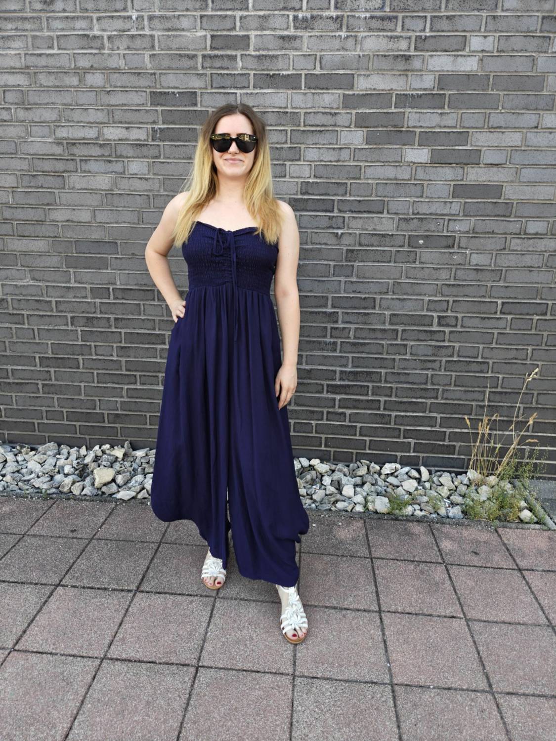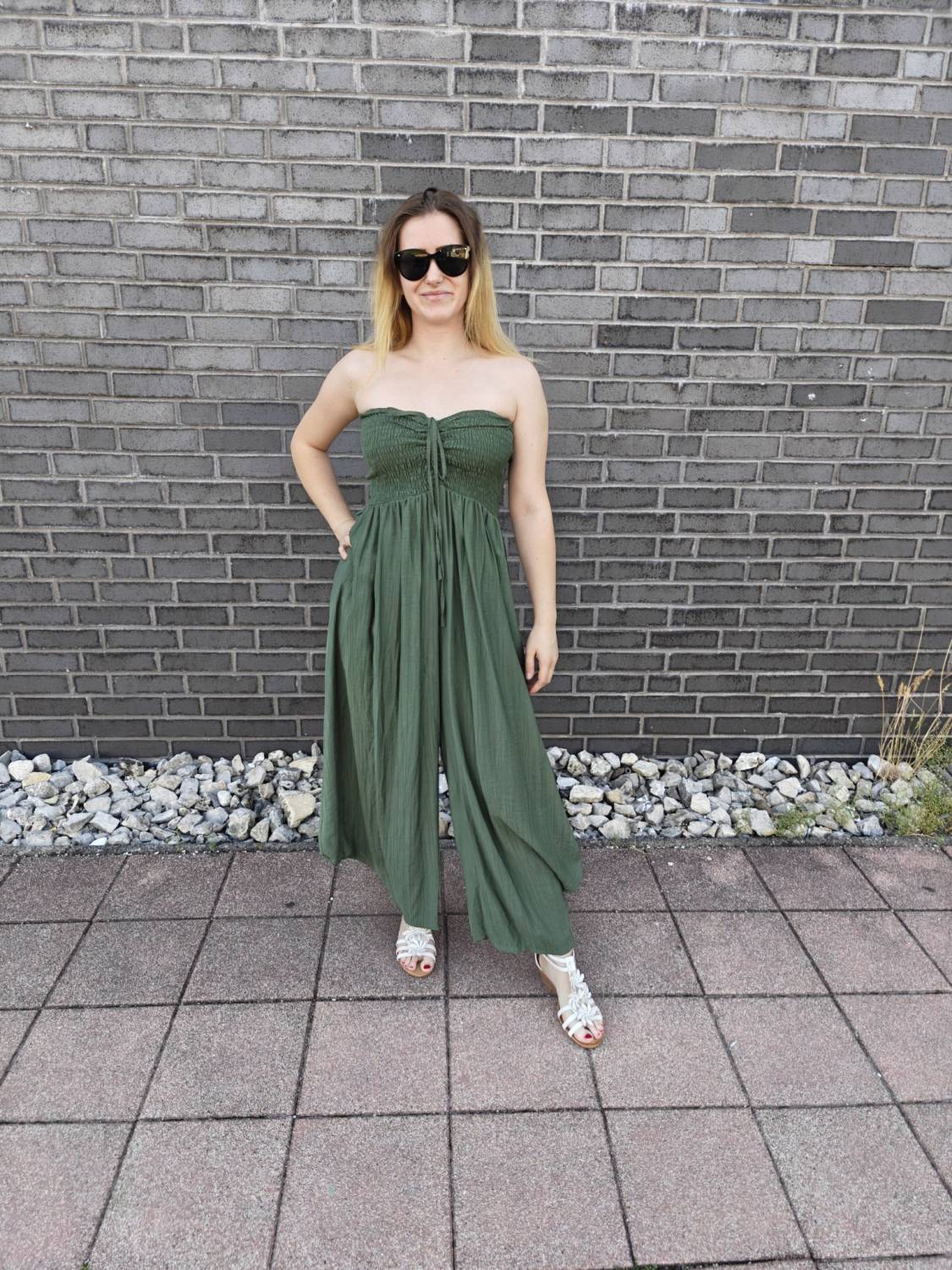 Dlhý overal s nariasením na prsiach.