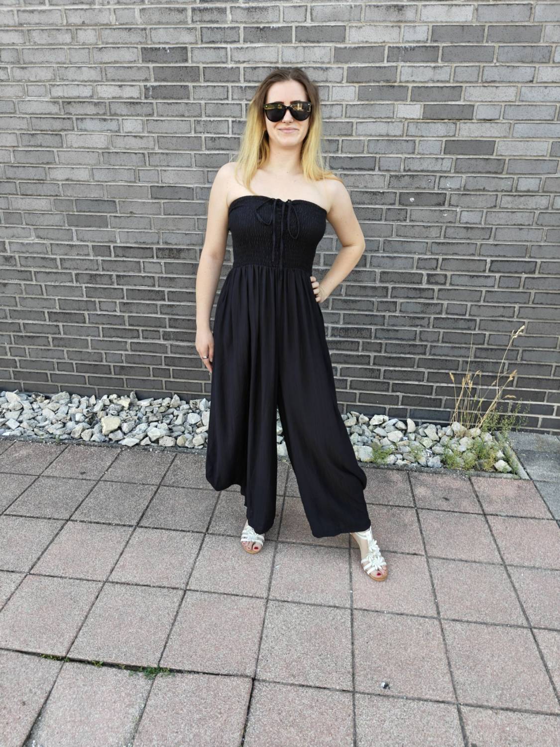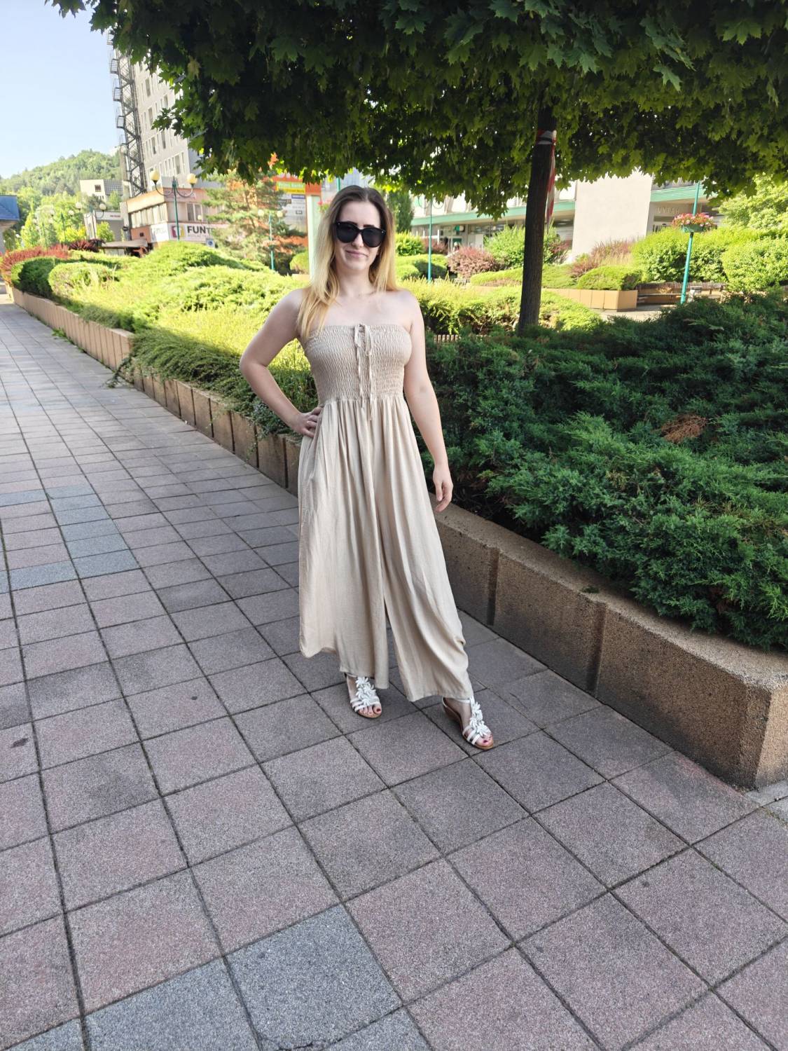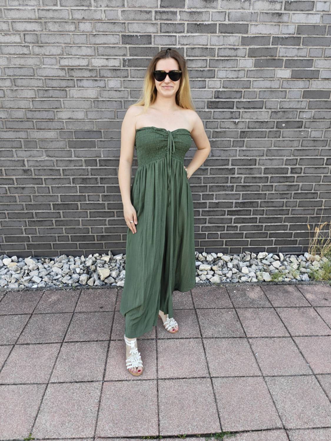 Dlhý overal s nariasením na prsiach.