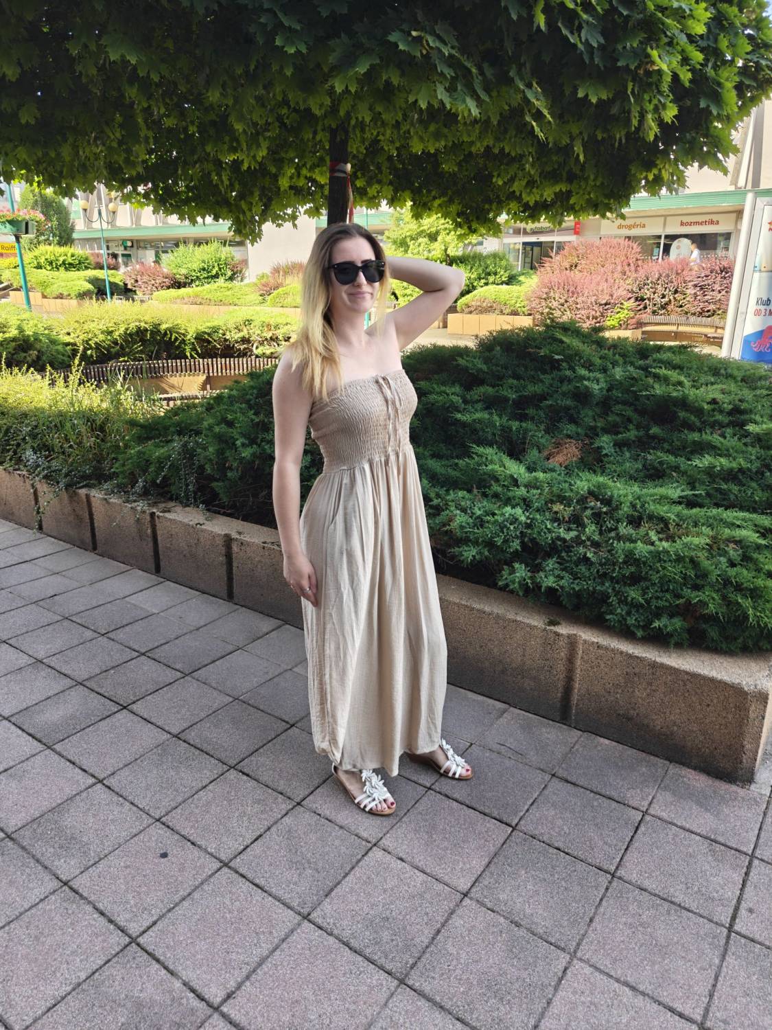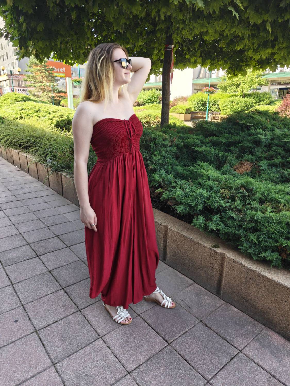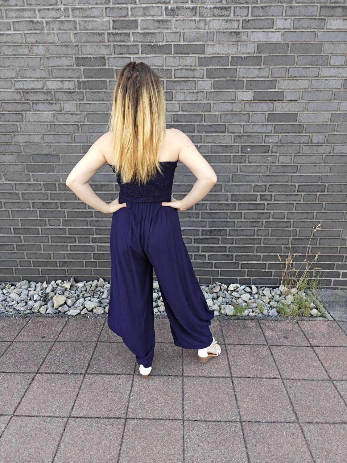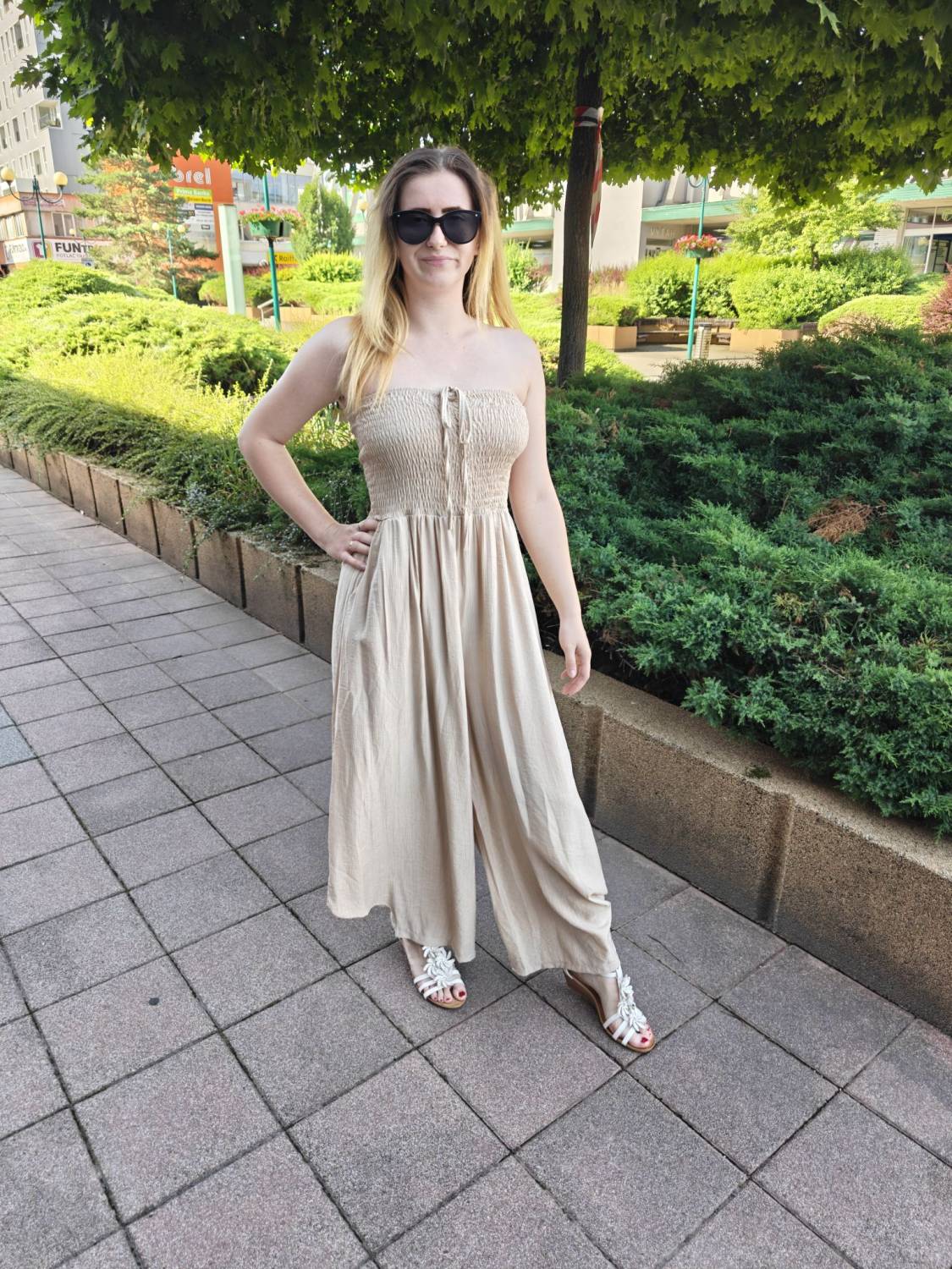 Dlhý overal s nariasením na prsiach.
