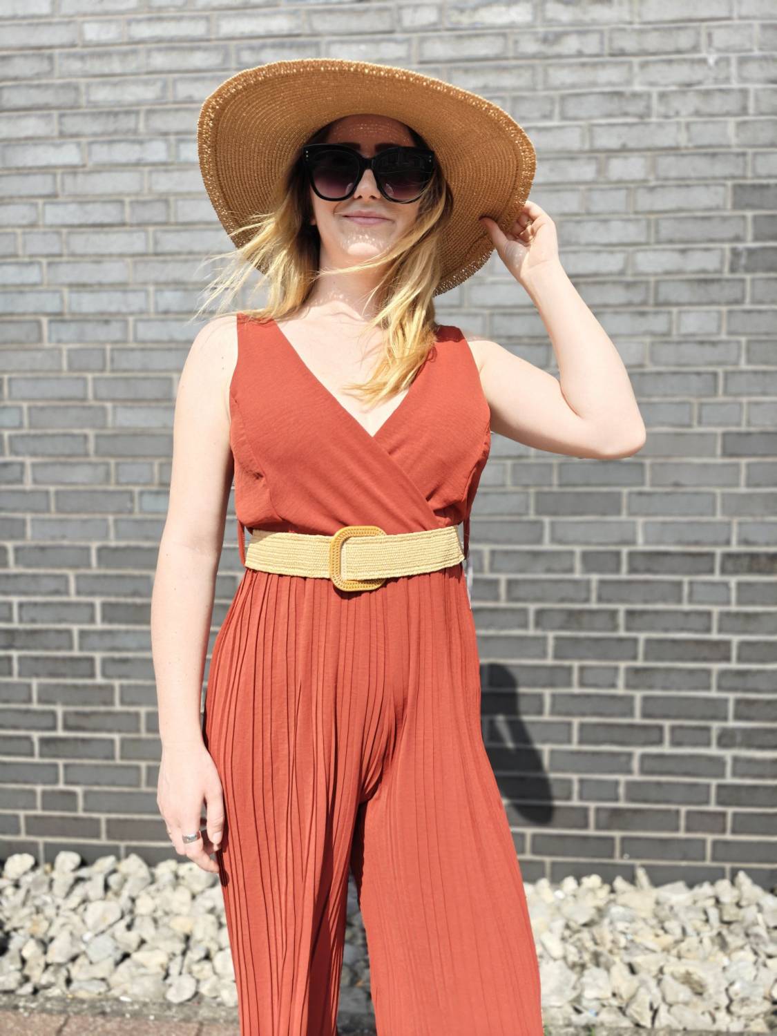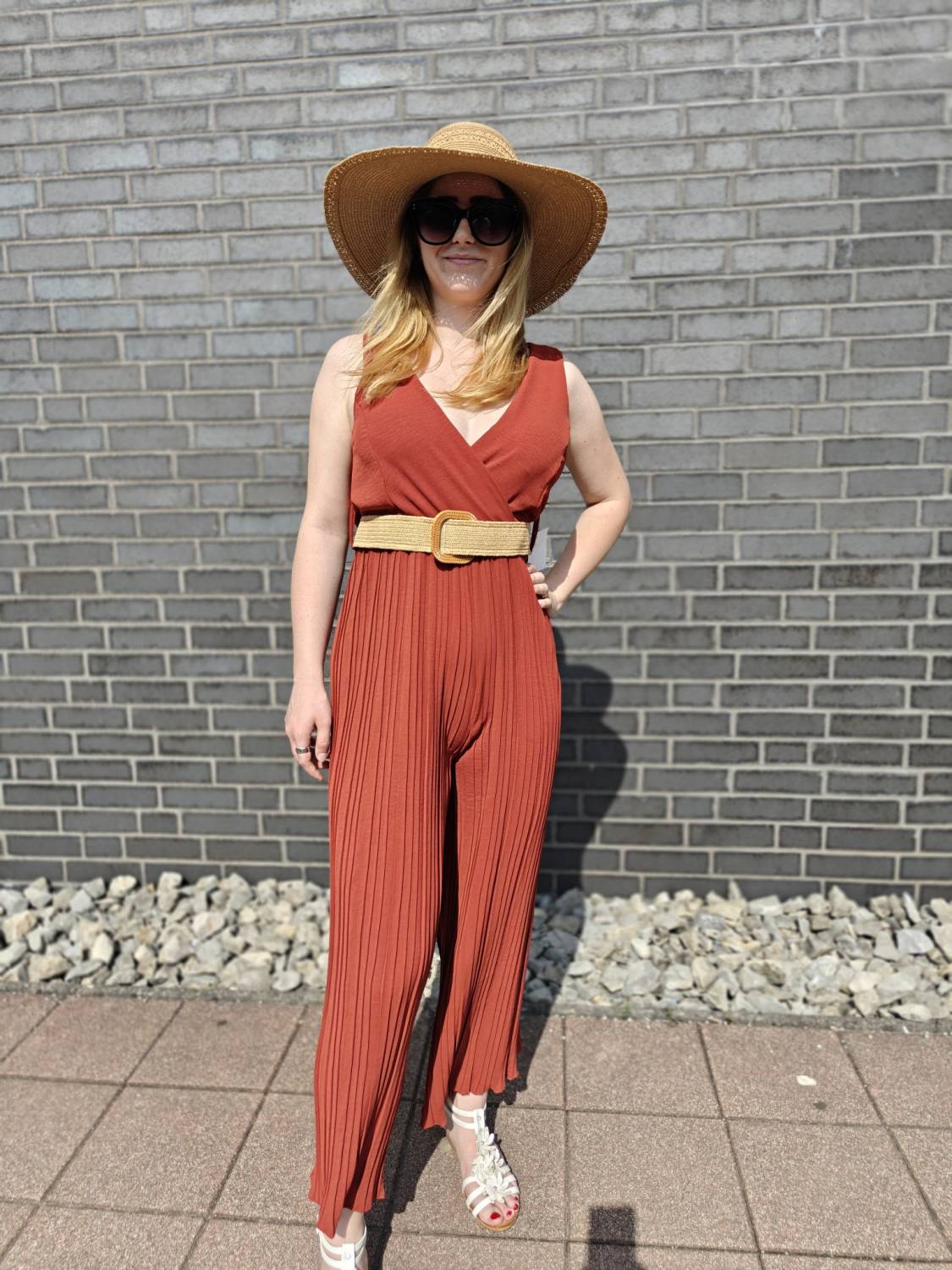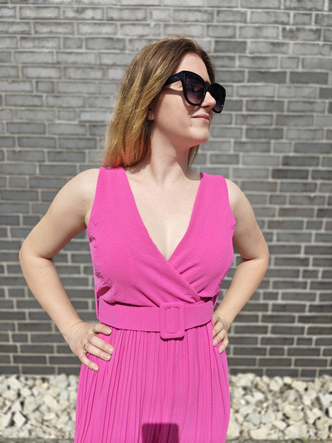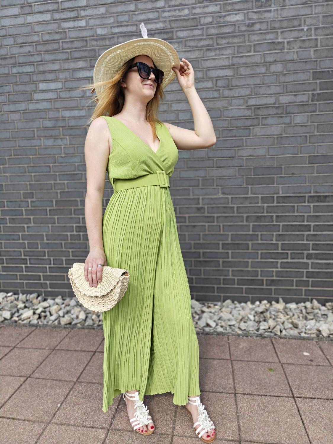 Dlhý plisovaný overal s vypchávkami. Opasok je súčasťou overalu.