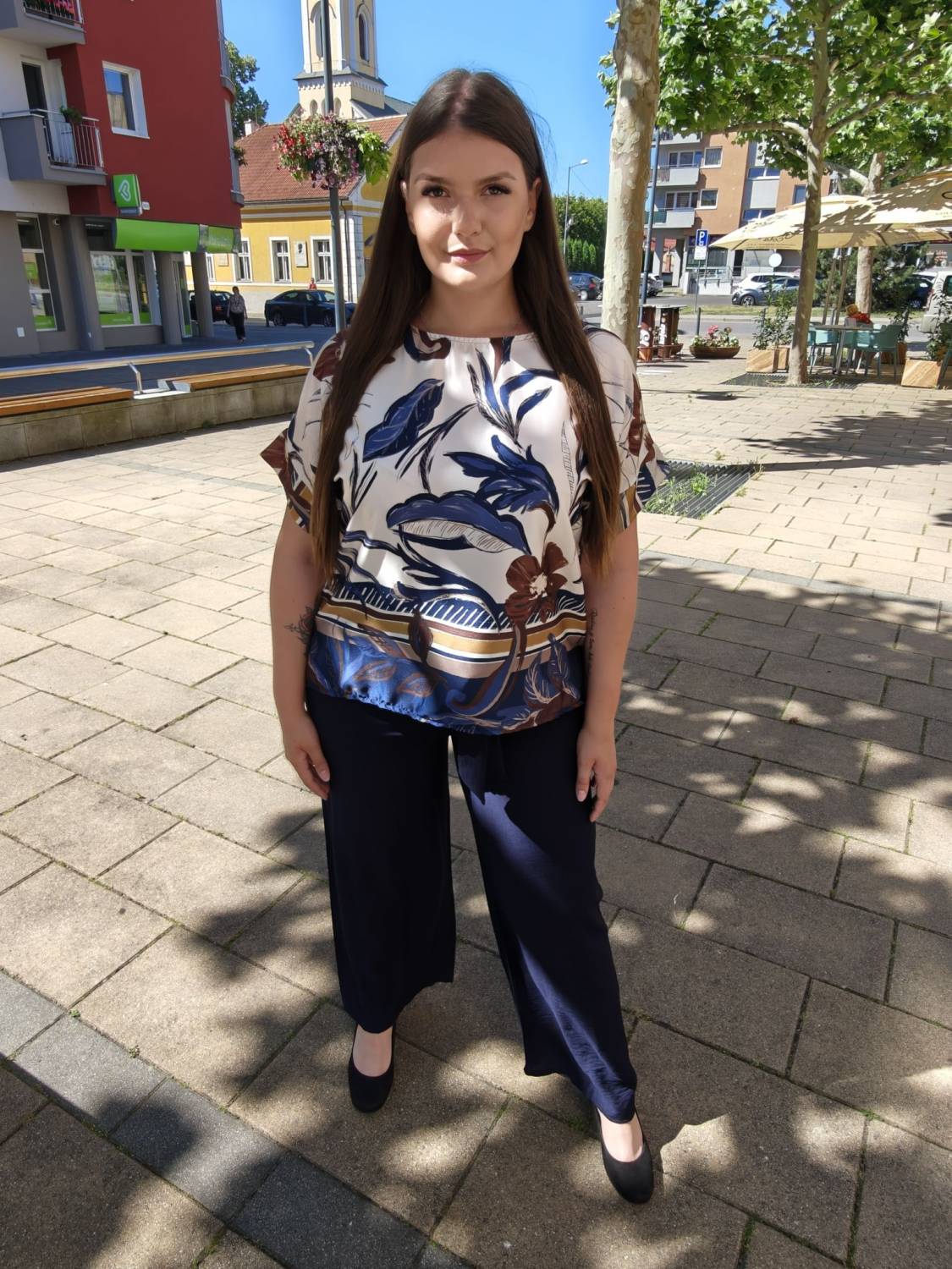 Elegantná súprava z príjemného materiálu. Tričko je oversizového strihu. Nohavice sú širšieho strihu a v páse do gumičky.