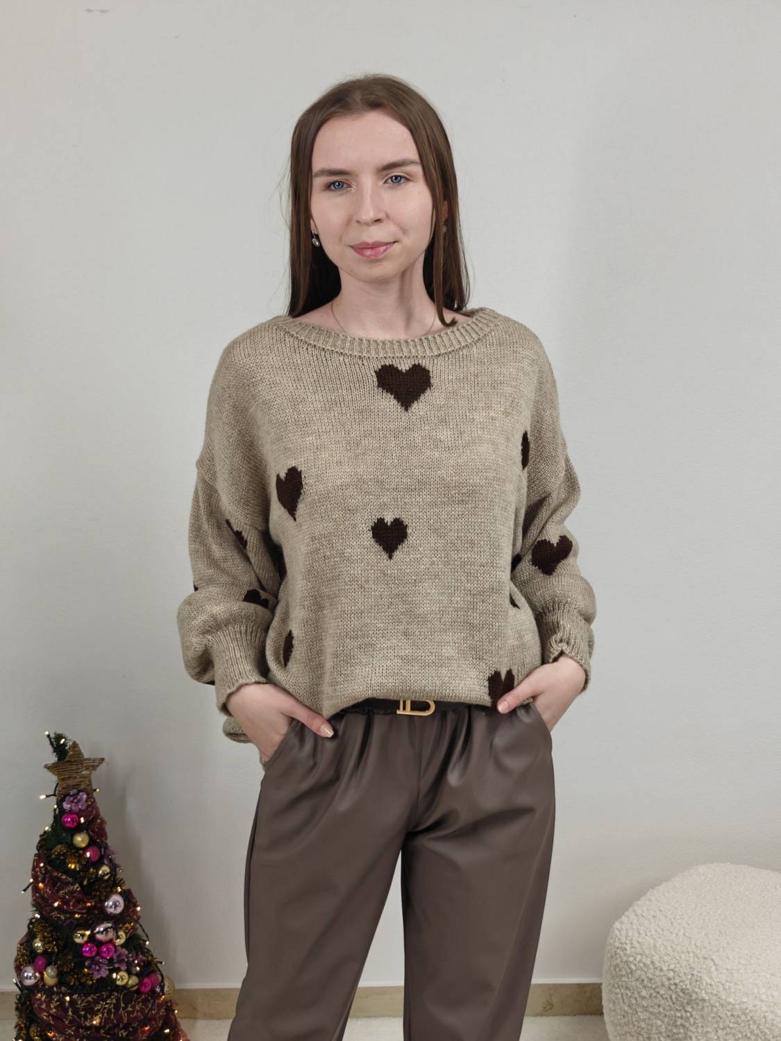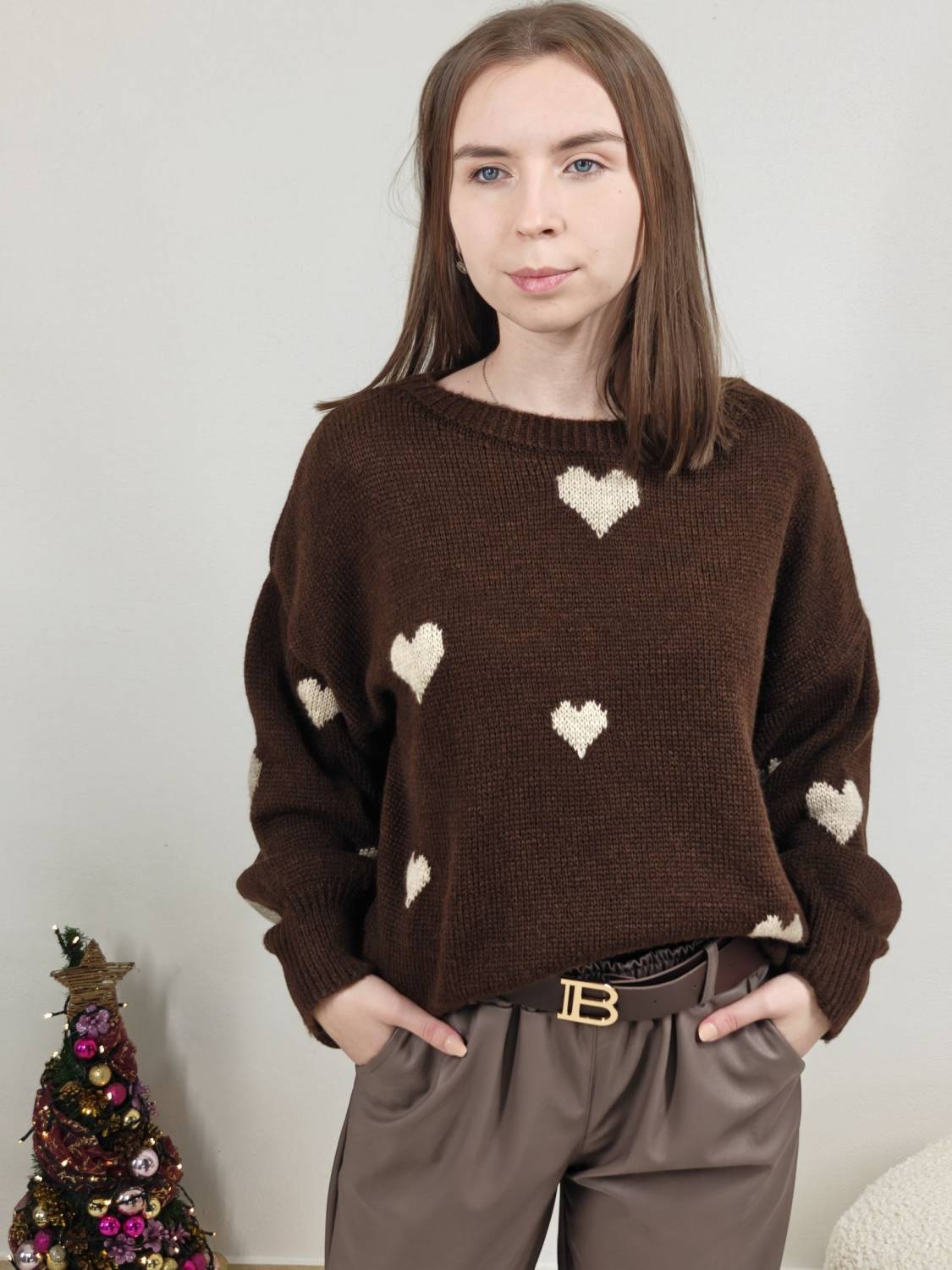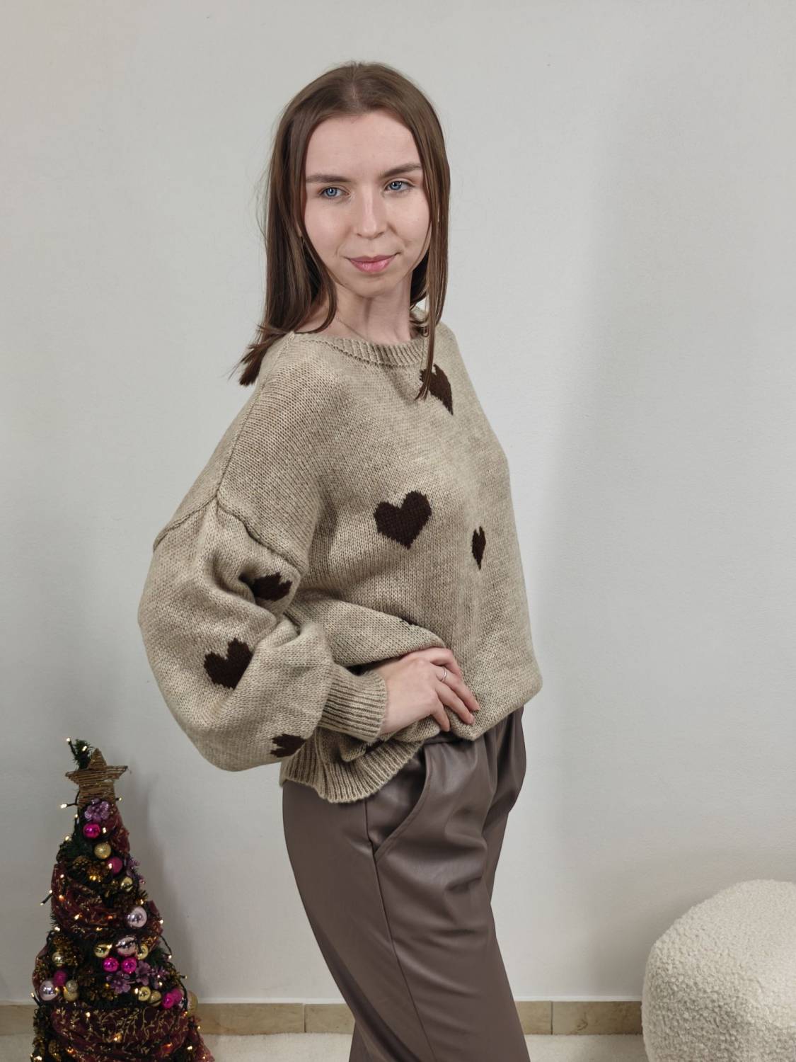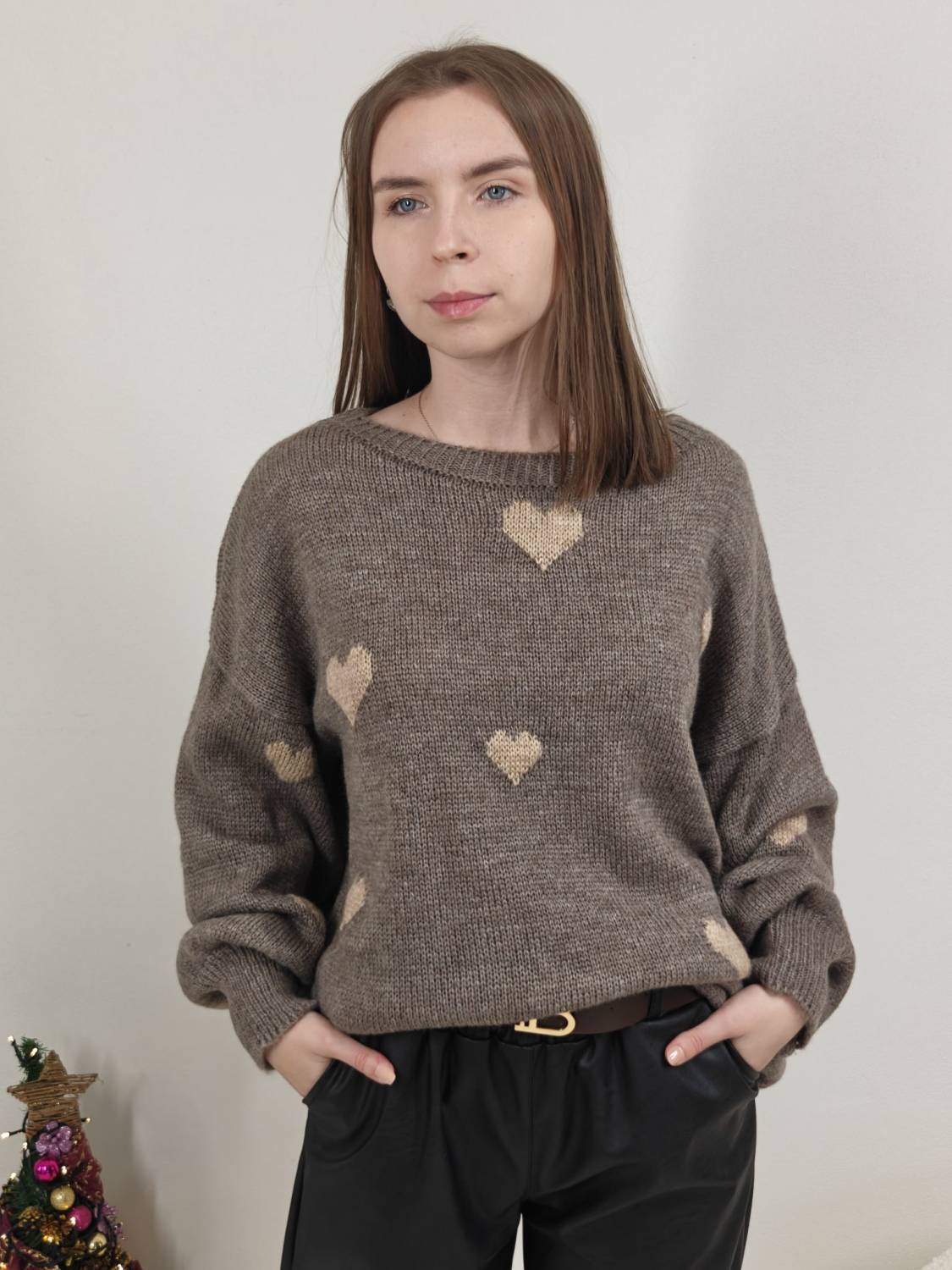 Pletený oversize pulóver so srdiečkovým vzorom z jemného, mäkkého materiálu.