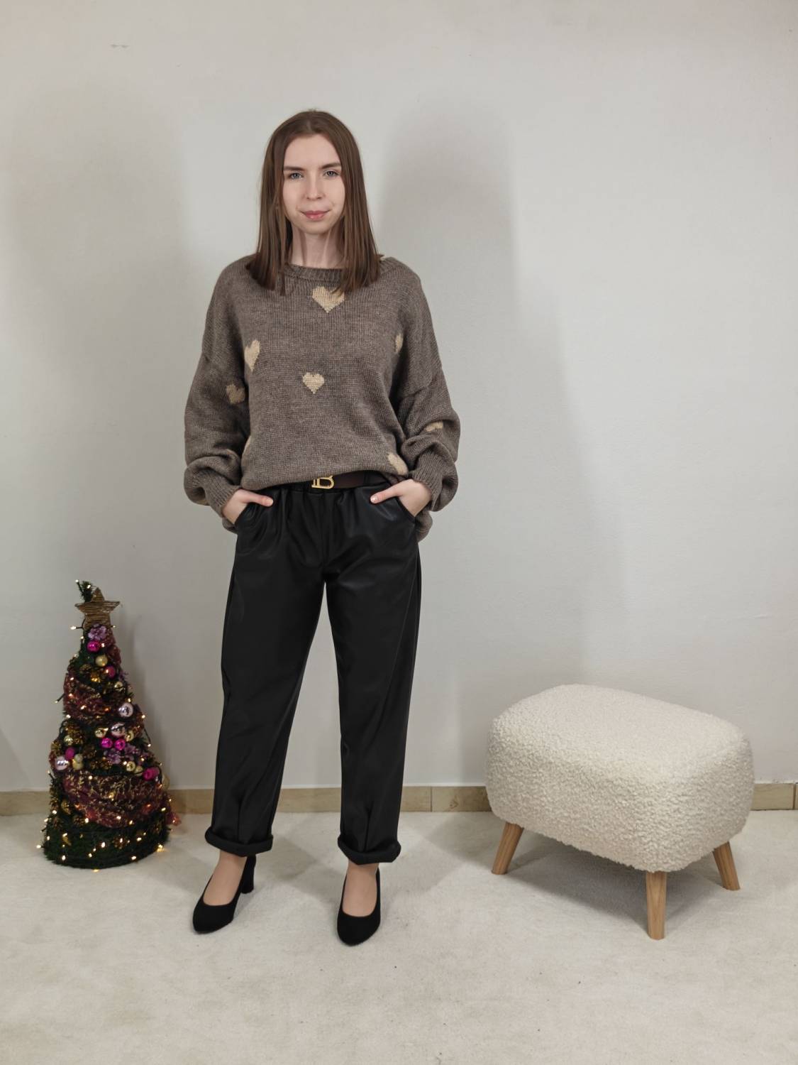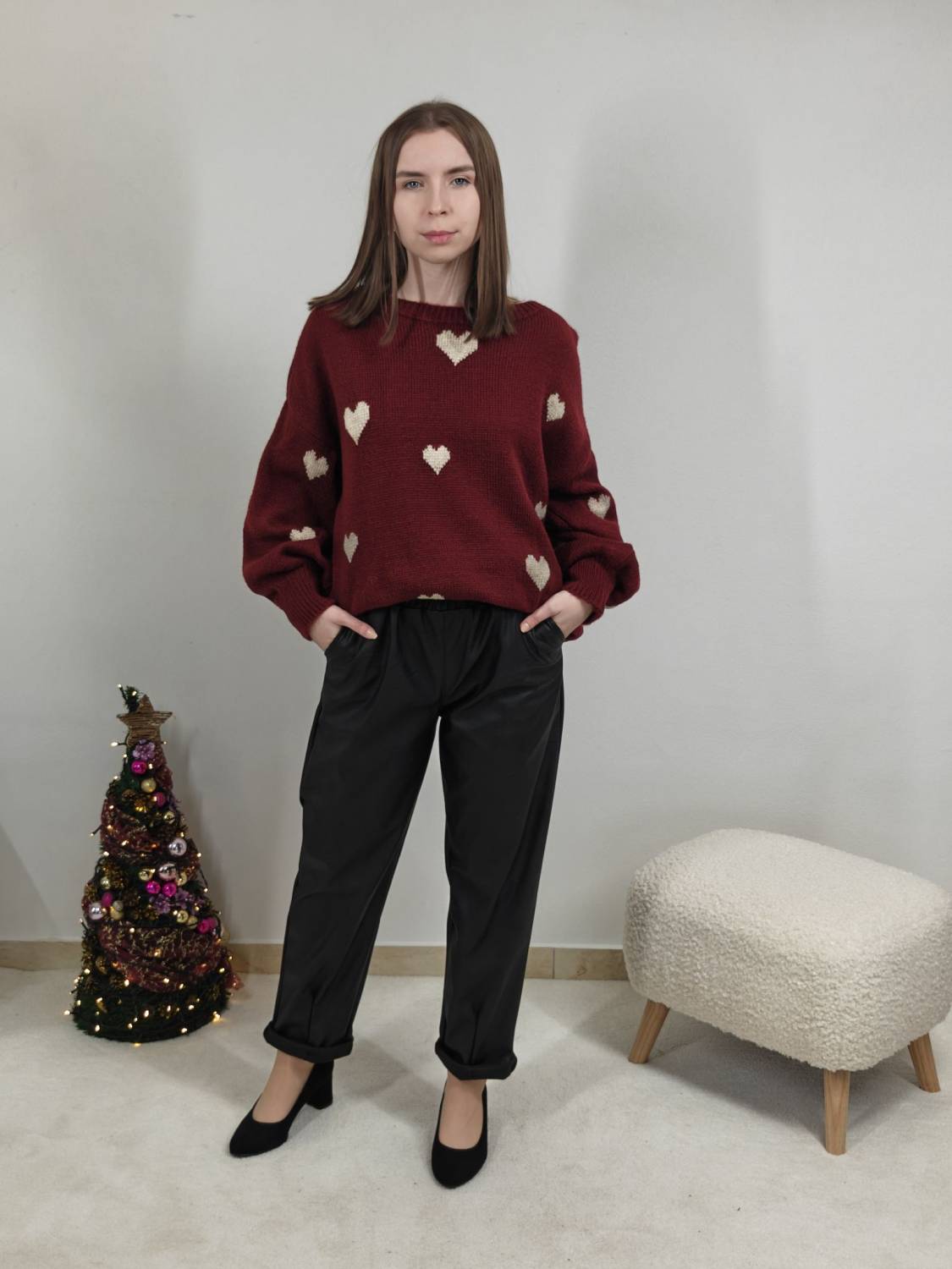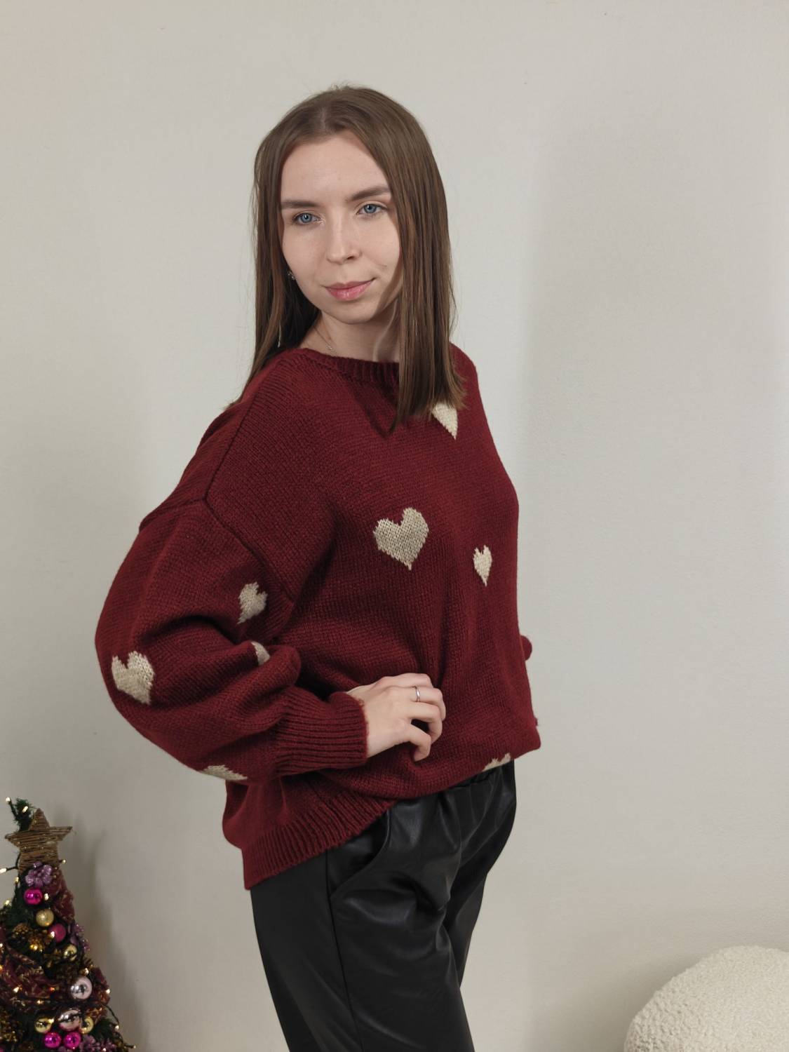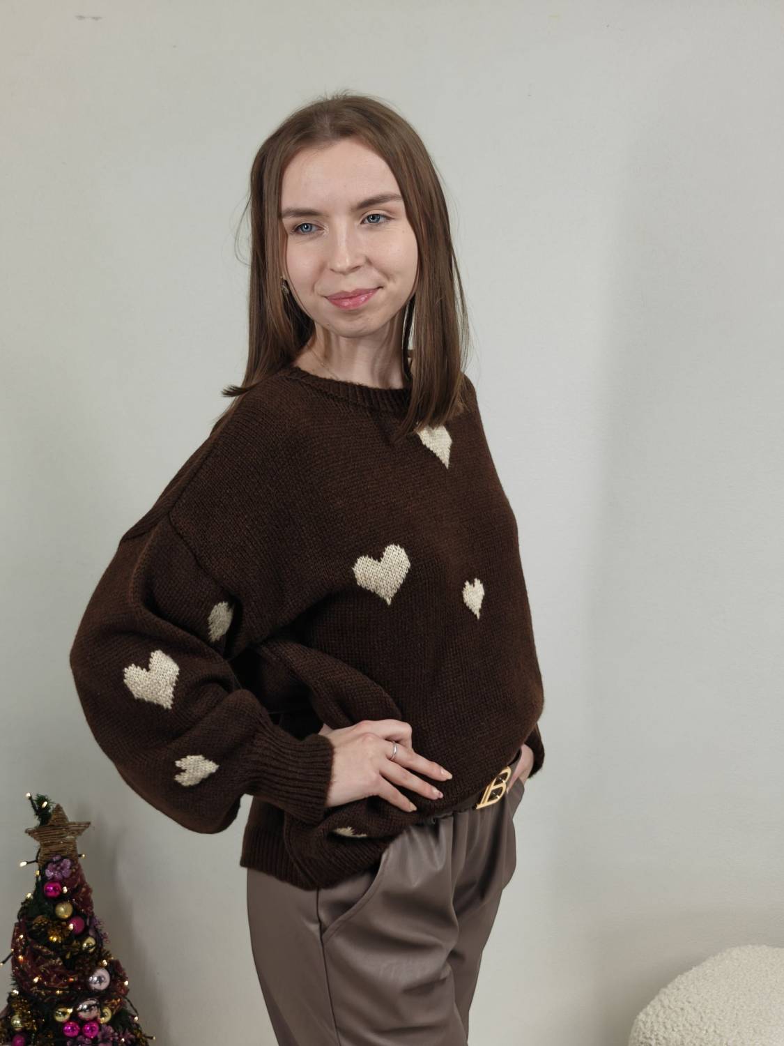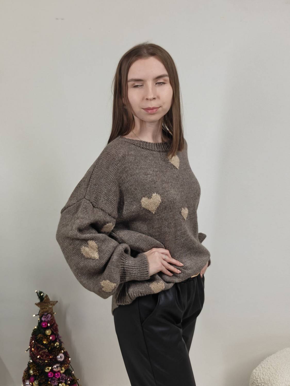 Pletený oversize pulóver so srdiečkovým vzorom z jemného, mäkkého materiálu.