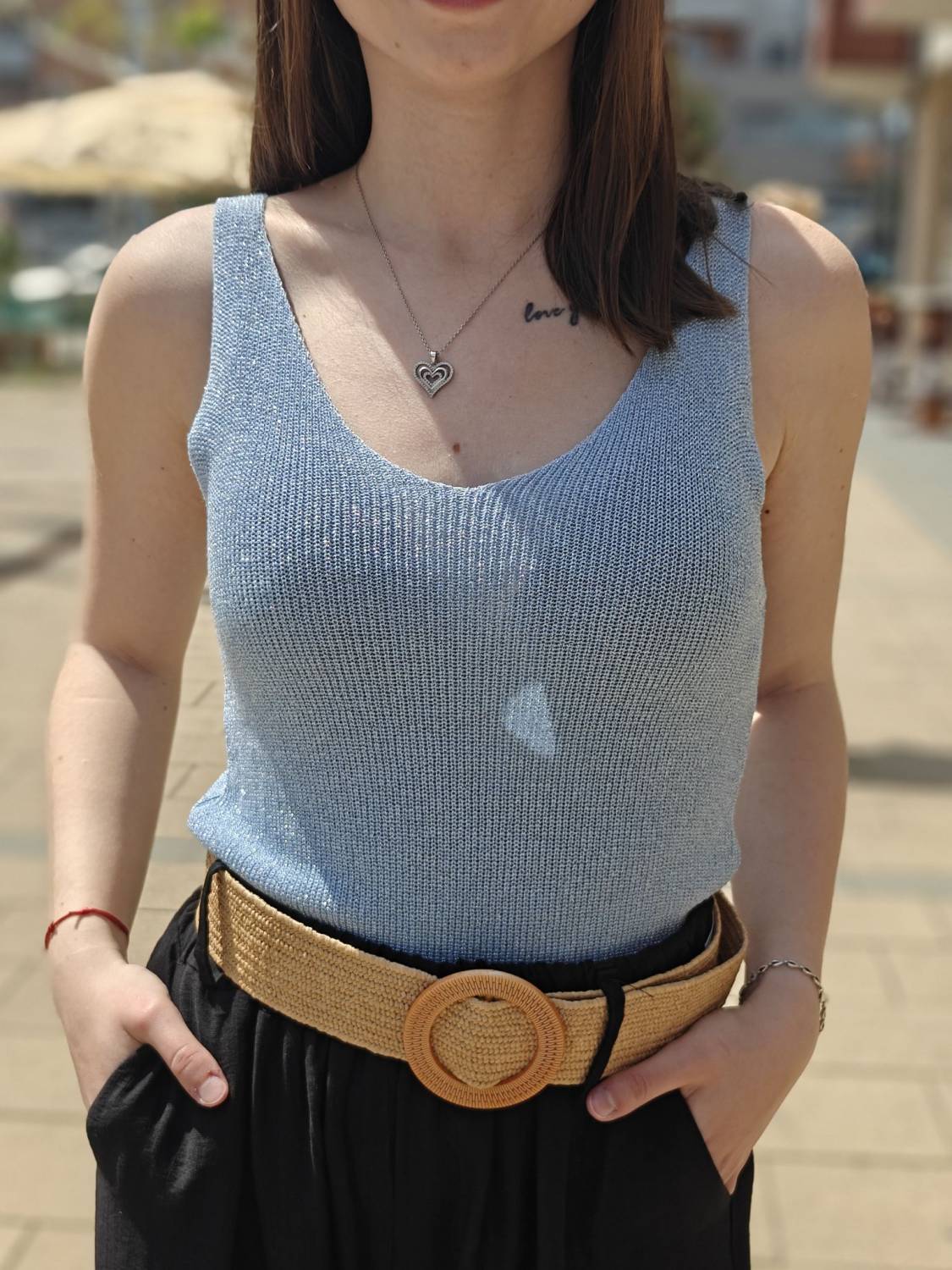 Tielko s lurexom, príjemné na dotyk. Krásny kúsok na leto.